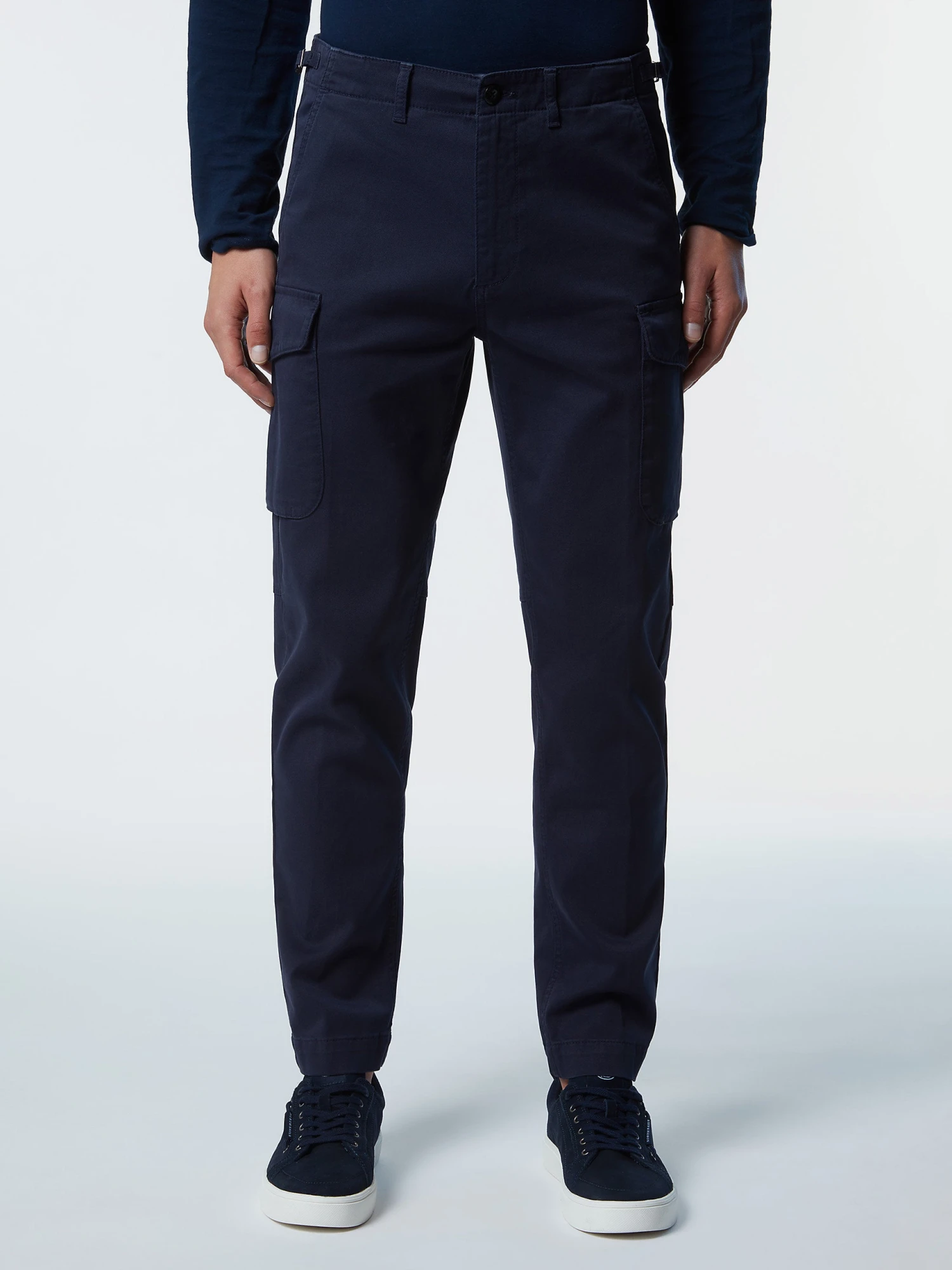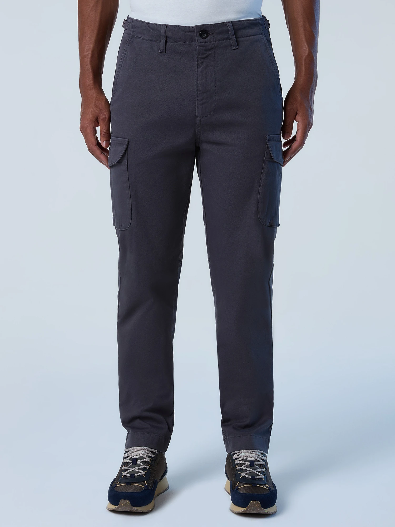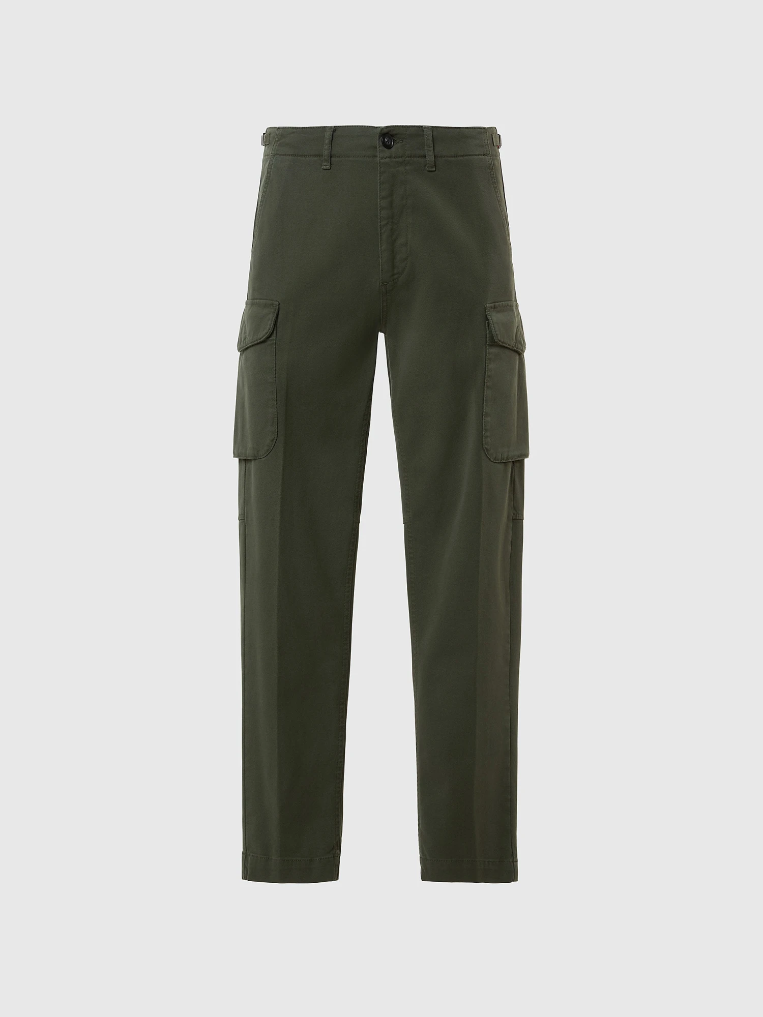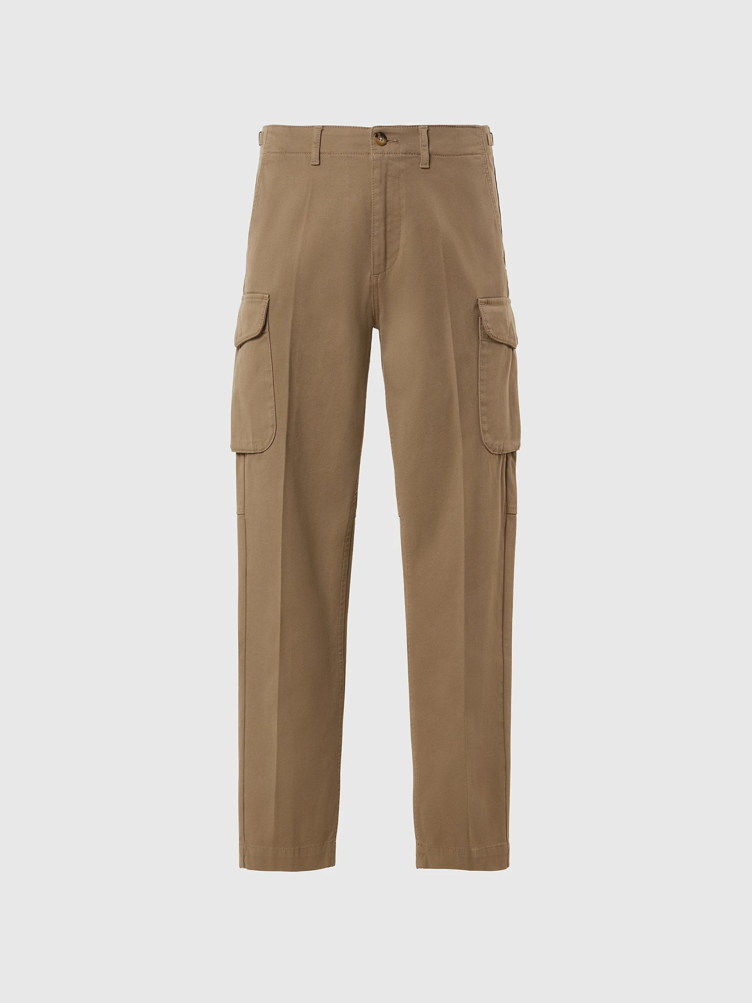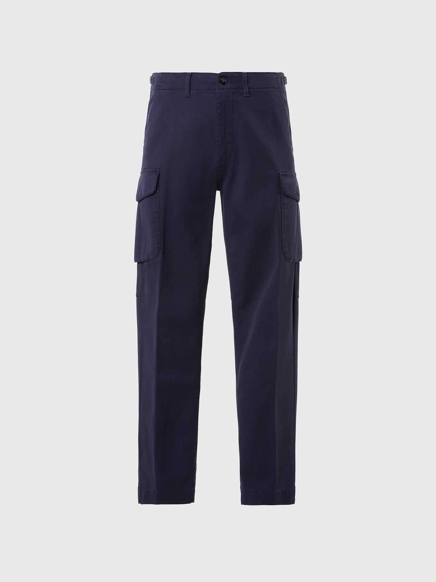 Men’s cargo pants made from stretch organic cotton gabardine. Straight-leg silhouette with belt loops and patch pockets. Embellished with an embroidered logo detail.