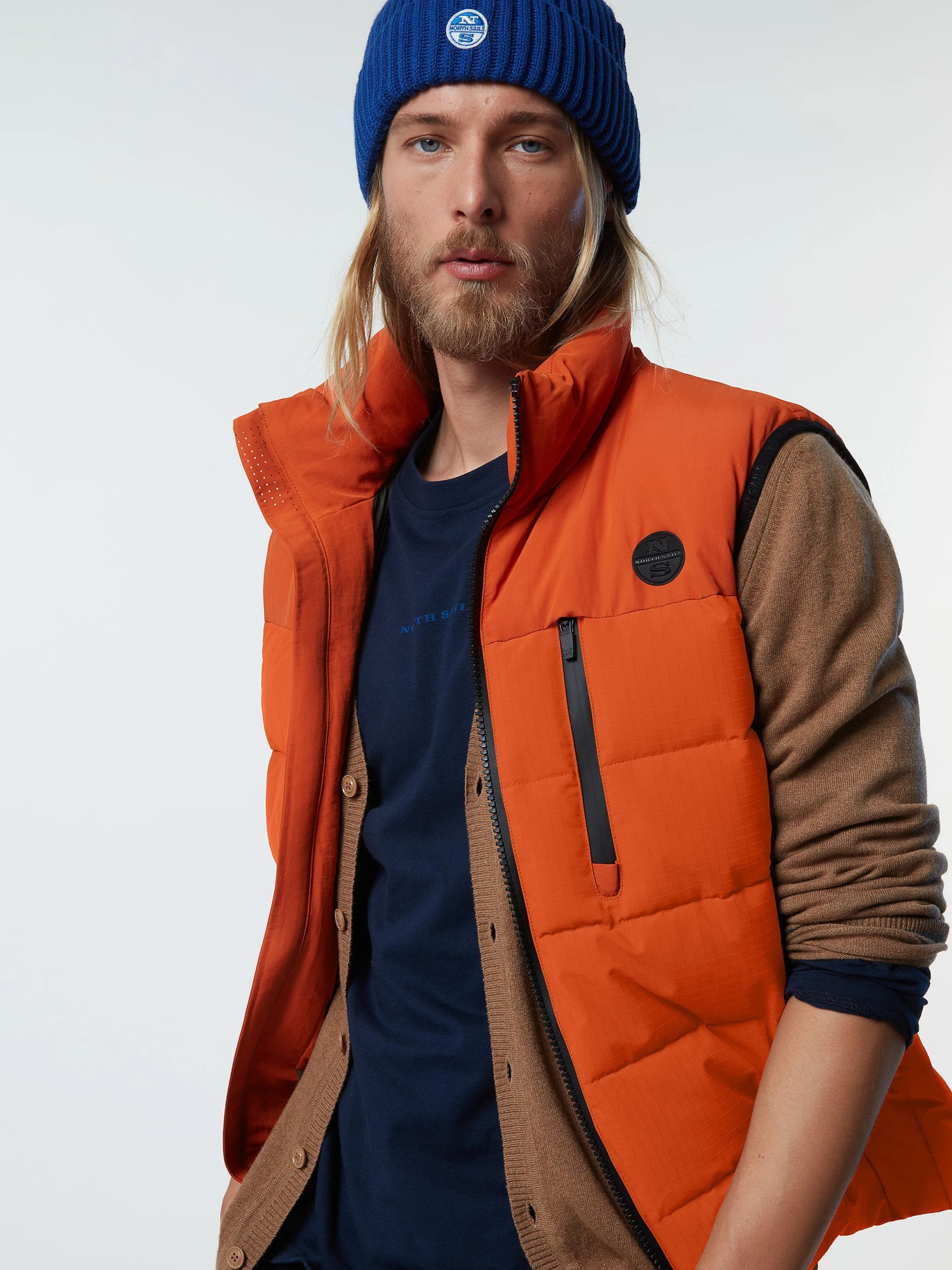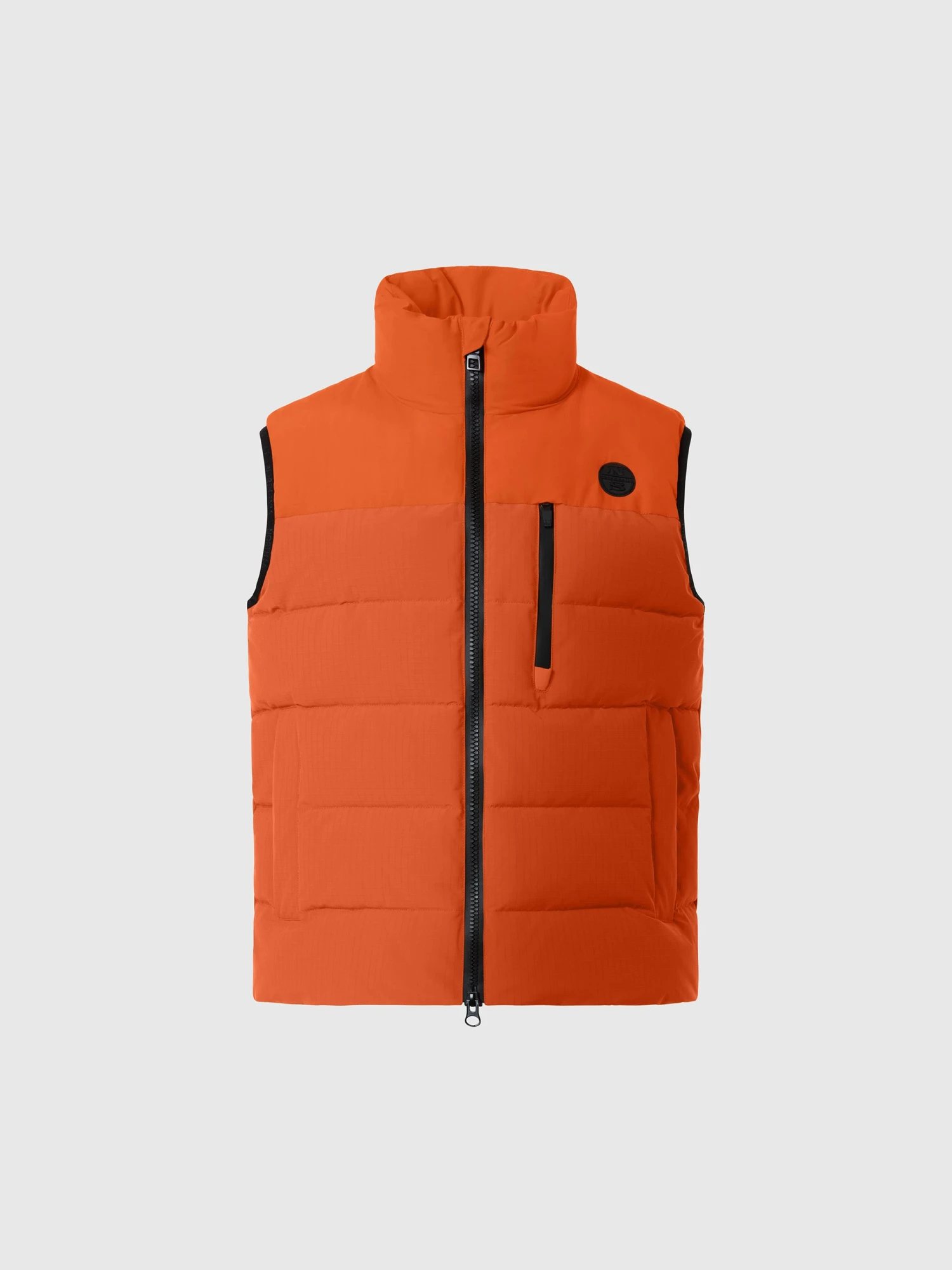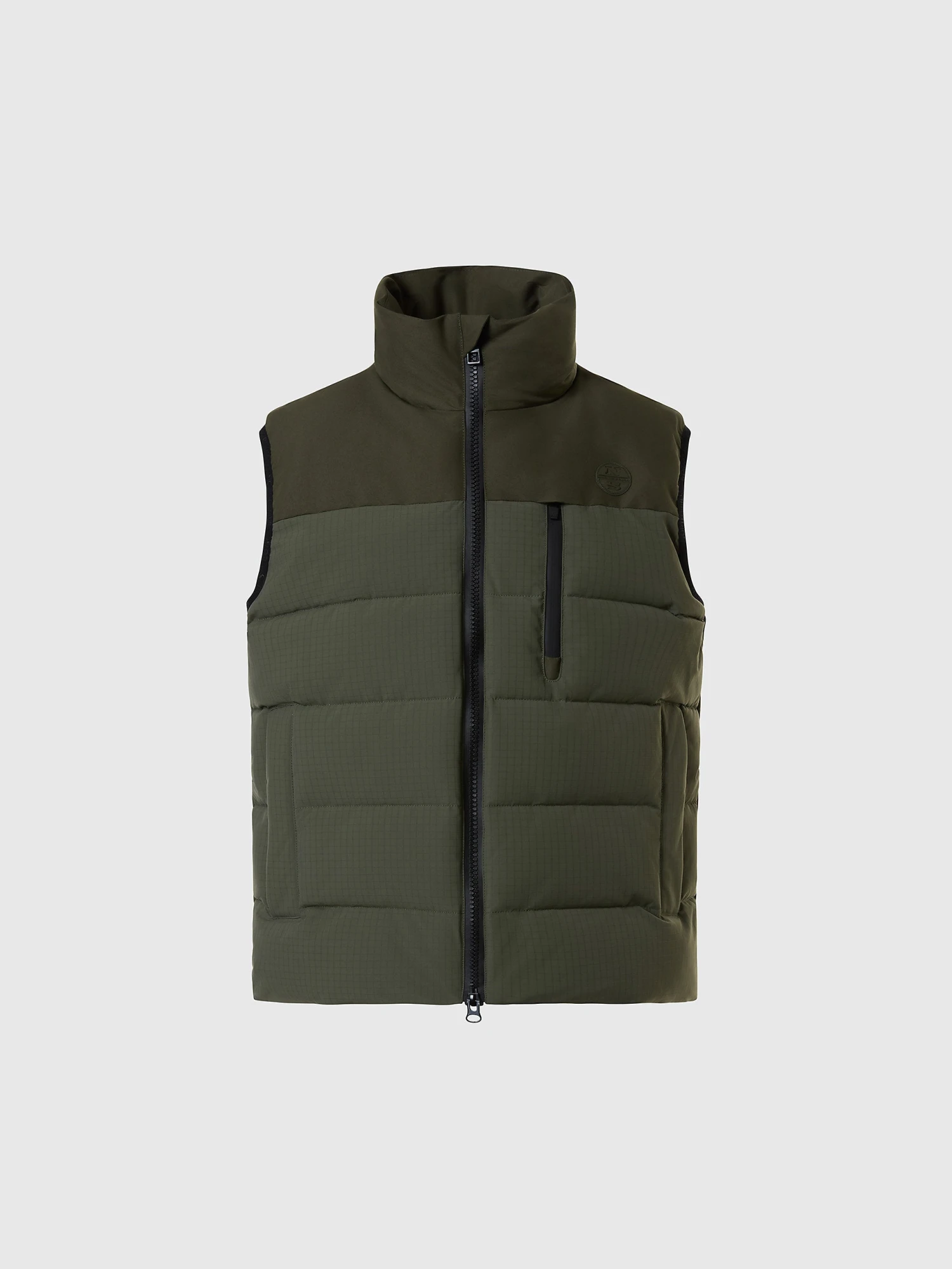 Men’s vest made from recycled ripstop and polyester with a breathable and waterproof double-layer membrane. Padded with faux down and elevated with a host of handy pockets.