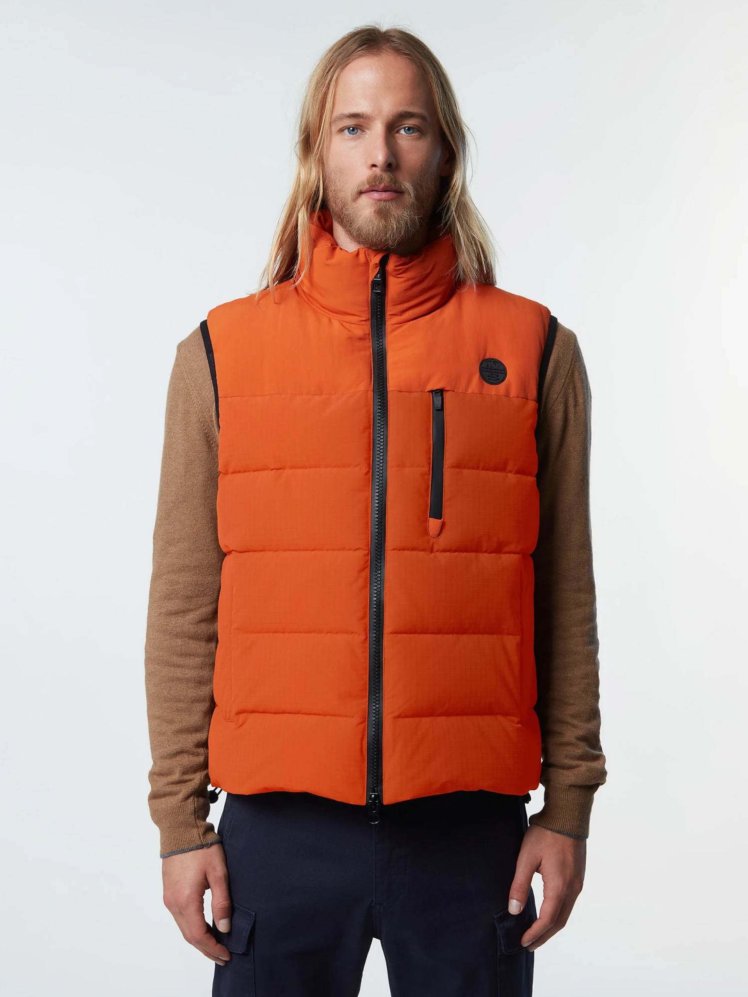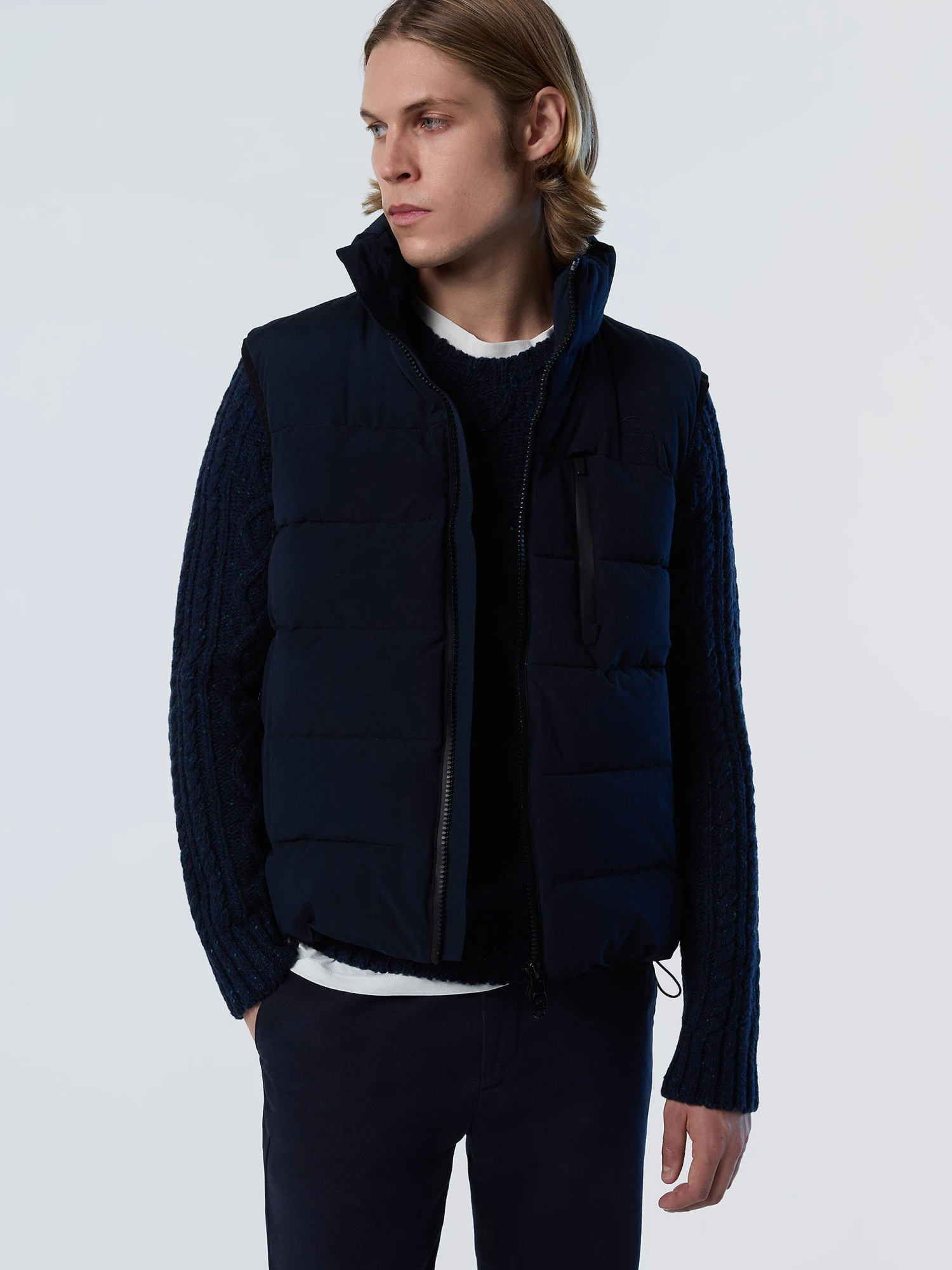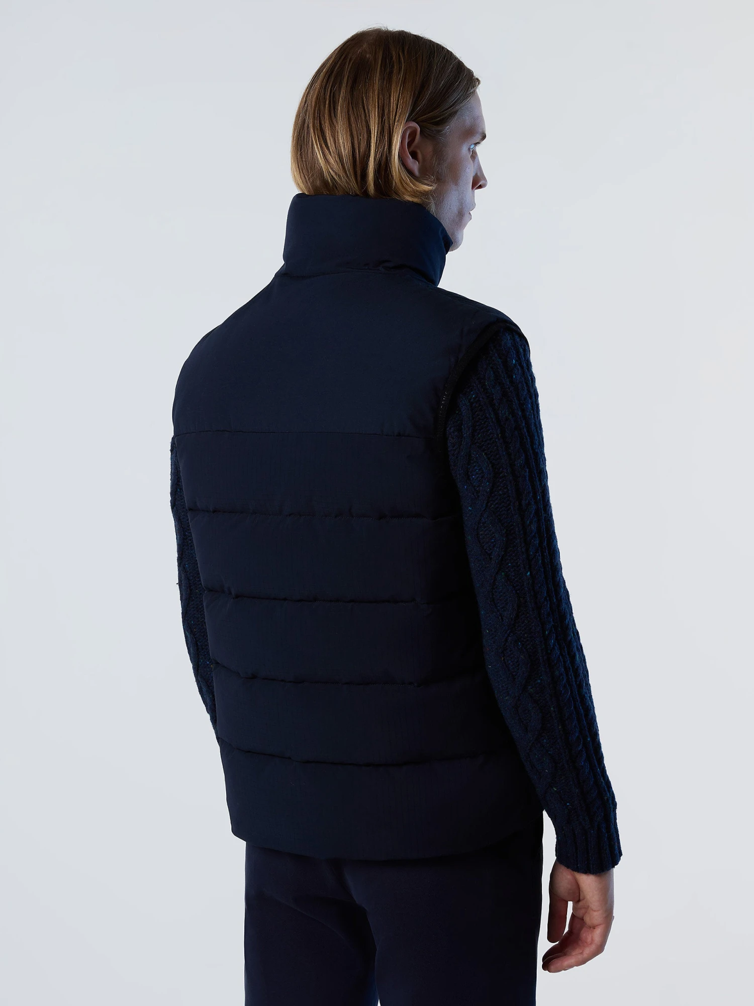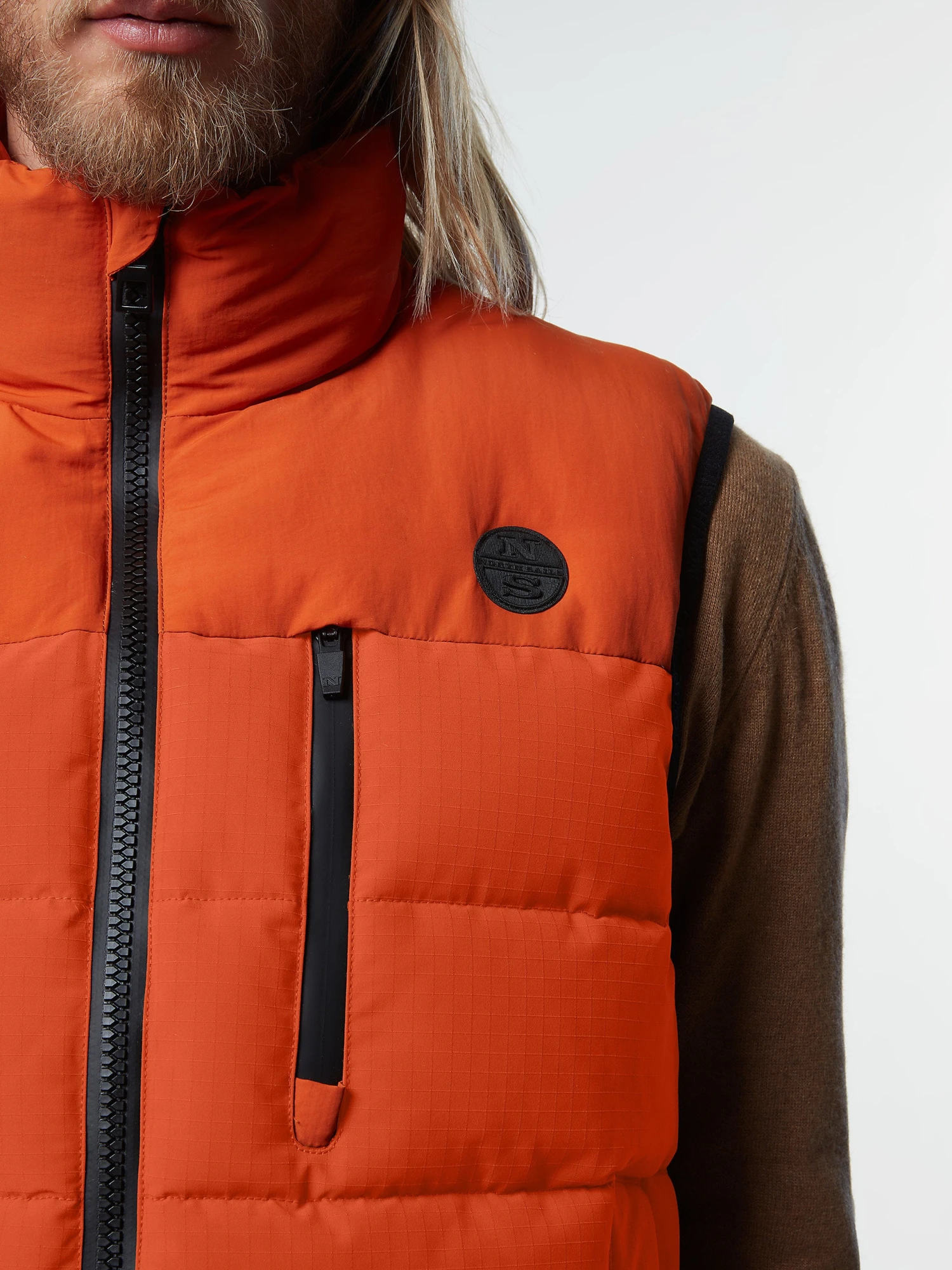 Men’s vest made from recycled ripstop and polyester with a breathable and waterproof double-layer membrane. Padded with faux down and elevated with a host of handy pockets.