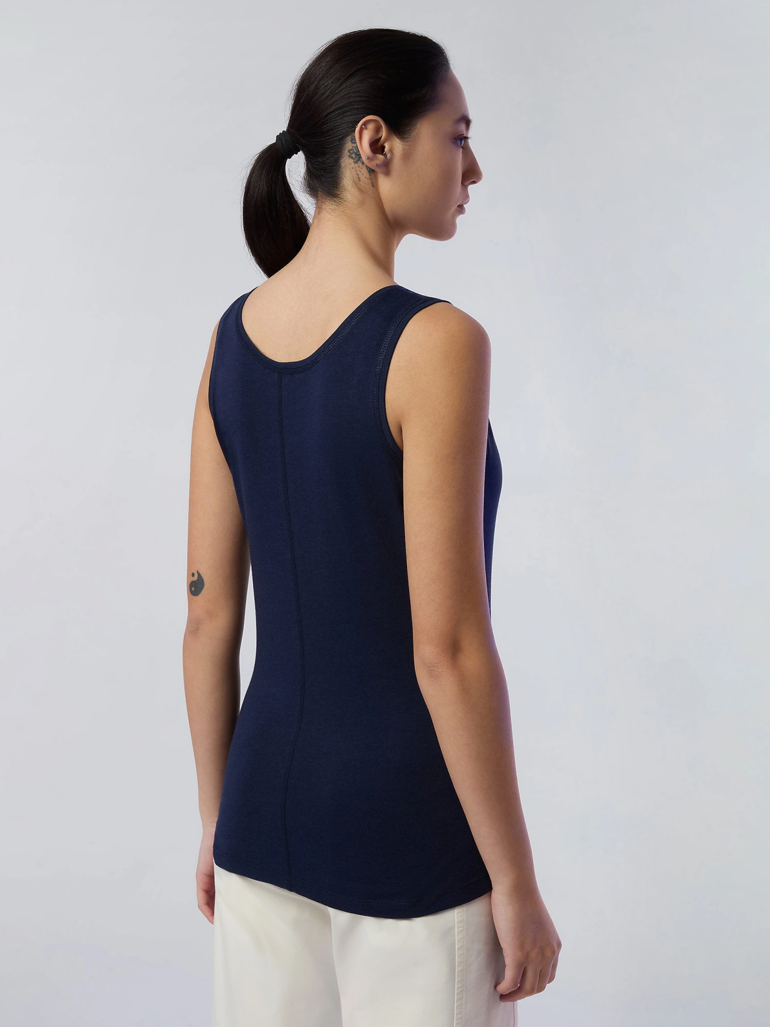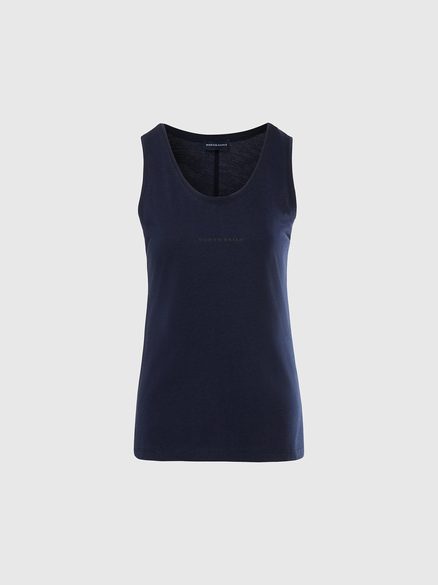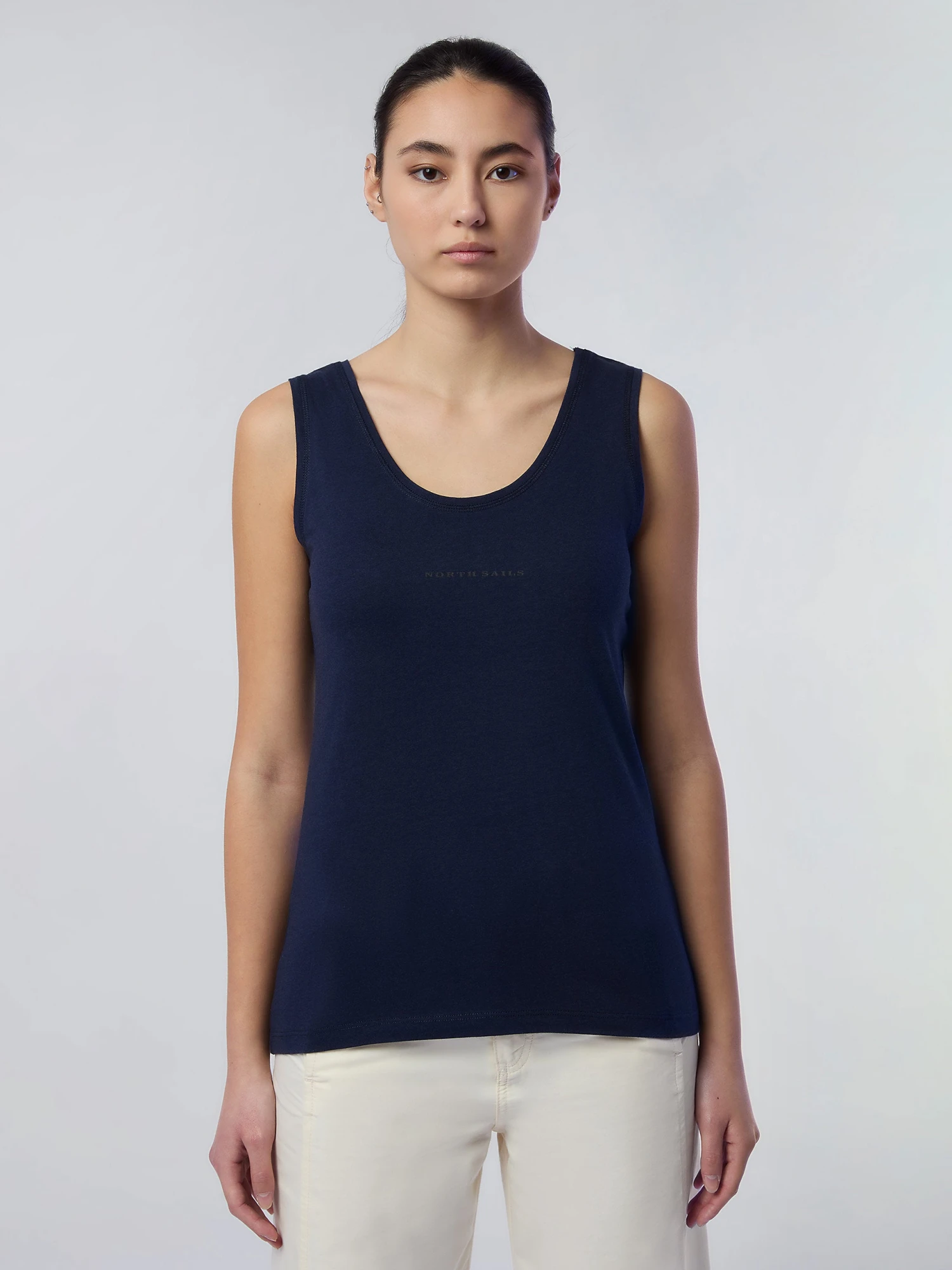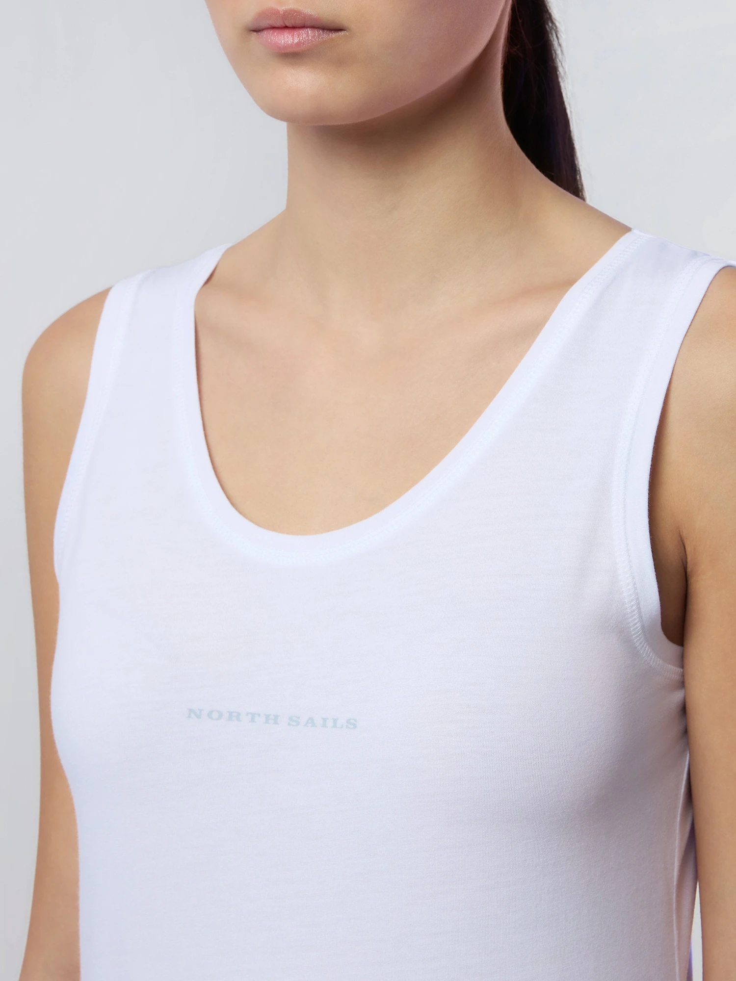 Women’s tank top made from organic cotton and bamboo jersey. Rounded lower back hem and North Sails logo print on the chest.