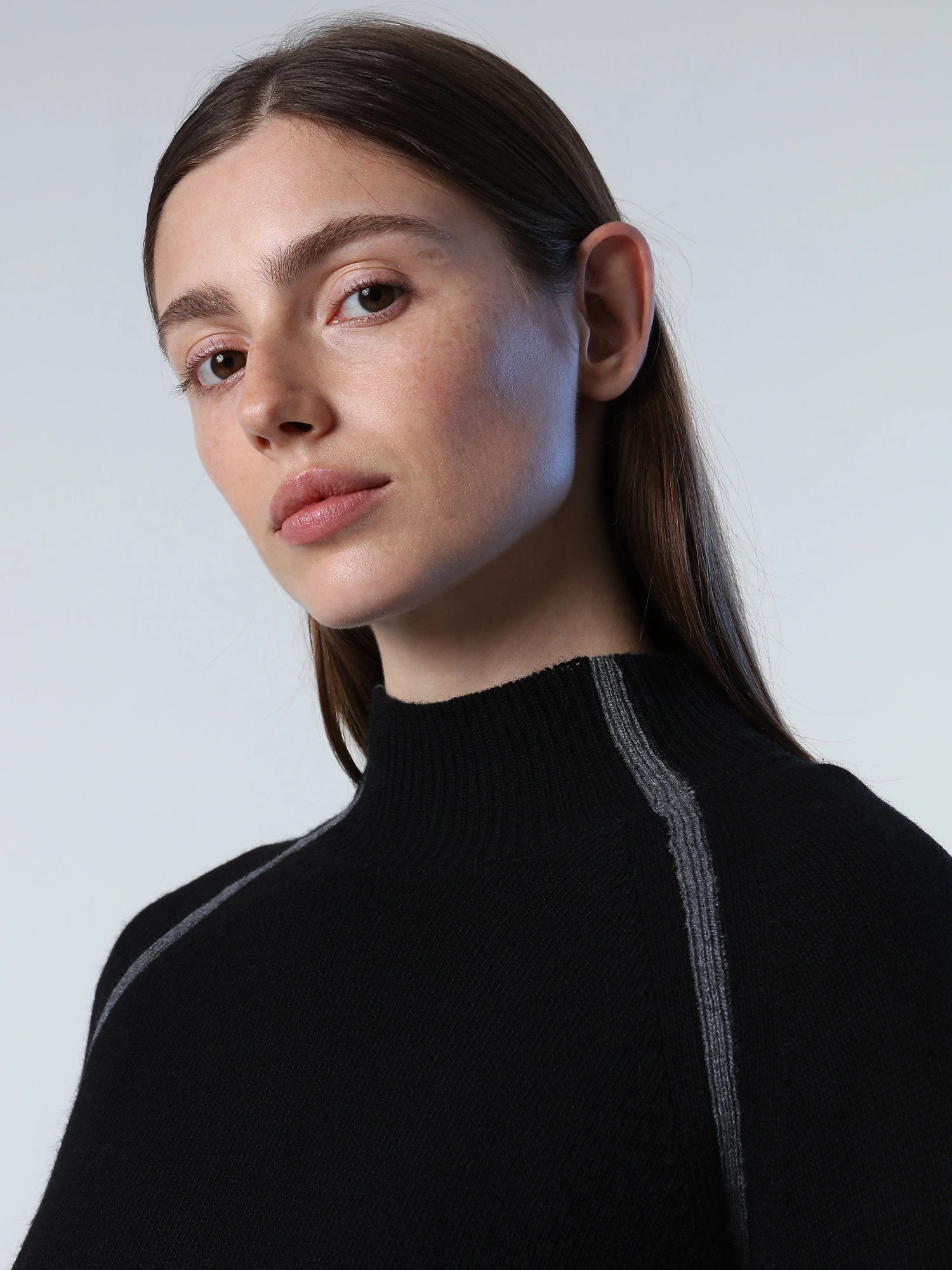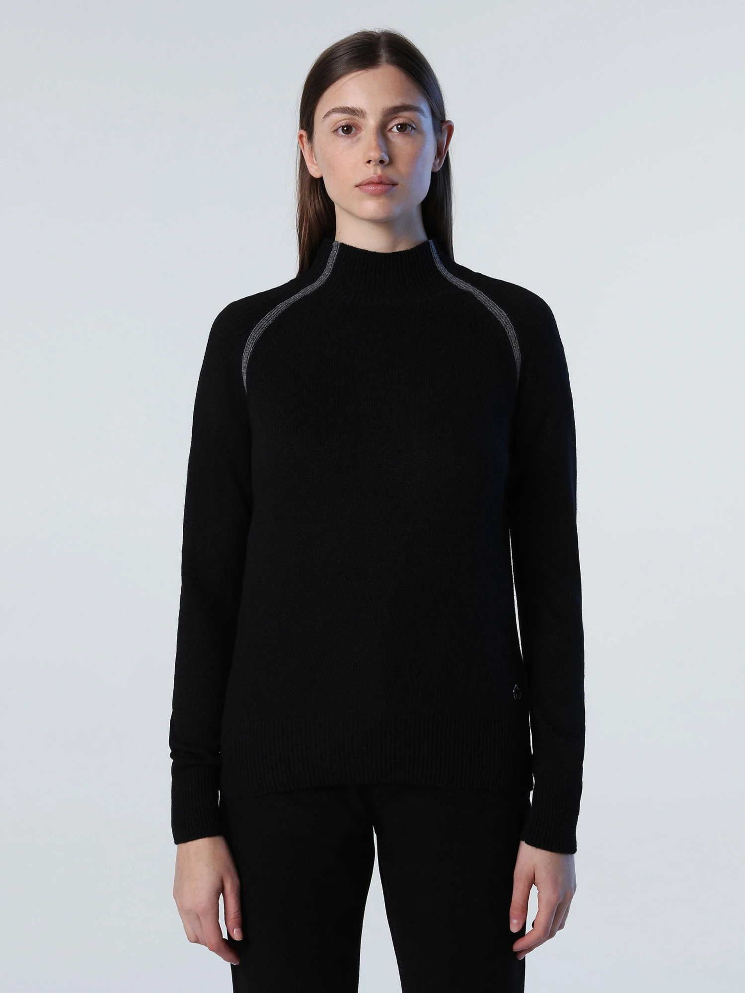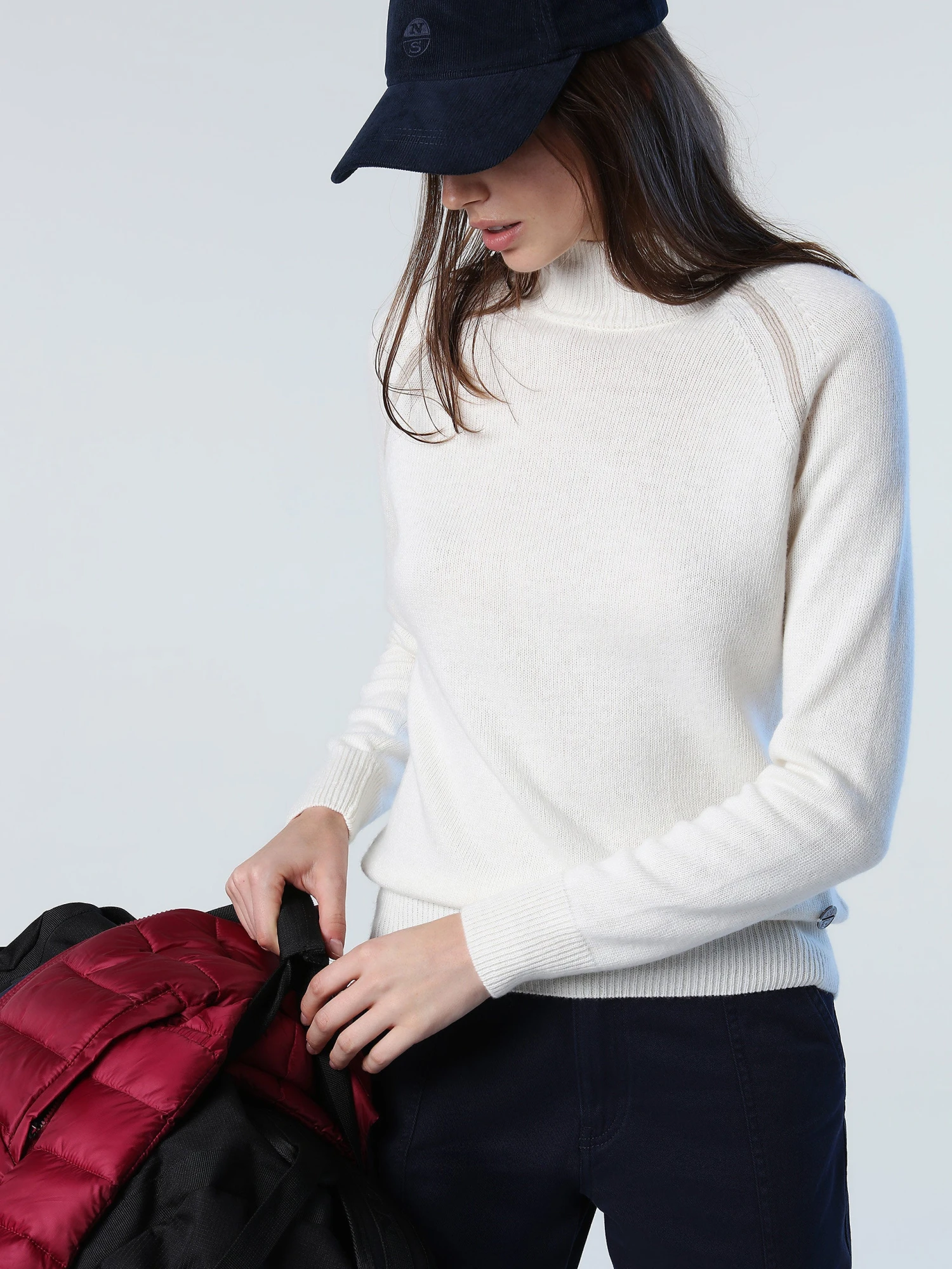 Jumper knitted from a recycled cashmere blend, featuring a high neck, long raglan sleeves with contrast intarsia detailing and ribbed trims. Metal North Sails logo on the hem.