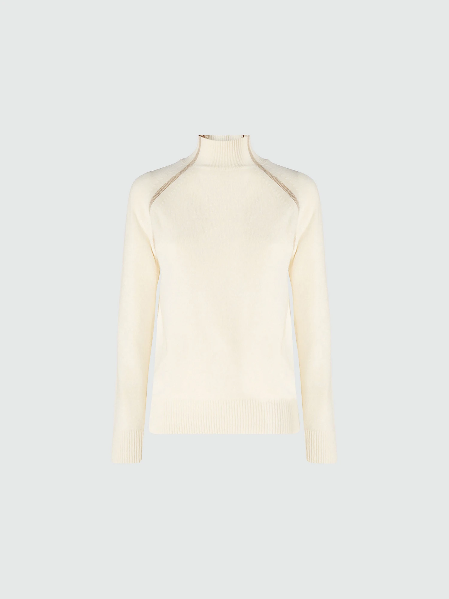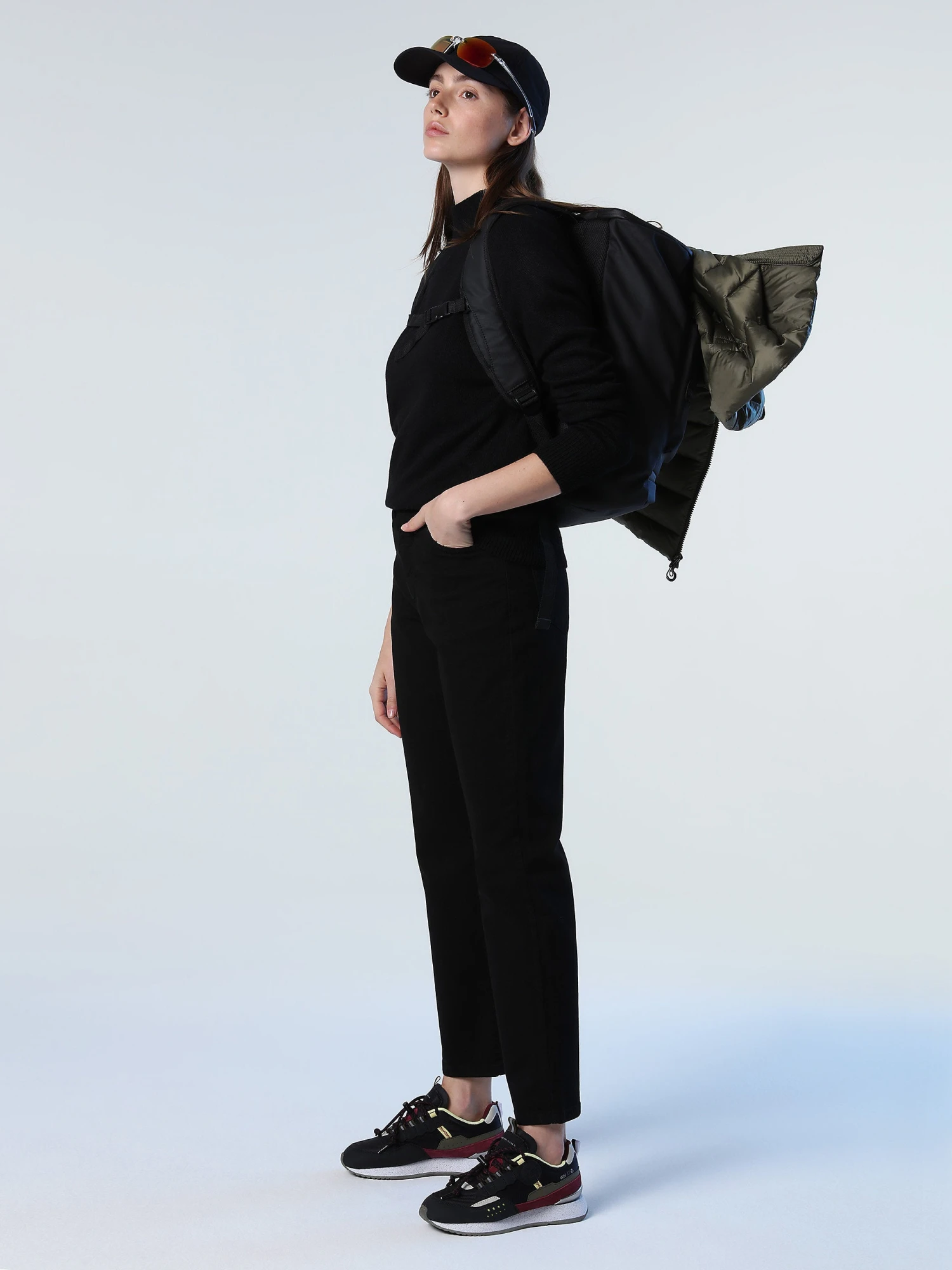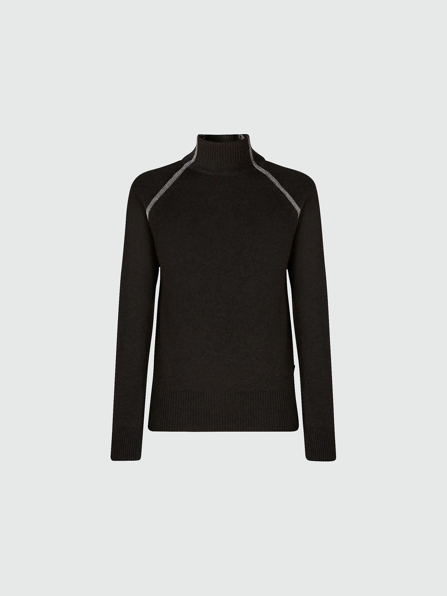 Jumper knitted from a recycled cashmere blend, featuring a high neck, long raglan sleeves with contrast intarsia detailing and ribbed trims. Metal North Sails logo on the hem.