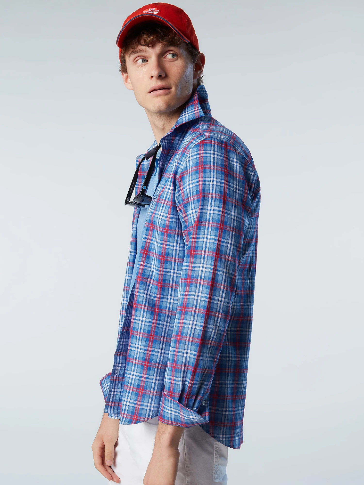 Men’s checked shirt made from a cotton and linen blend. Spread collar and rounded hem, embellished with an embroidered logo on the chest.