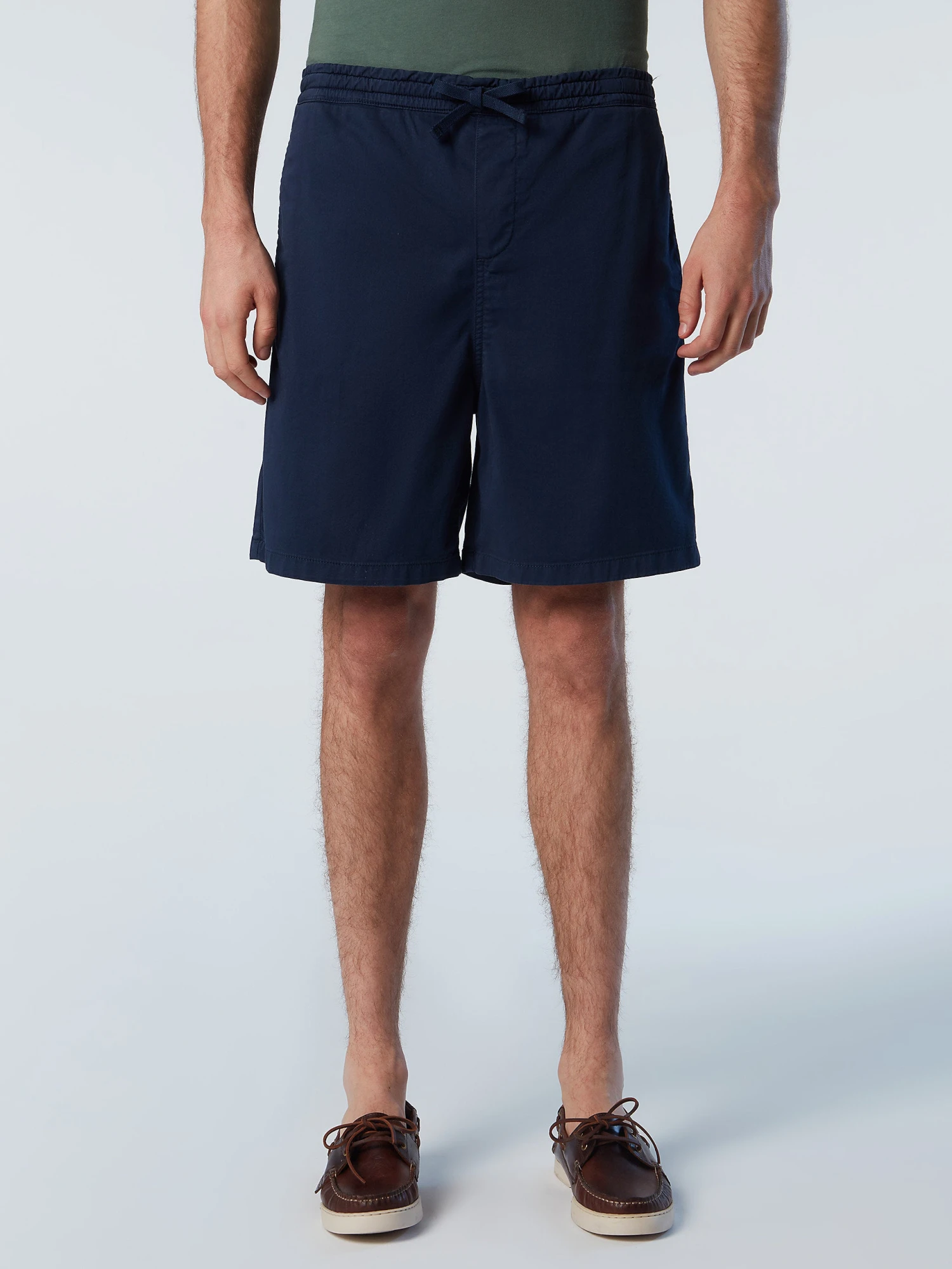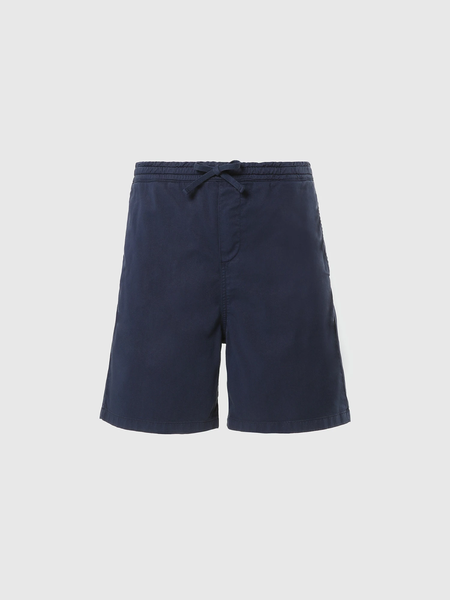 Chino shorts made from stretch organic cotton gabardine. Styled with an elasticated drawstring waist and a back zip pocket.