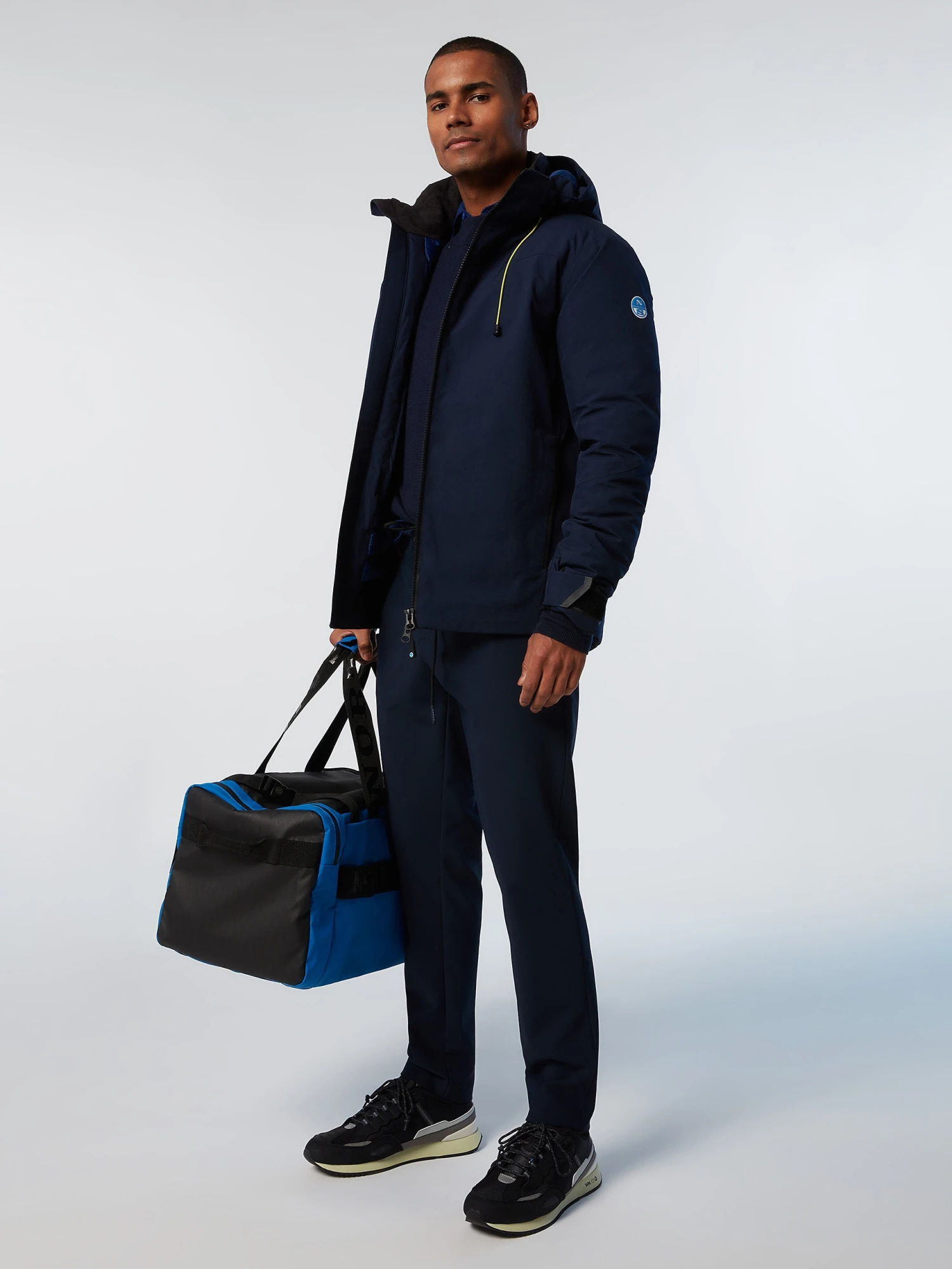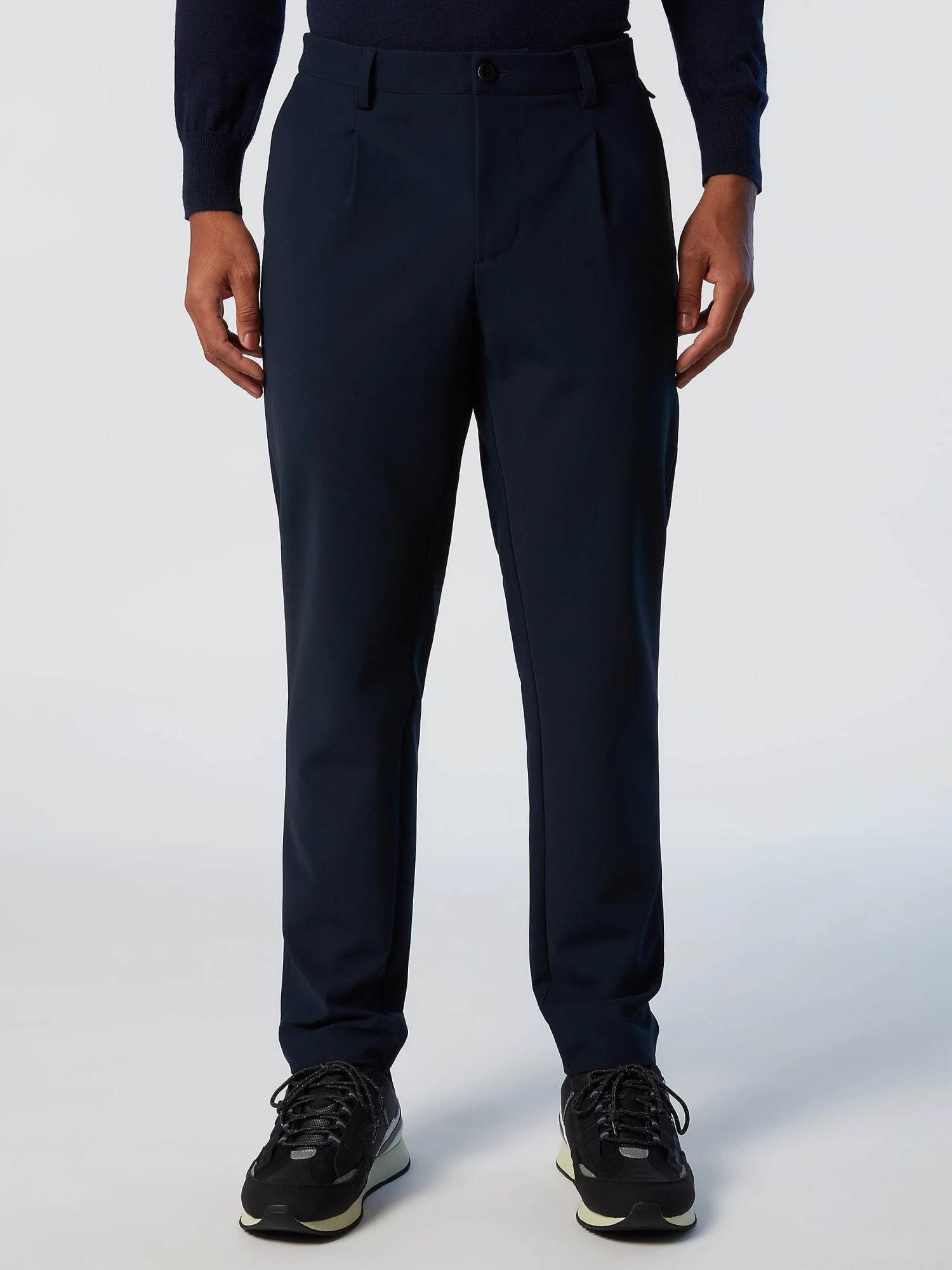 Men’s stretchy comfort tech chinos. Front pleats, slant pockets and back flap pockets. Embellished with a North Tech logo patch.