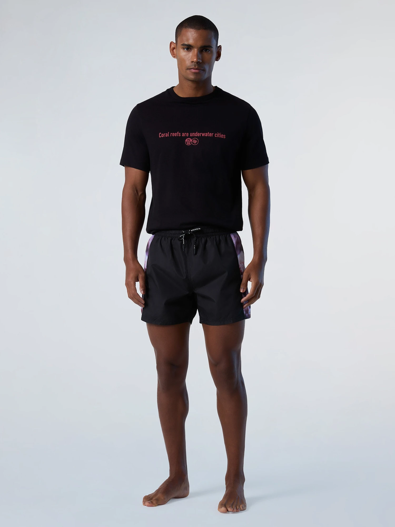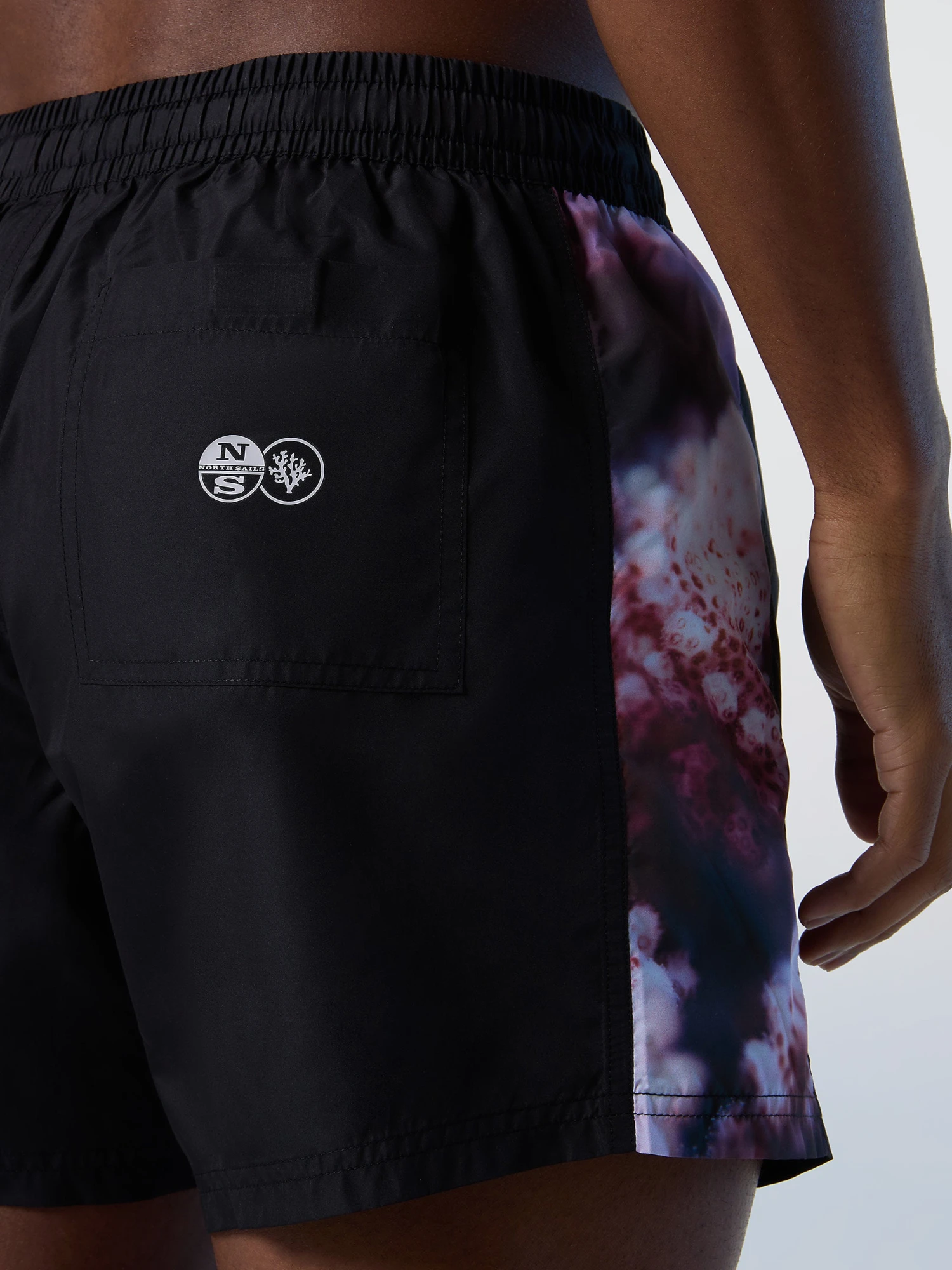 Men’s swim shorts from the Coral Gardeners collection, made from quickdry recycled polyester. Styled with side coralprint bands and a back patch pocket.