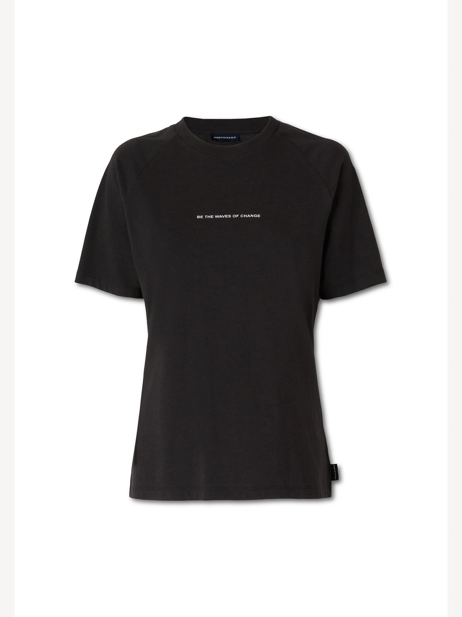 Organic cotton and bamboo jersey T-shirt. Crew neck, raglan sleeves and printed lettering on the front.