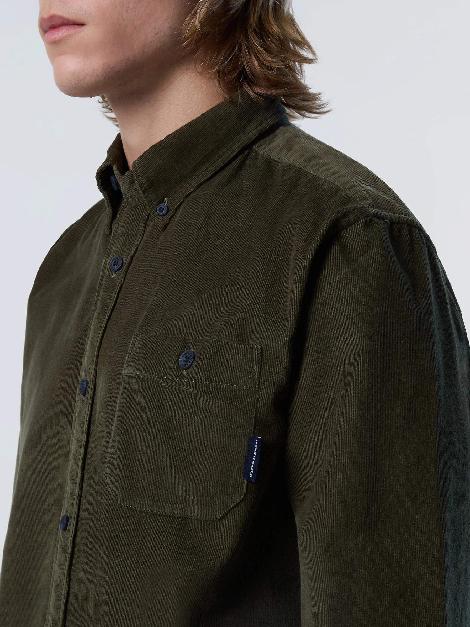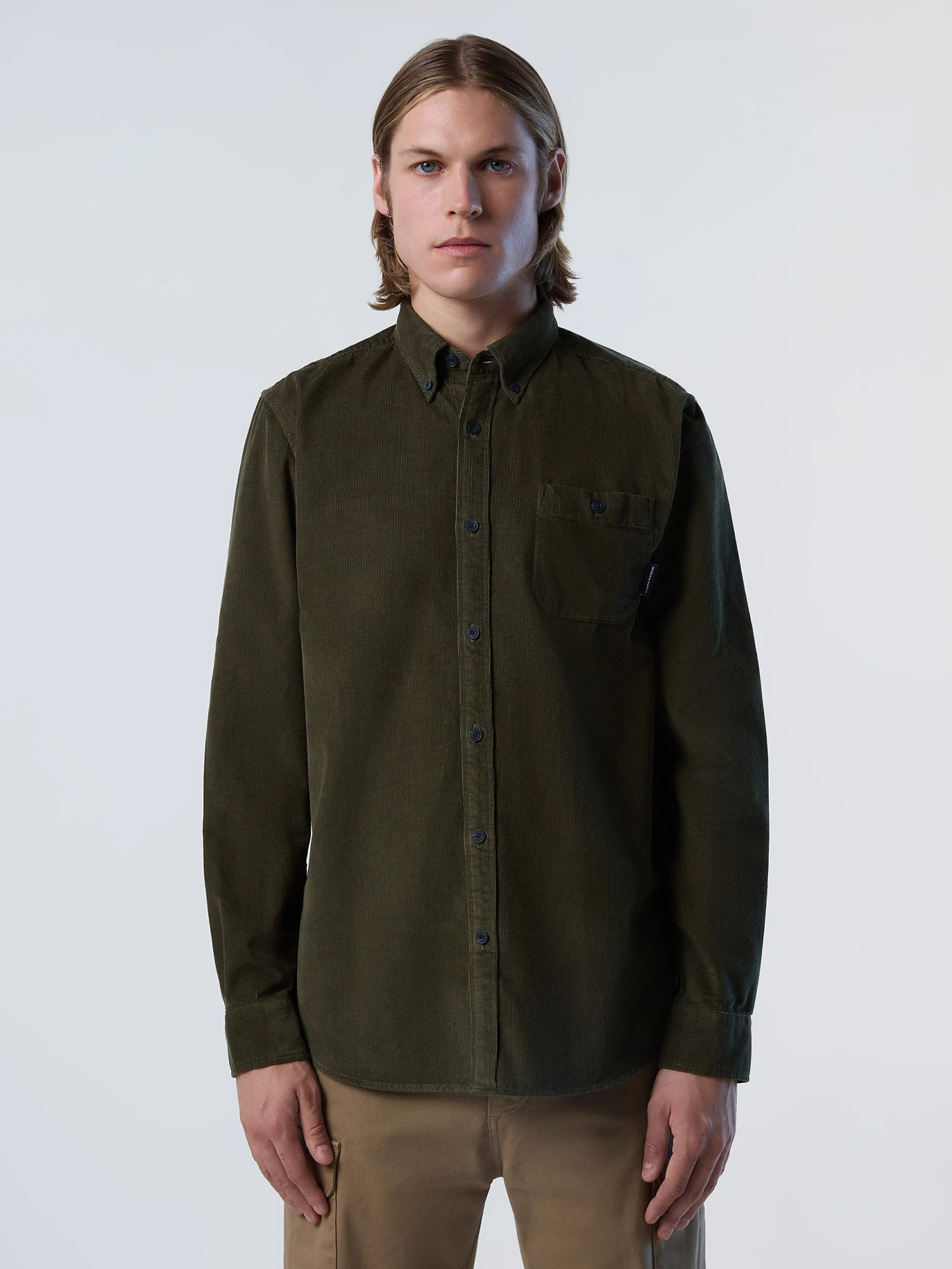 Men’s long-sleeved shirt made from cotton corduroy. Regular fit with rounded hem, button-down collar and patch pocket.