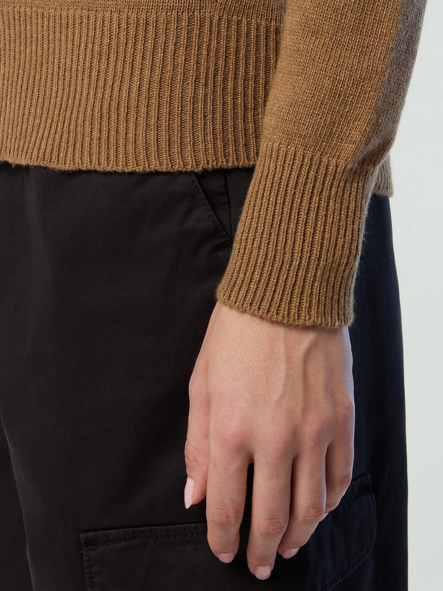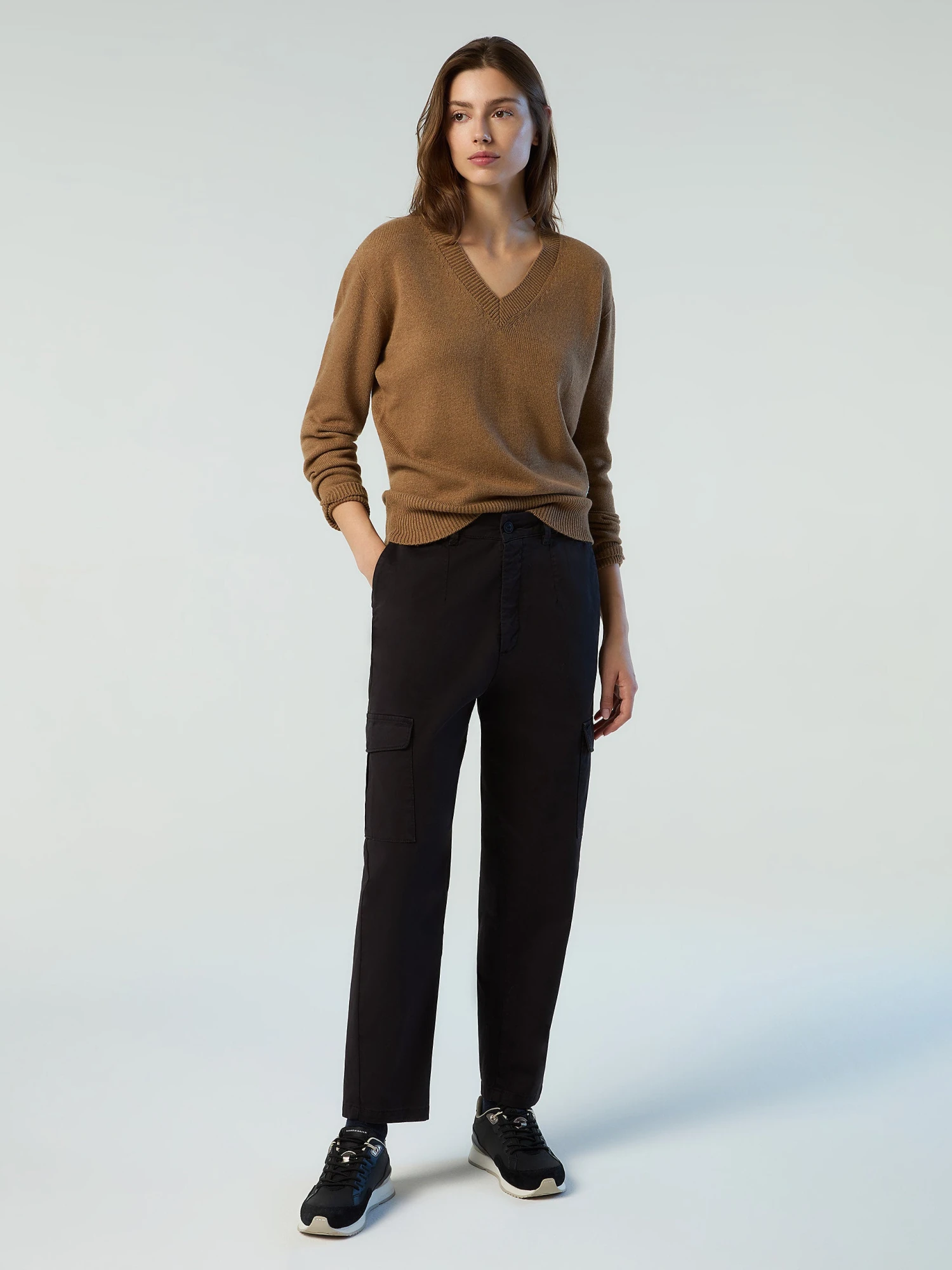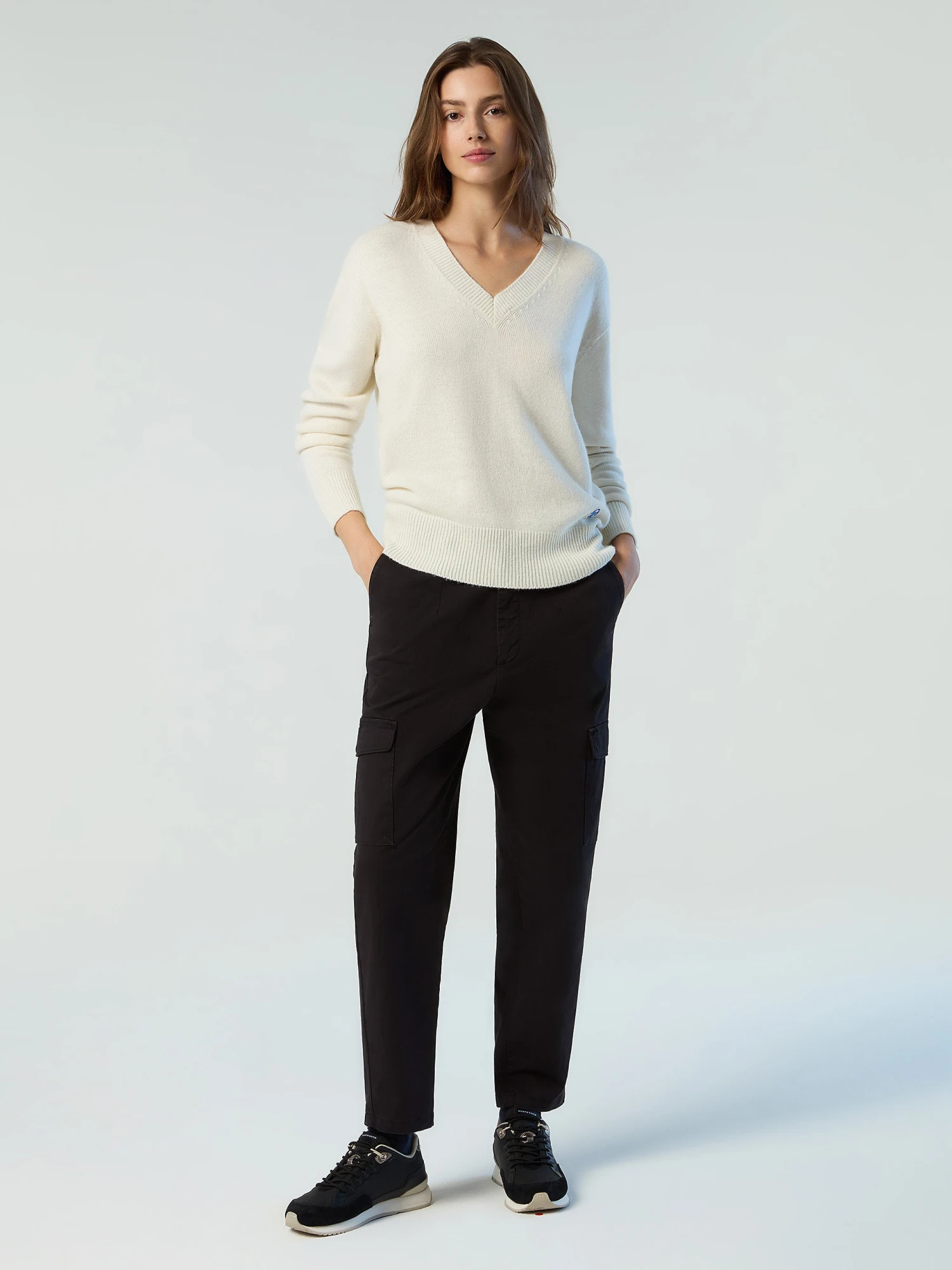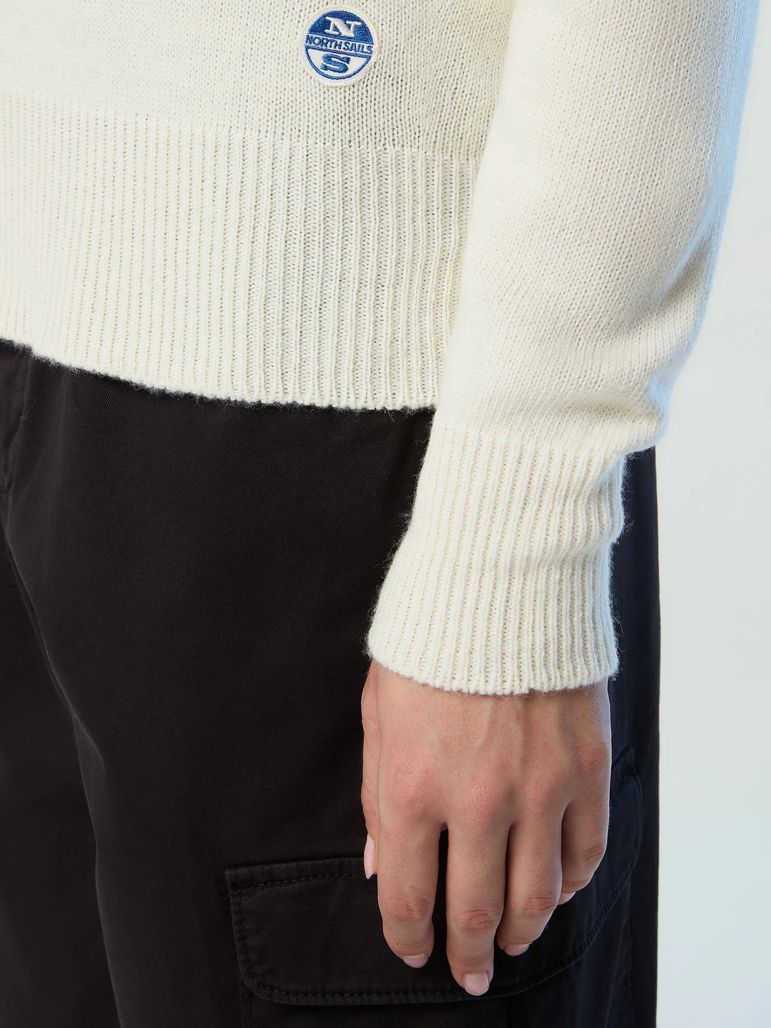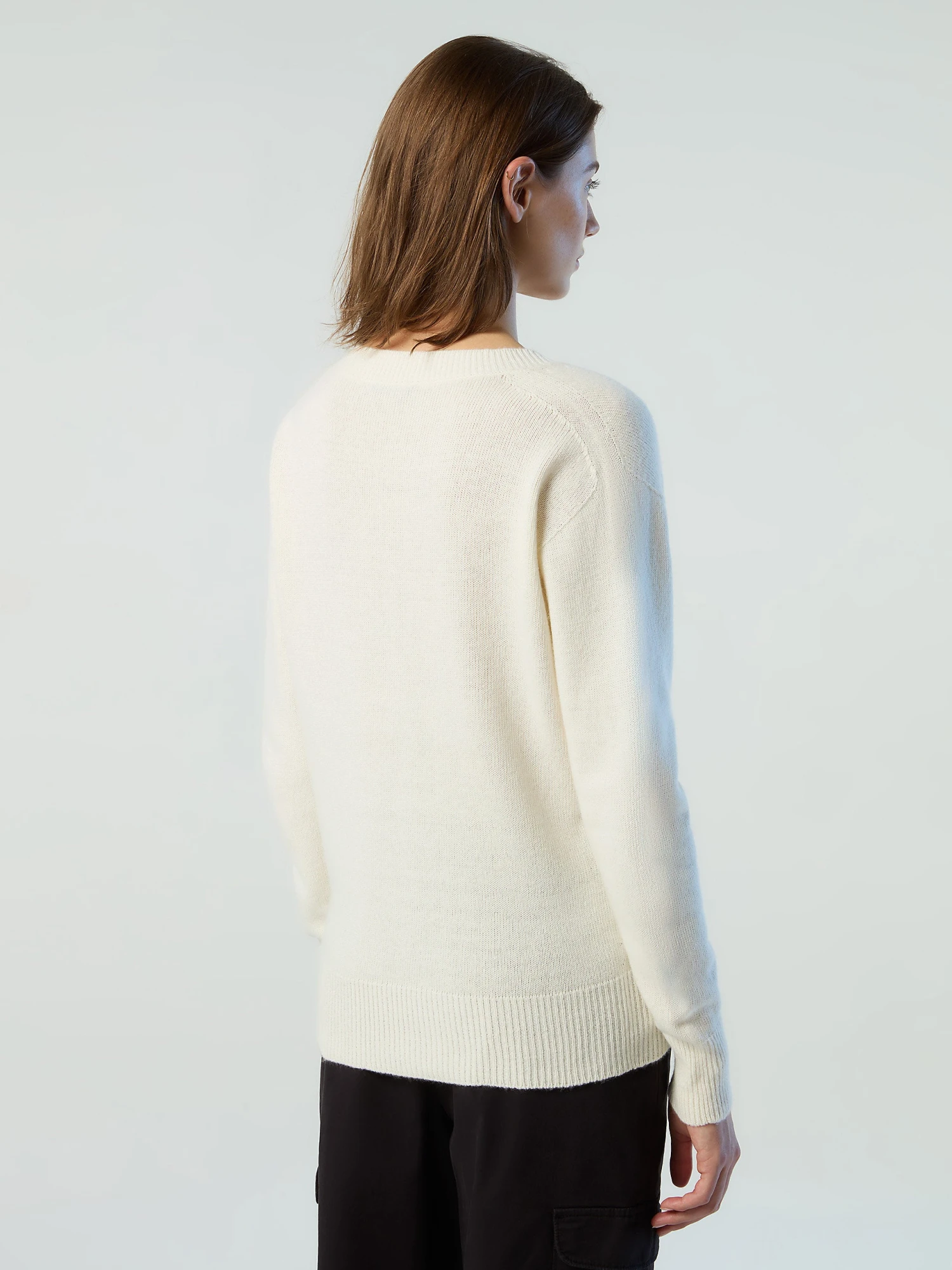 Women’s V-neck sweater knitted from a recycled cashmere blend. Finished with ribbed trims and a North Sails patch.
