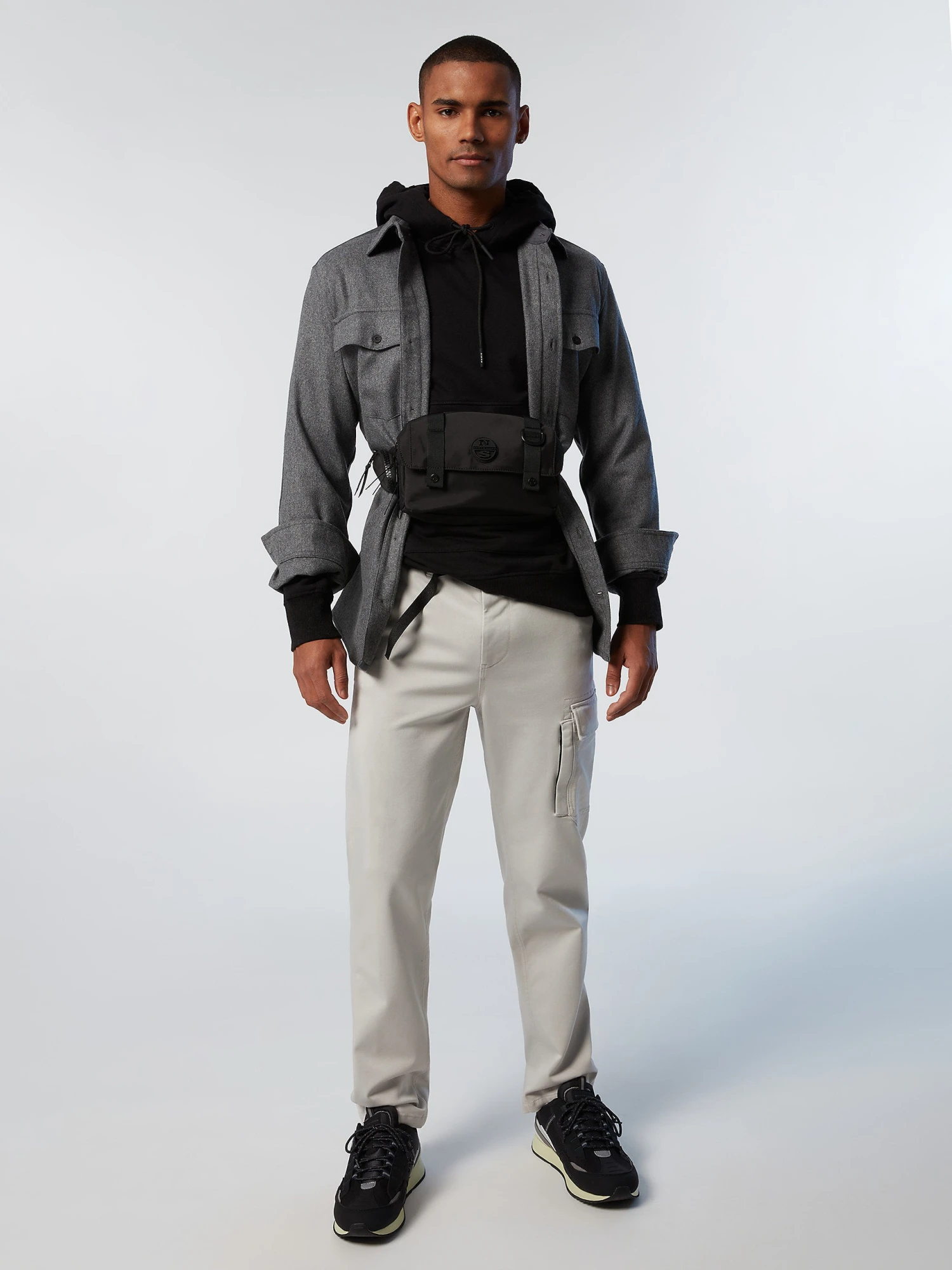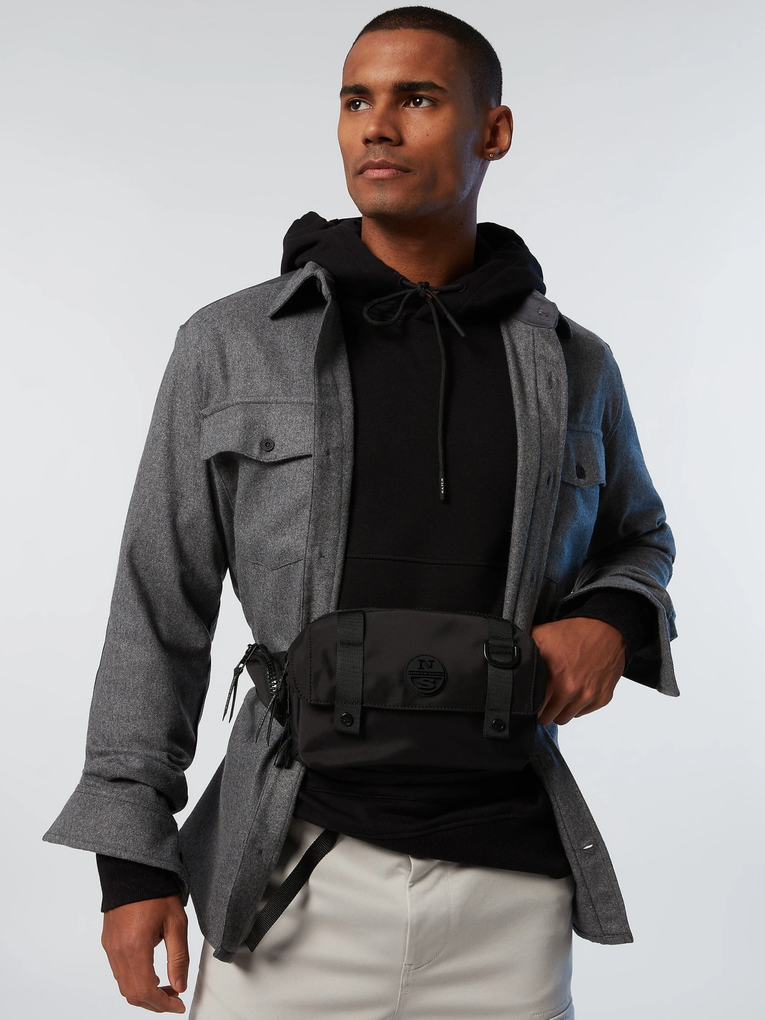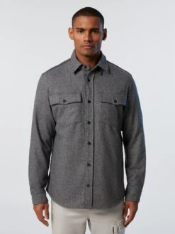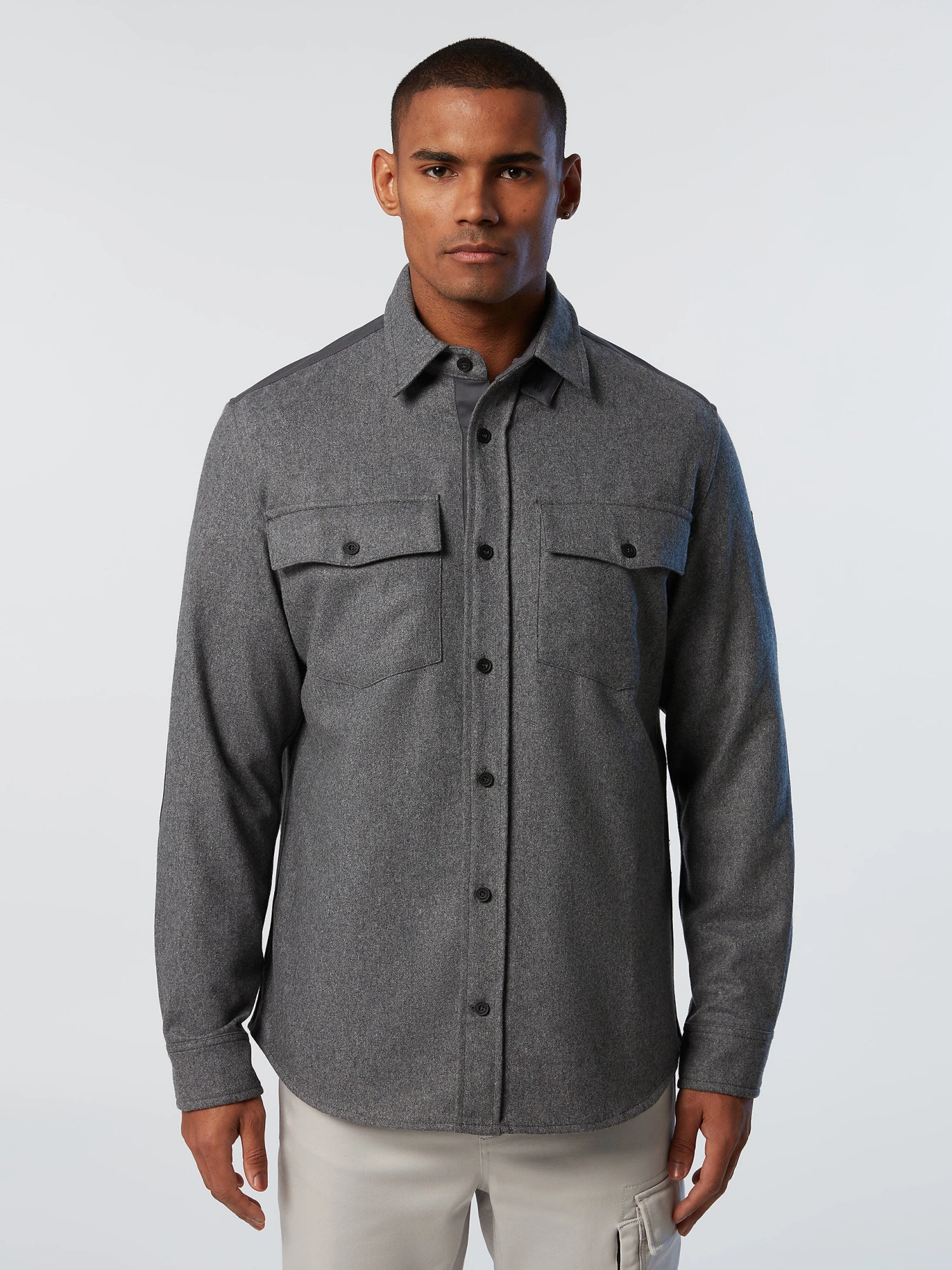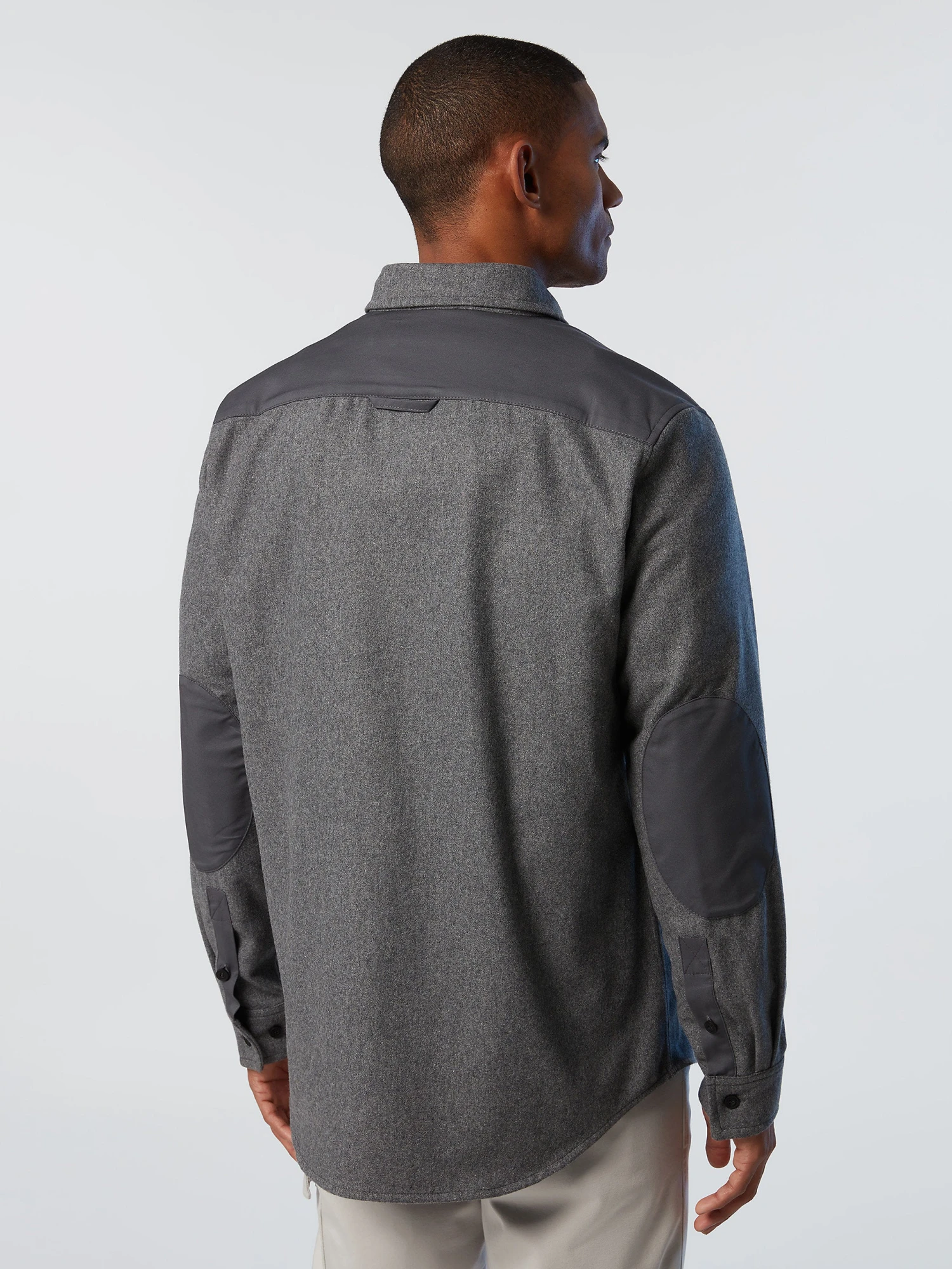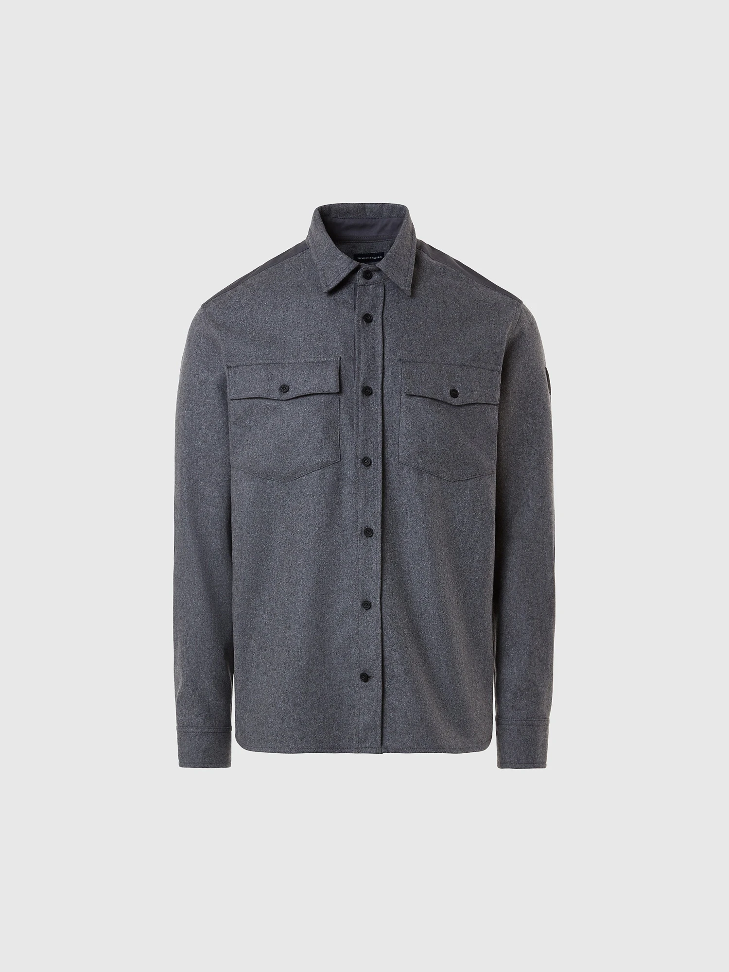 Men’s overshirt made from recycled wool flannel and cotton, featuring patch pockets and elbow patches. Embellished with a North Sails logo patch on the sleeve.