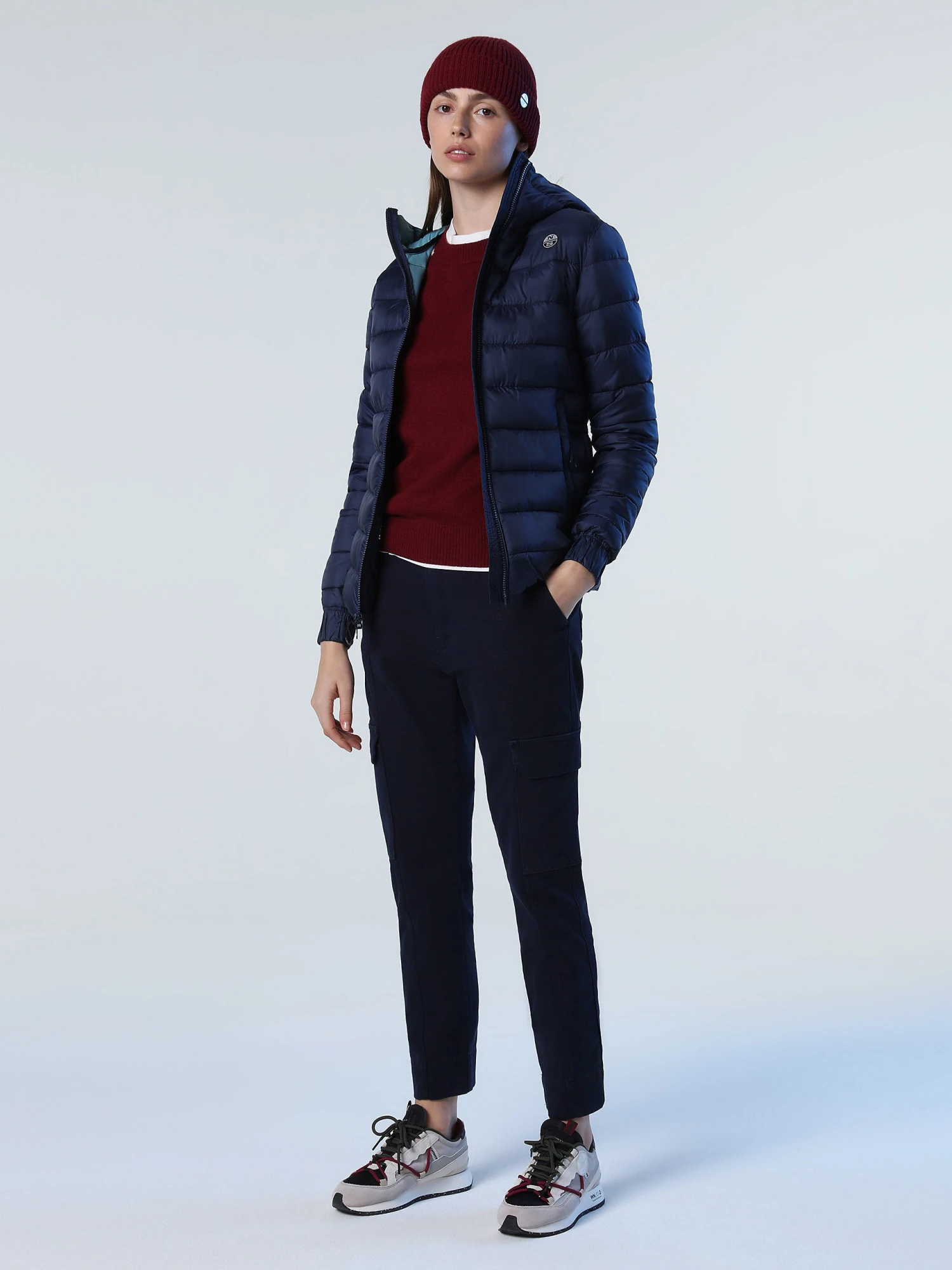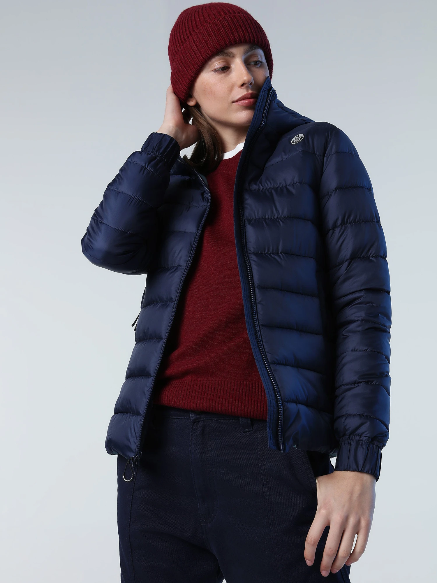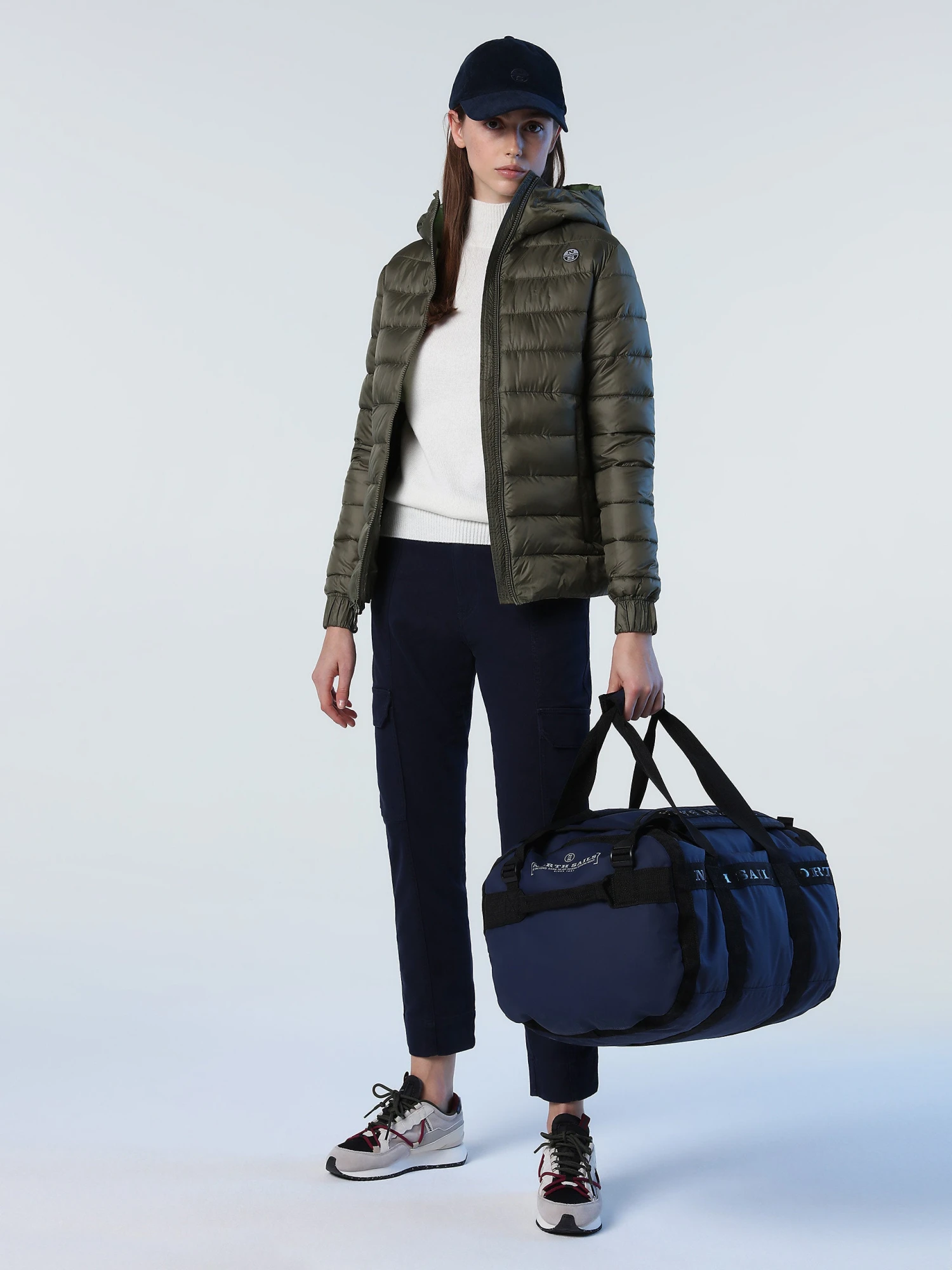Puffer jacket made from recycled nylon micro-ripstop with striped quilting. Finished with a detachable hood, drawstring waist and reflective North Sails logo on the sleeve.