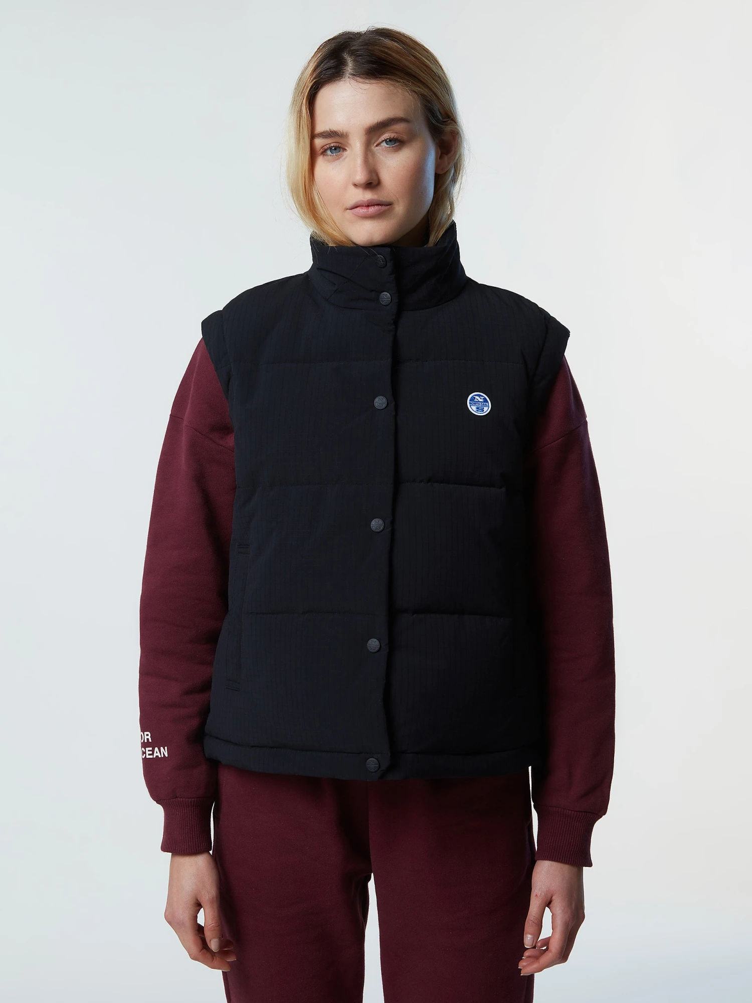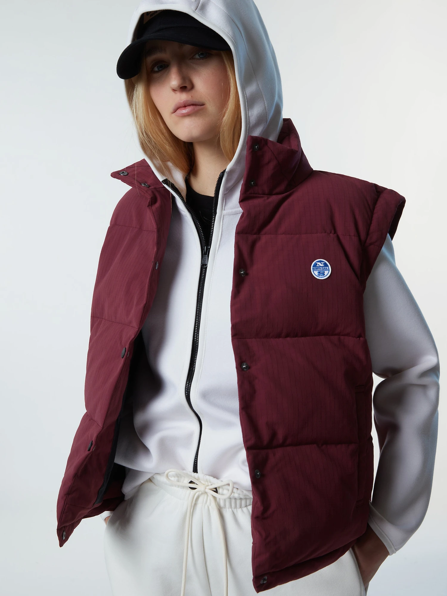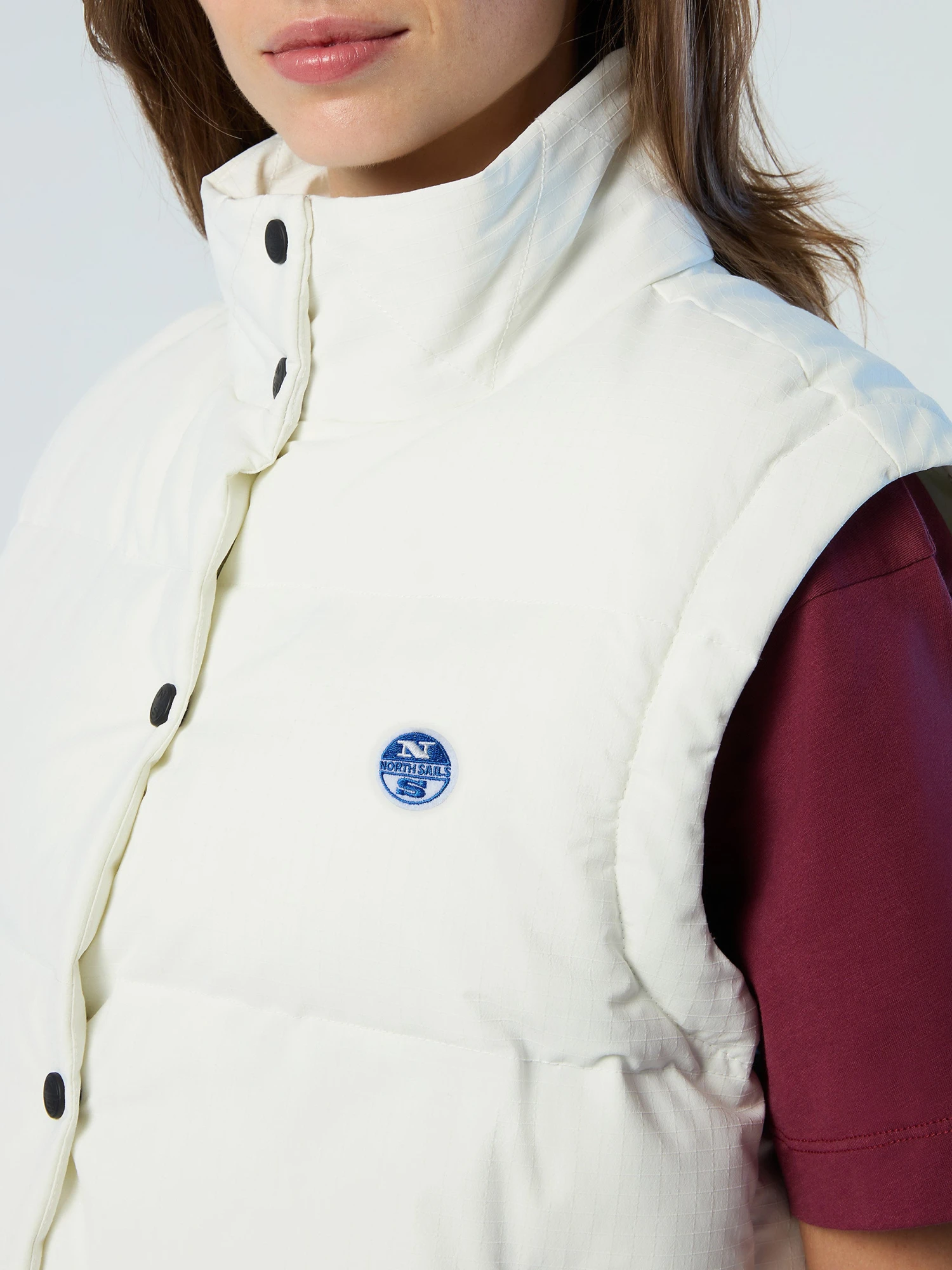 Women’s vest made from recycled ripstop and padded with Soronaยฎ faux down. Contrast lining and North Sails patch on the chest.
