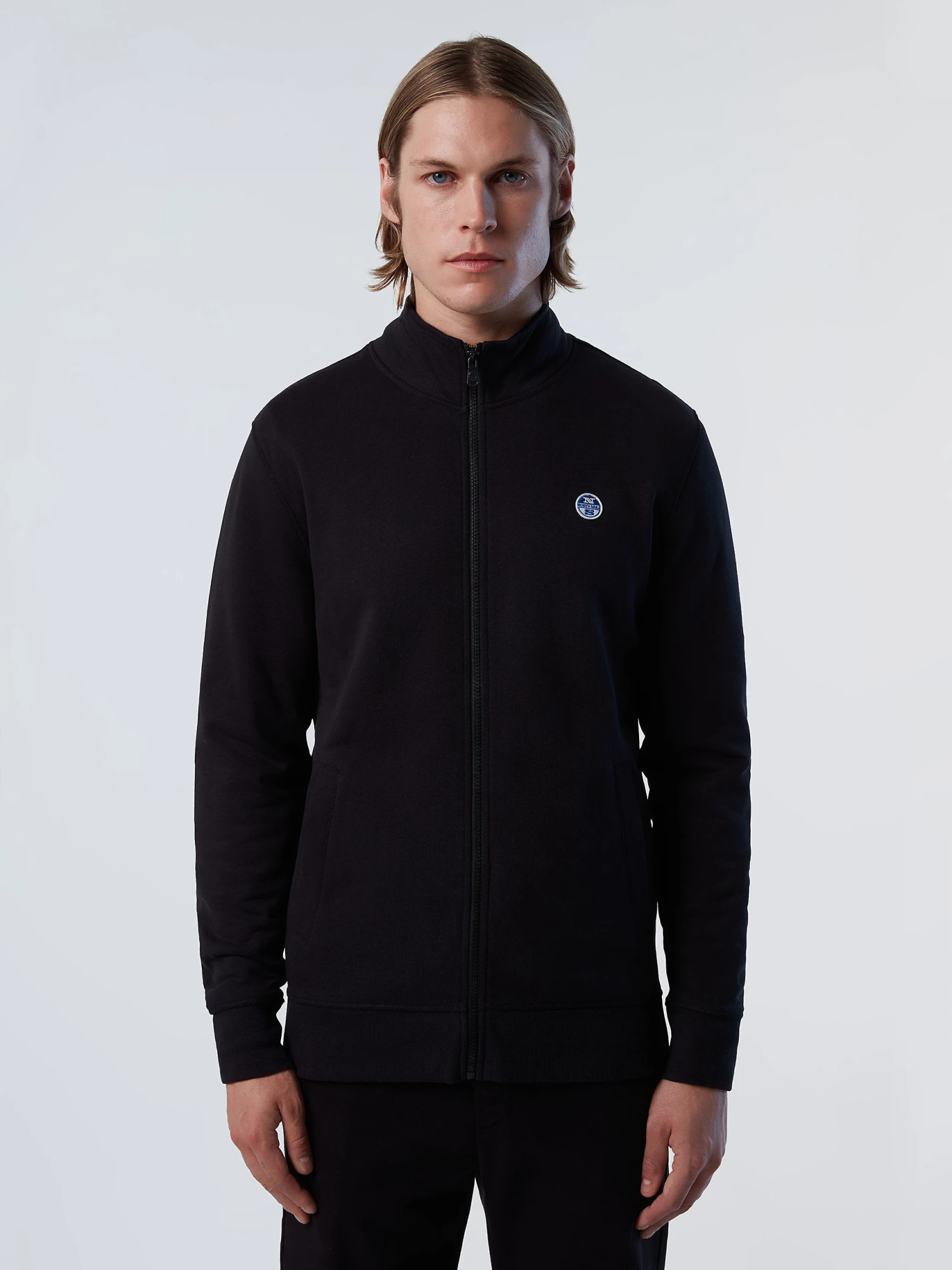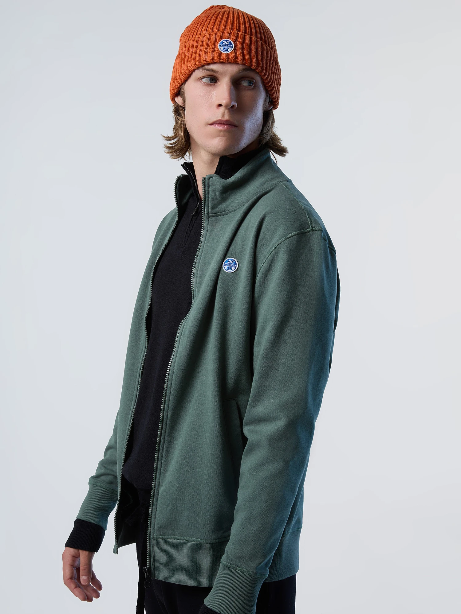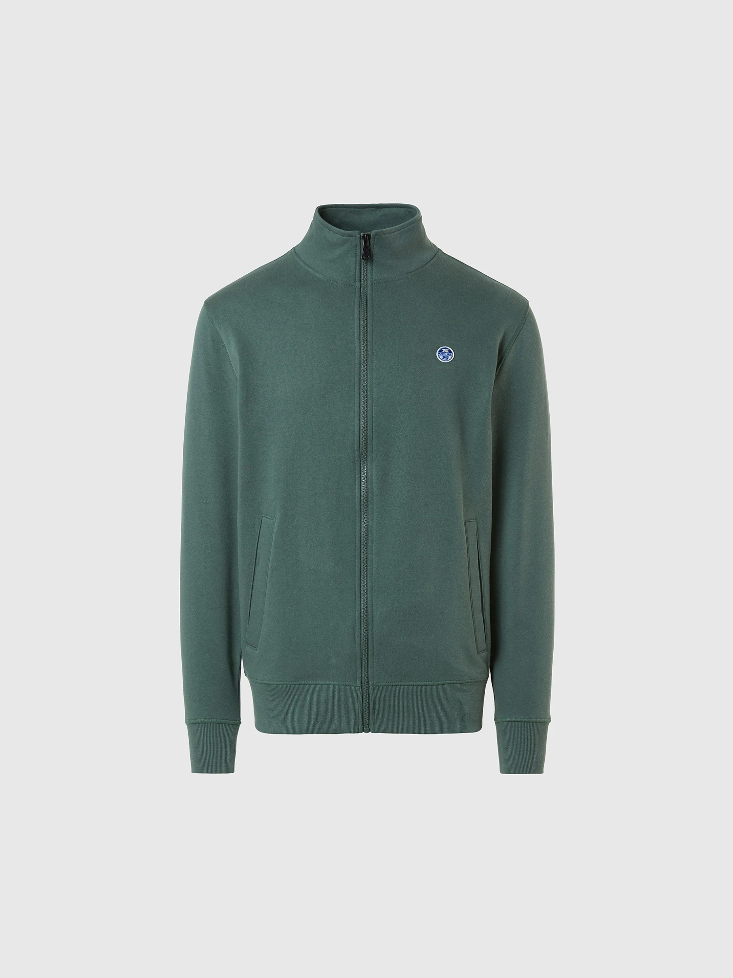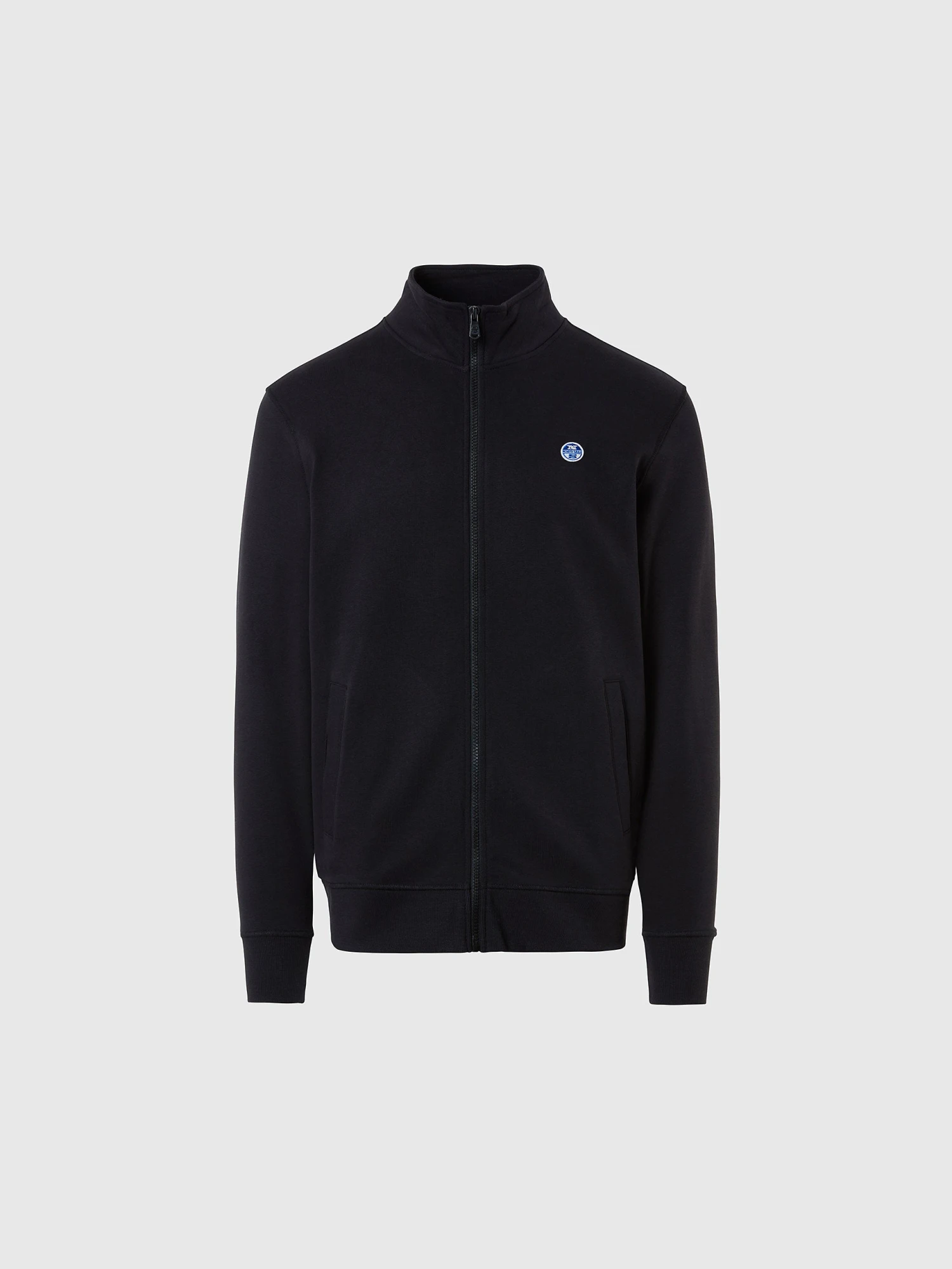 Men’s full-zipper sweatshirt made from brushed organic cotton fleece. High neck, front welt pockets and felt logo patch on the chest.