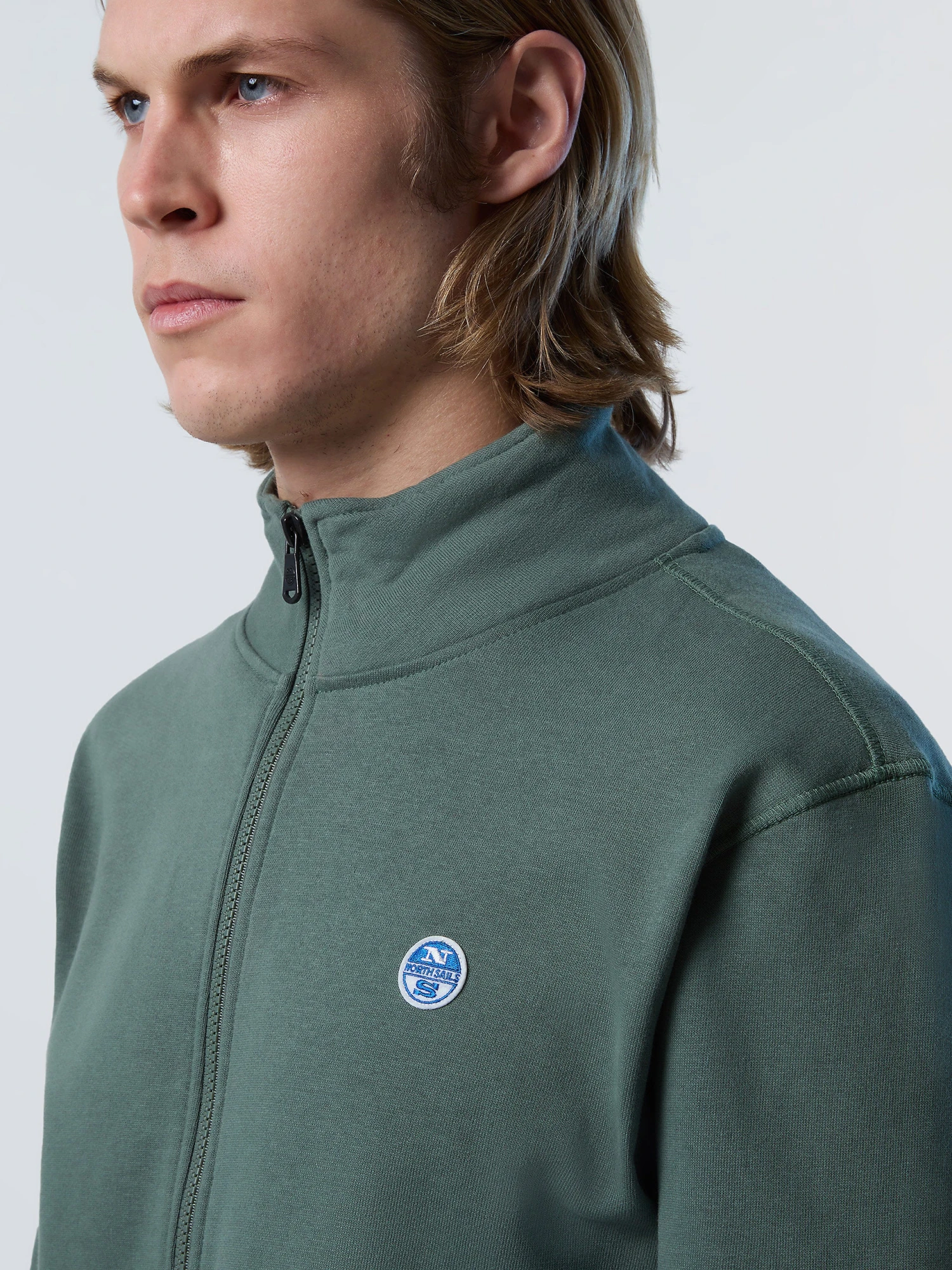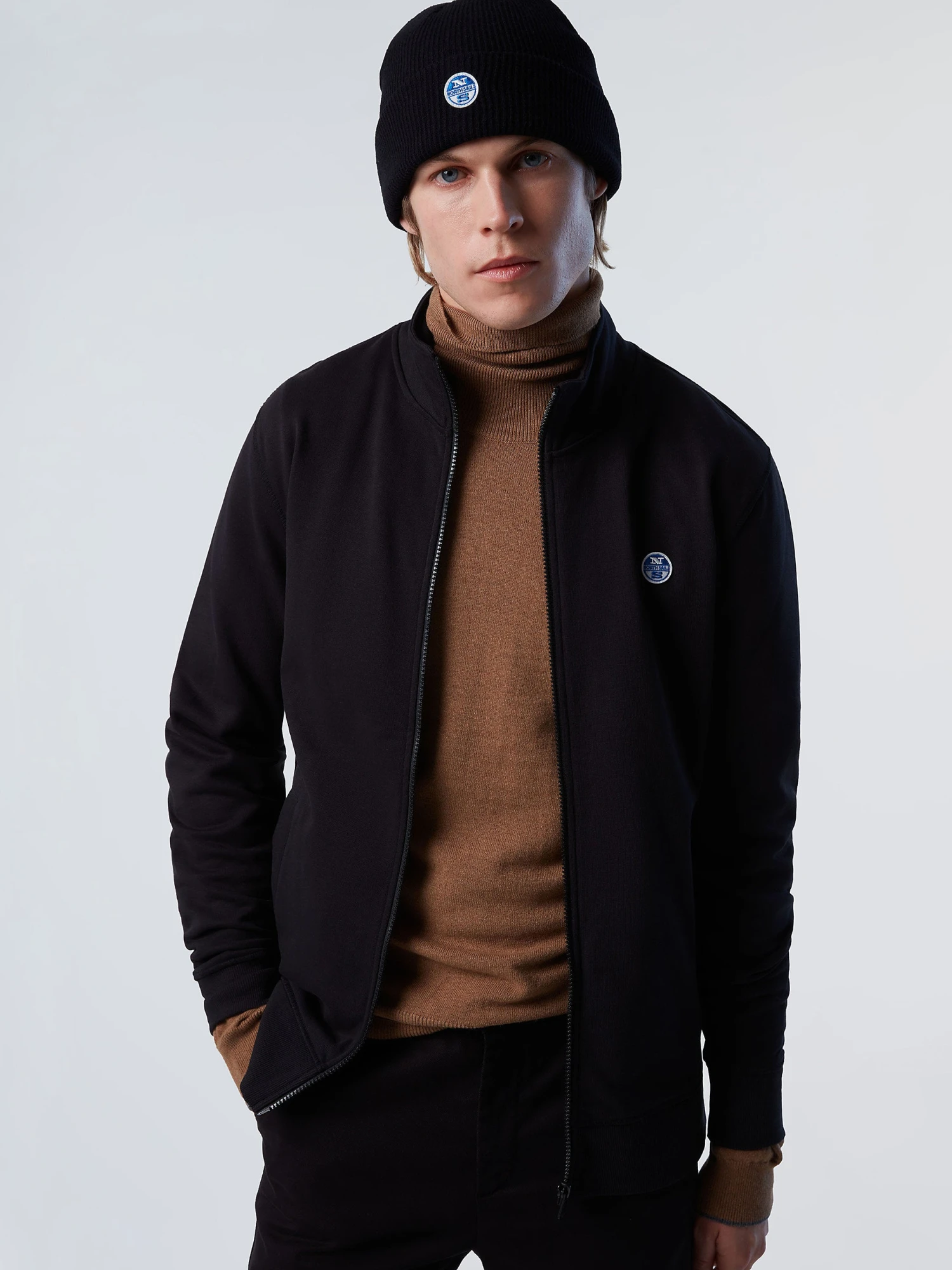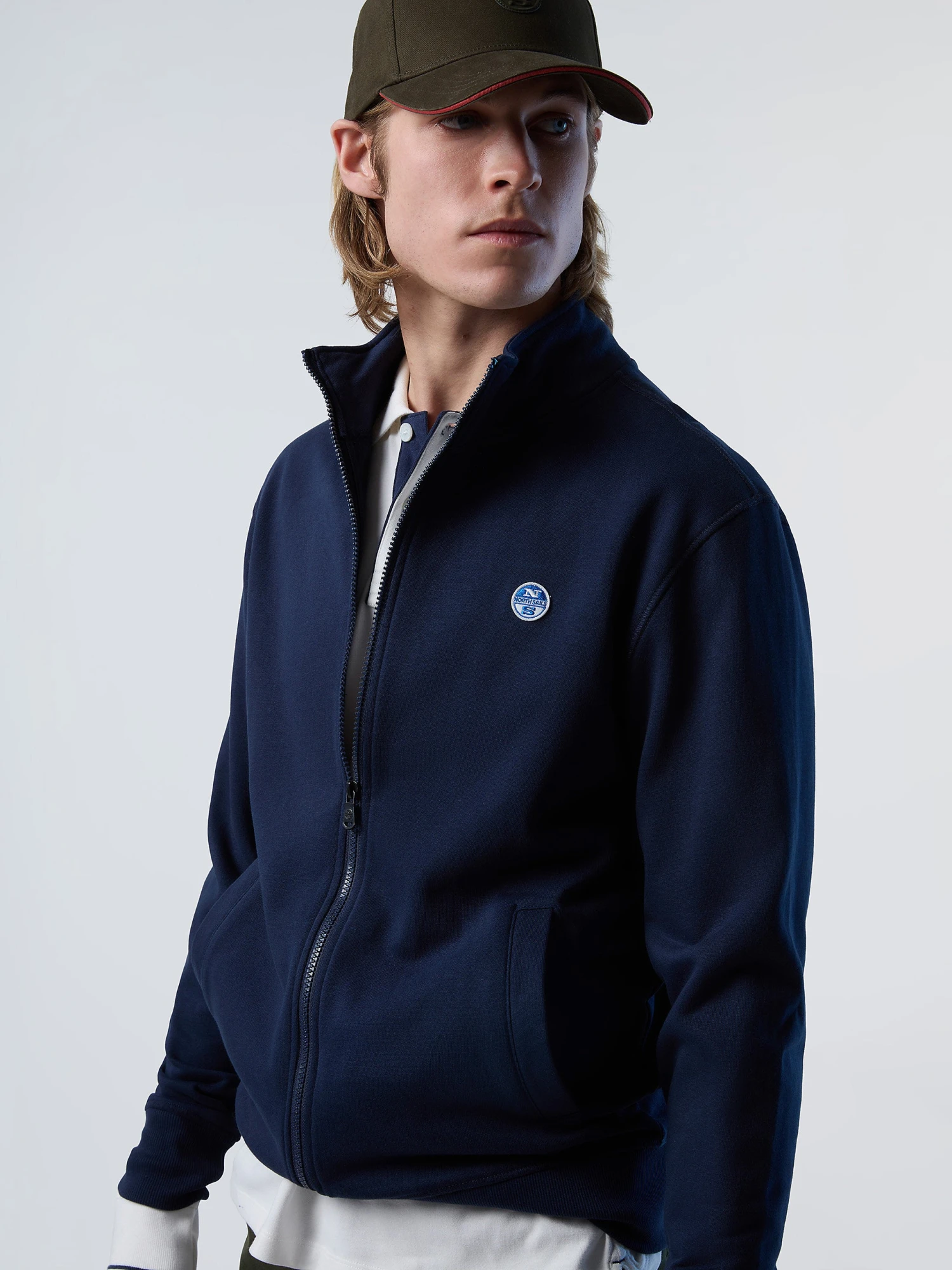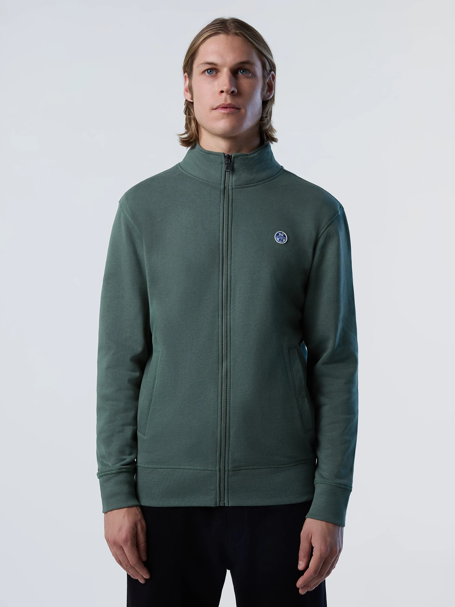 Men’s full-zipper sweatshirt made from brushed organic cotton fleece. High neck, front welt pockets and felt logo patch on the chest.