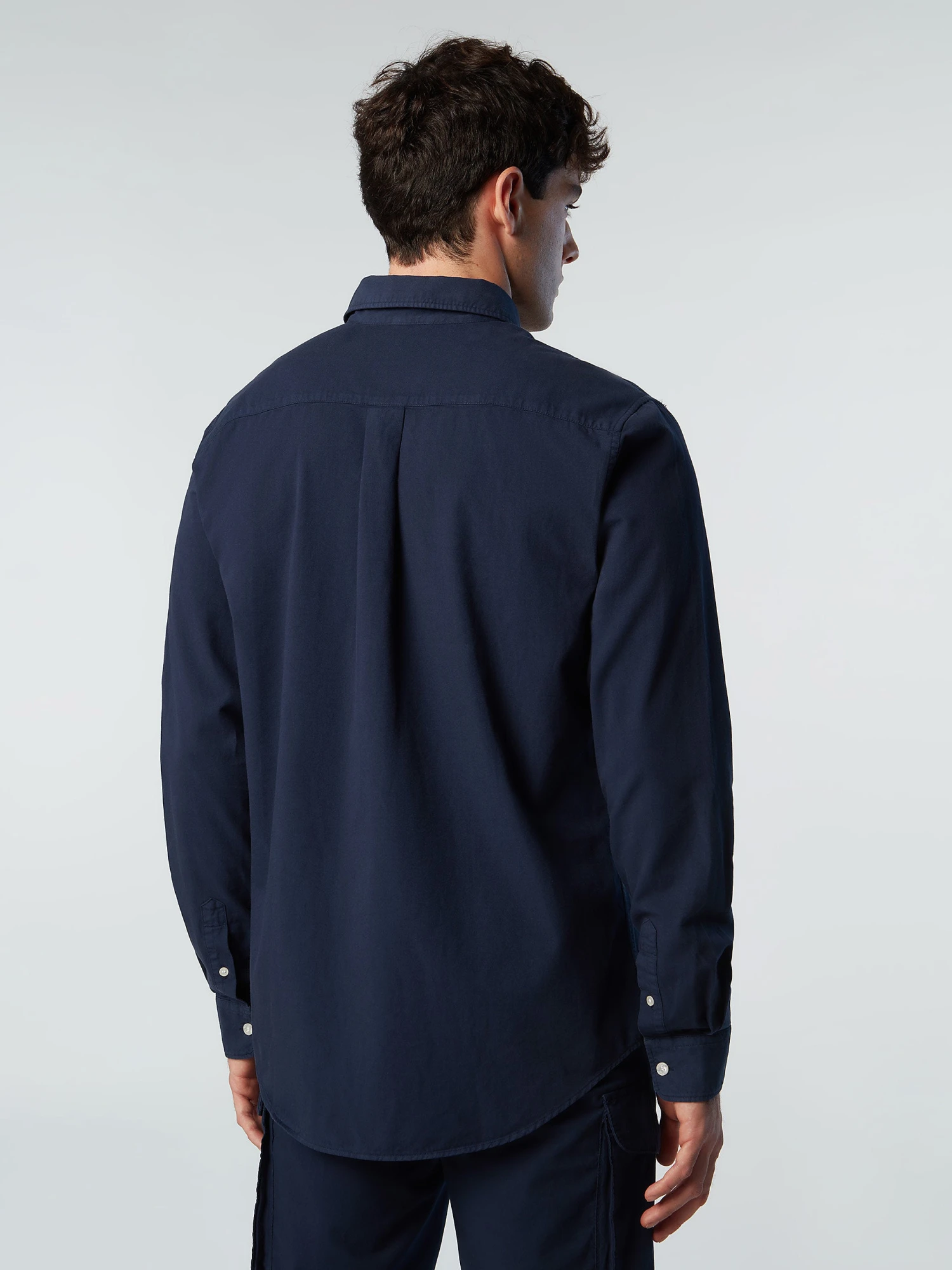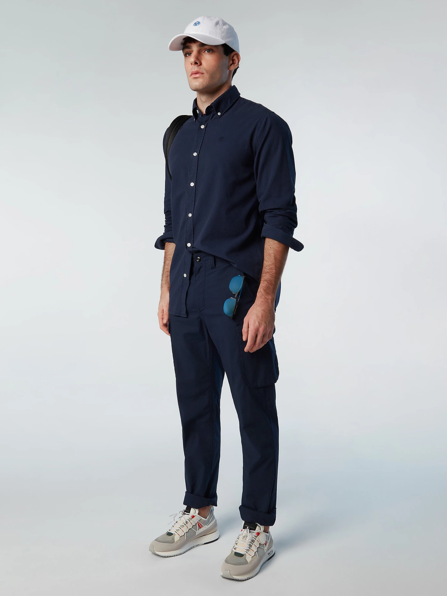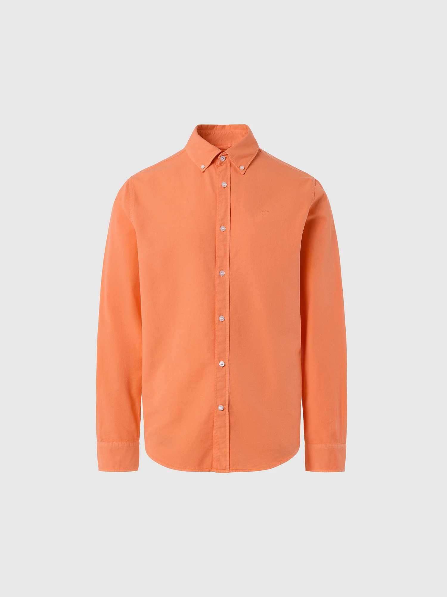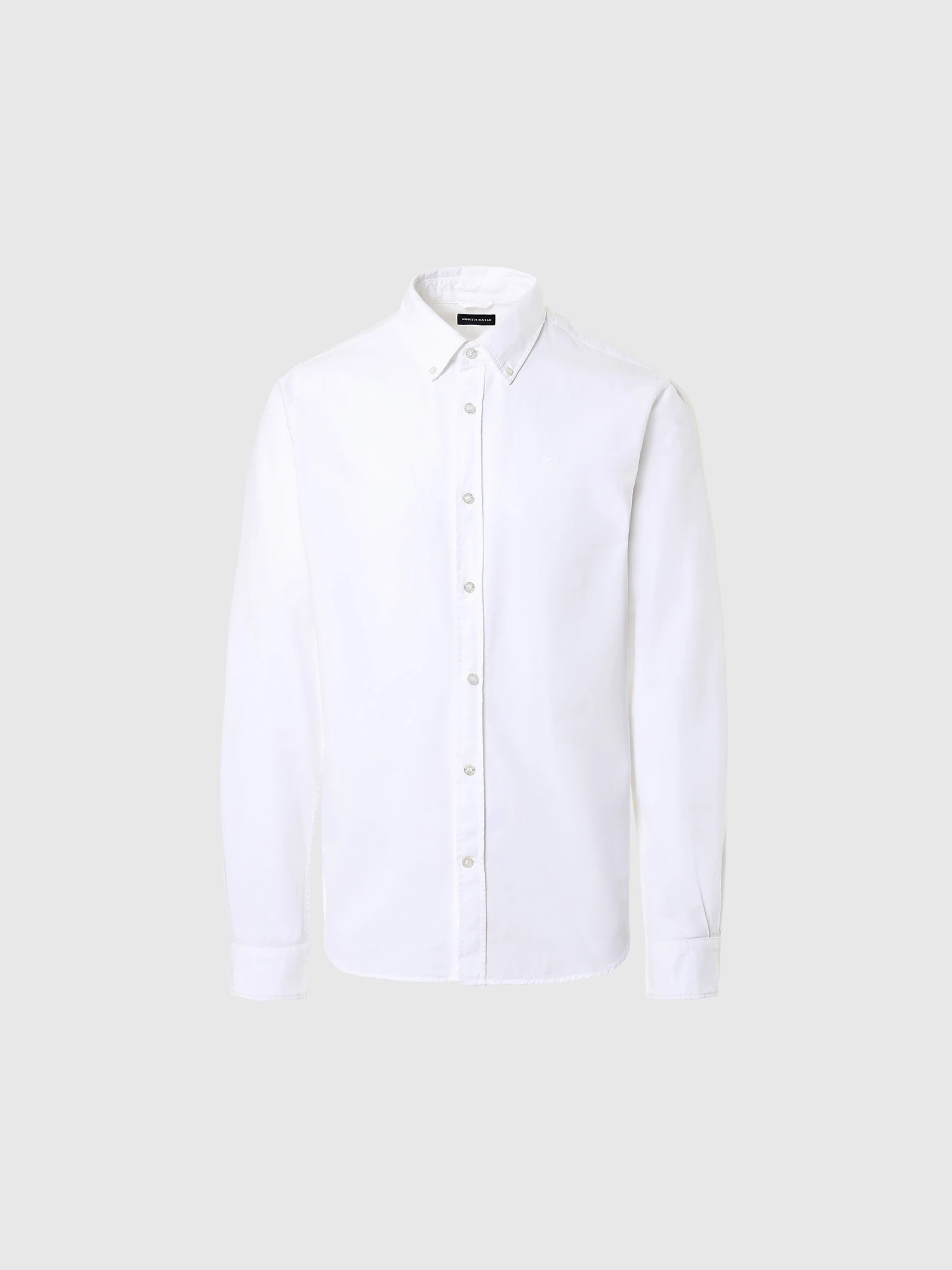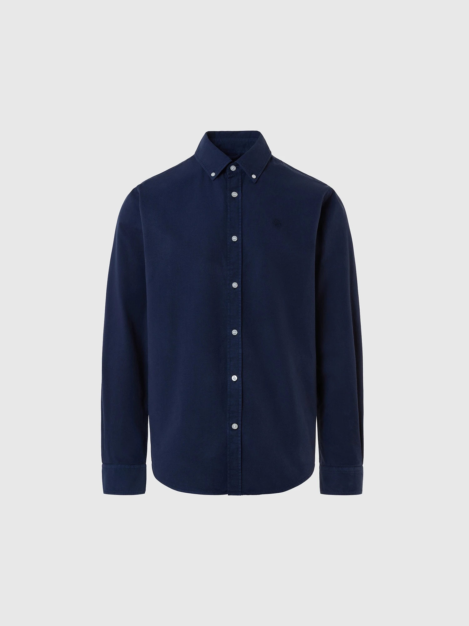 Men’s gabardine shirt made from a blend of organic and recycled cotton. Button-down collar and rounded hem, embellished with an embroidered logo on the chest.