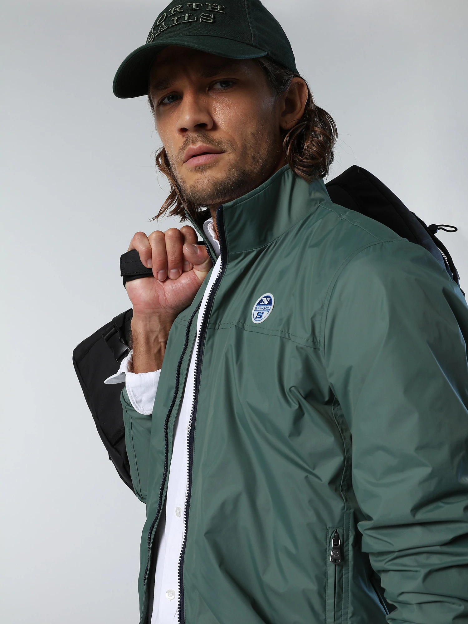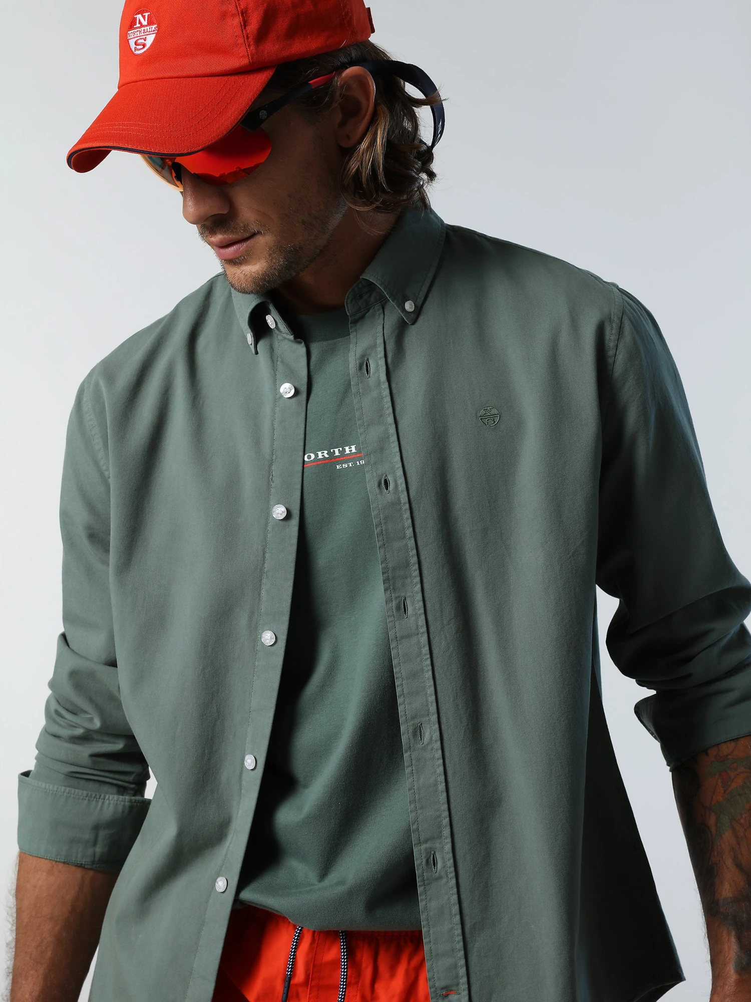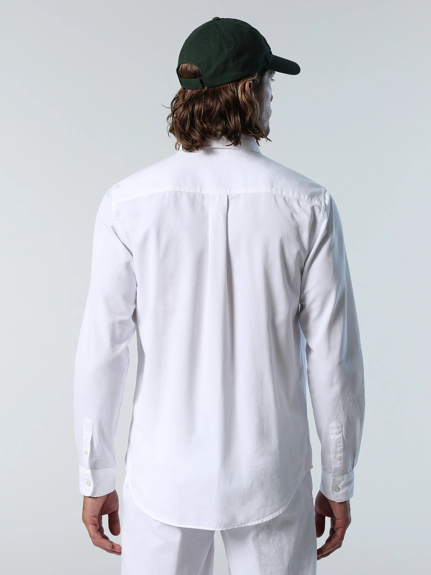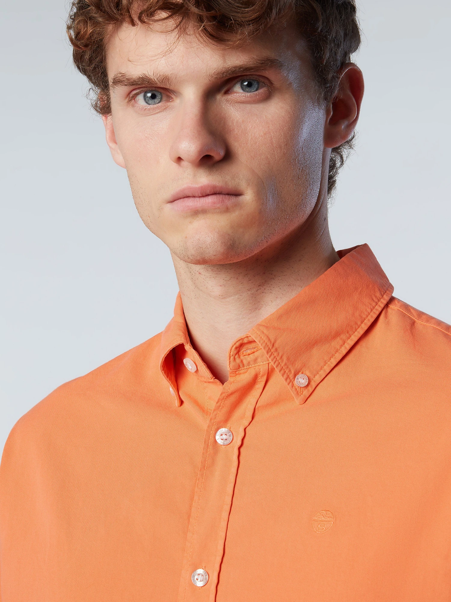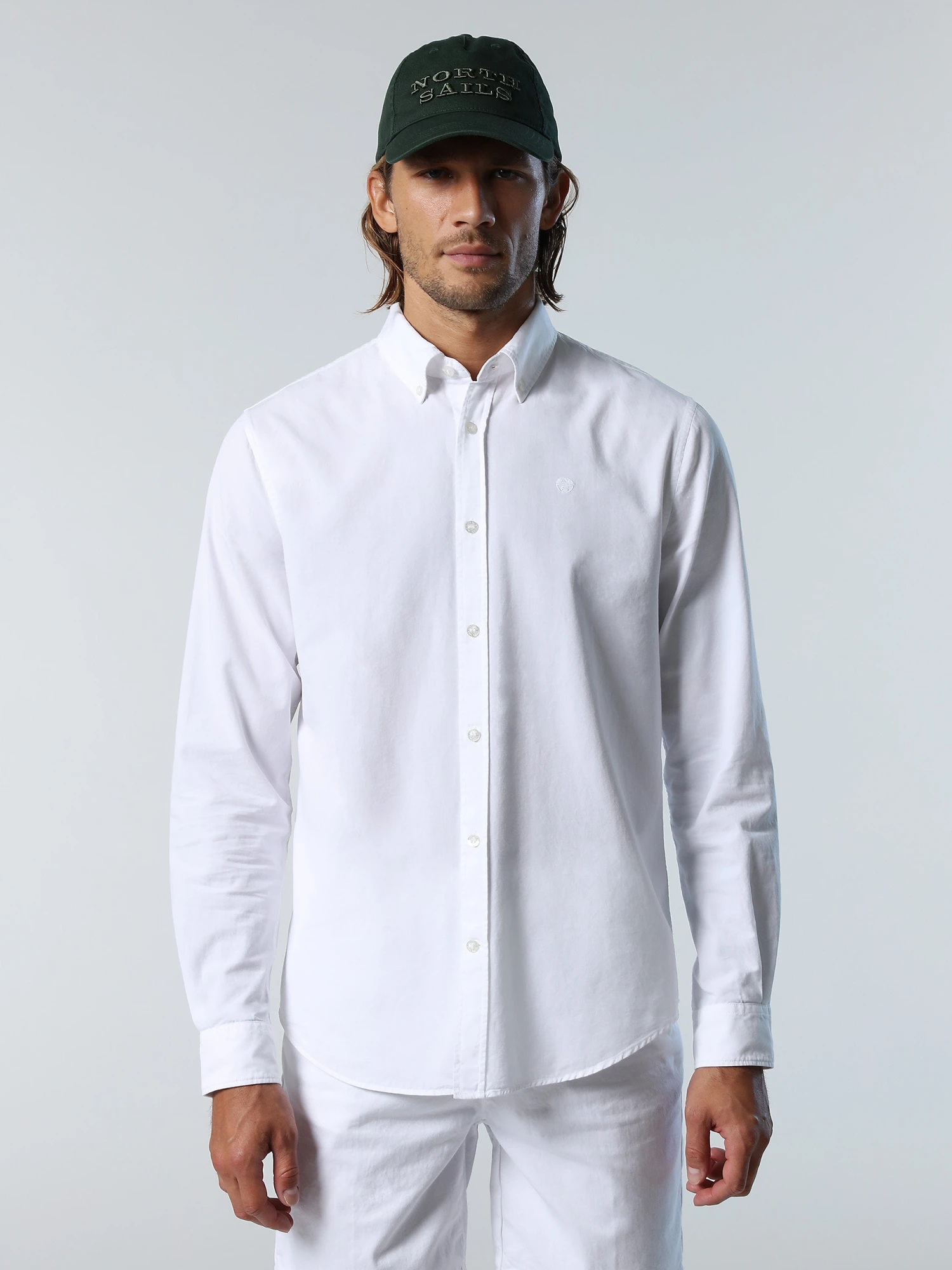 Men’s gabardine shirt made from a blend of organic and recycled cotton. Button-down collar and rounded hem, embellished with an embroidered logo on the chest.