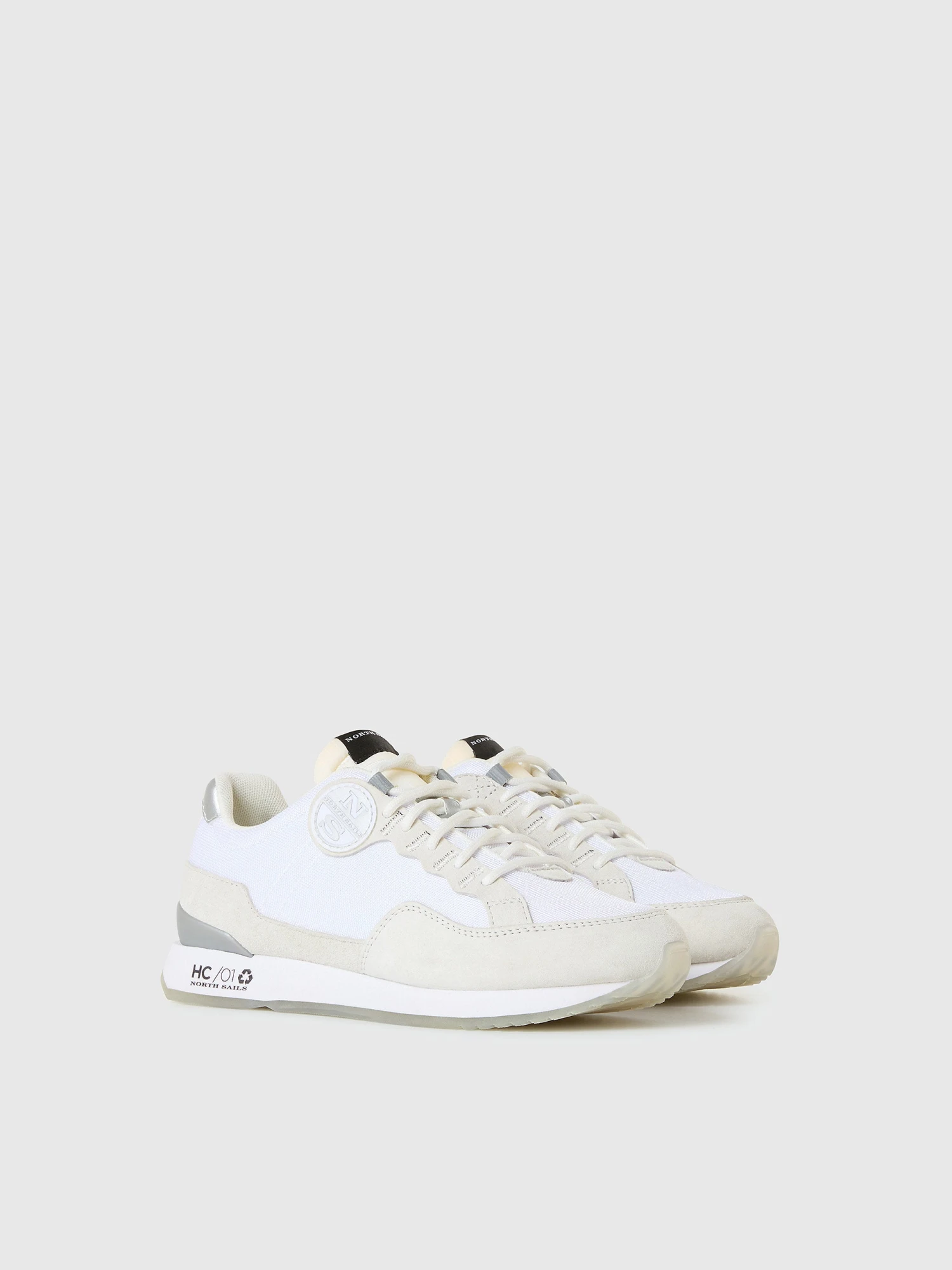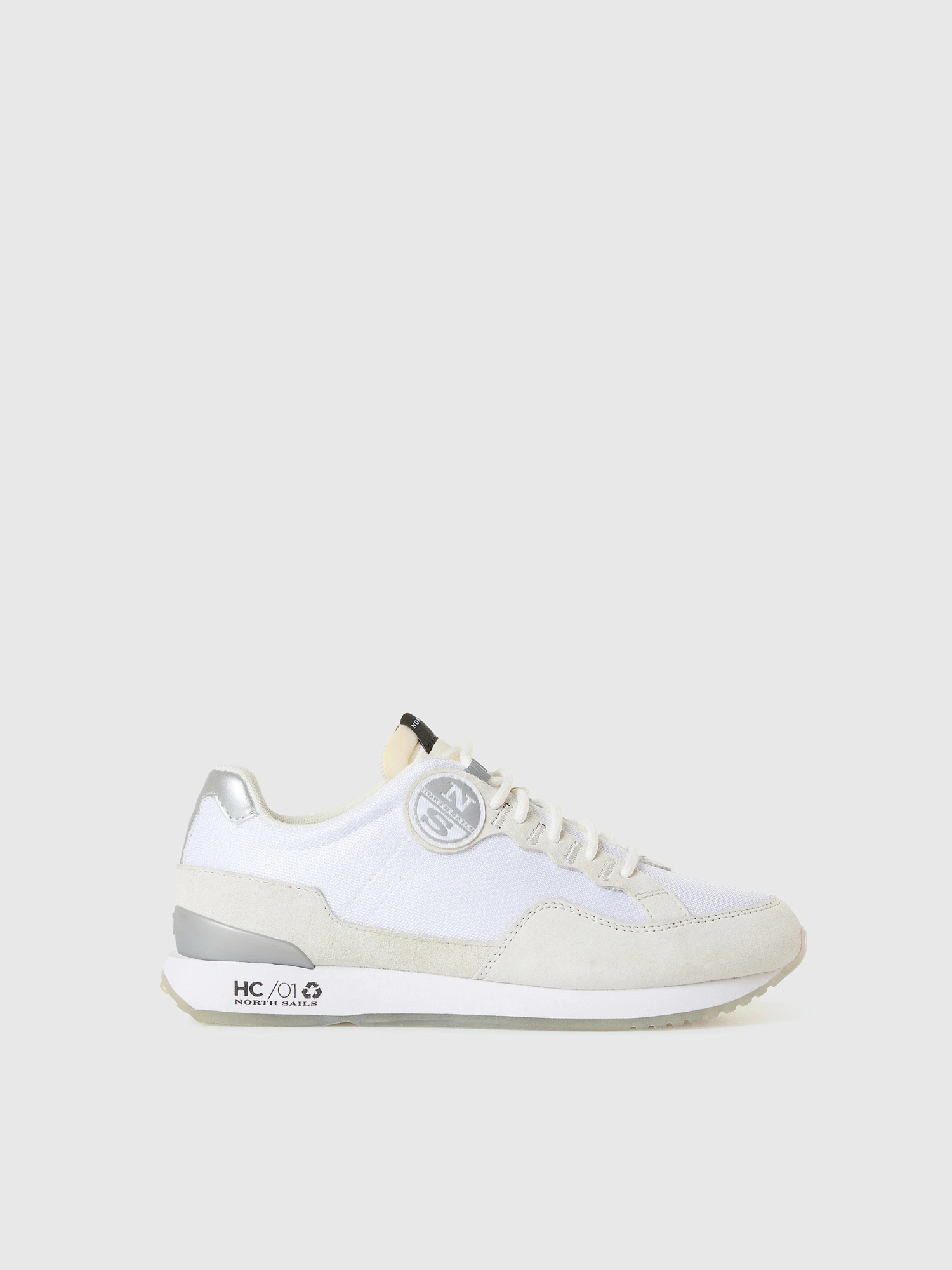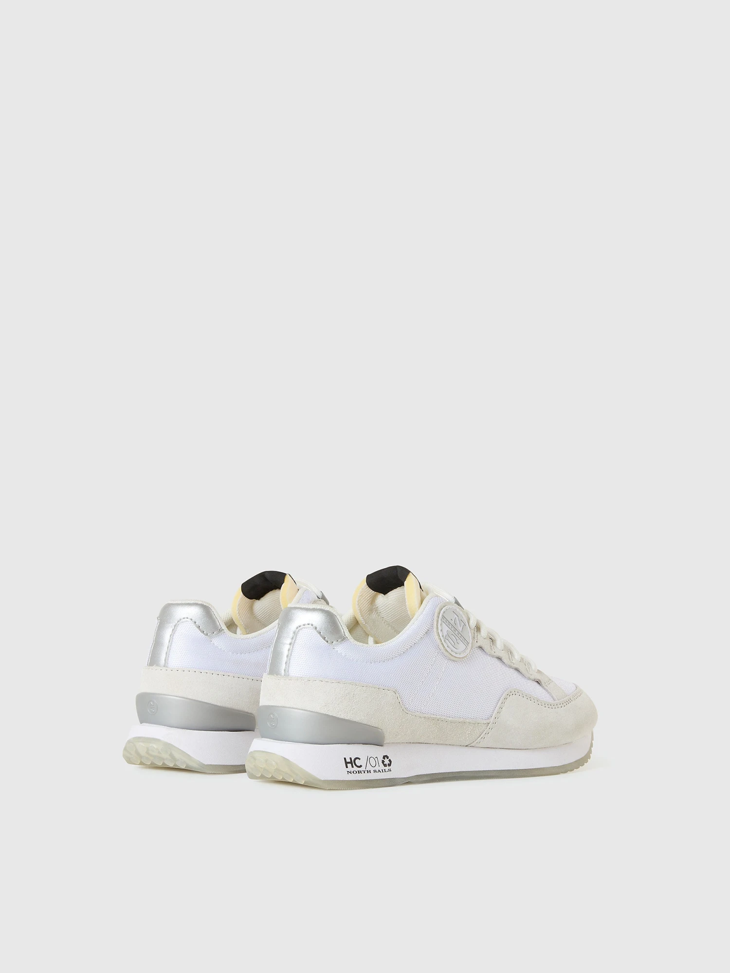 Women’s Hitch Pure sneaker made from shiny recycled mesh with suede panels. Embellished with a side logo patch and silver accents.