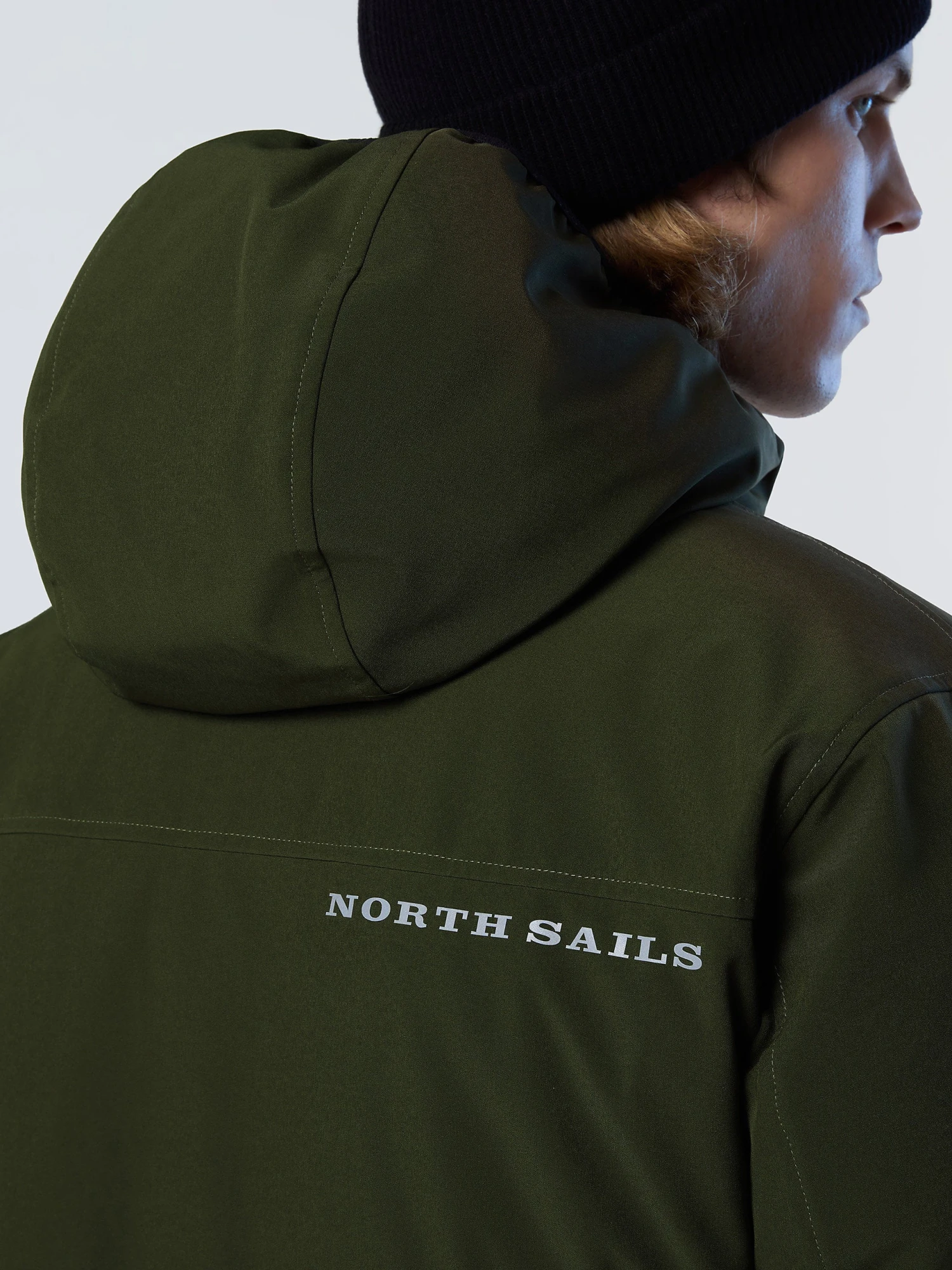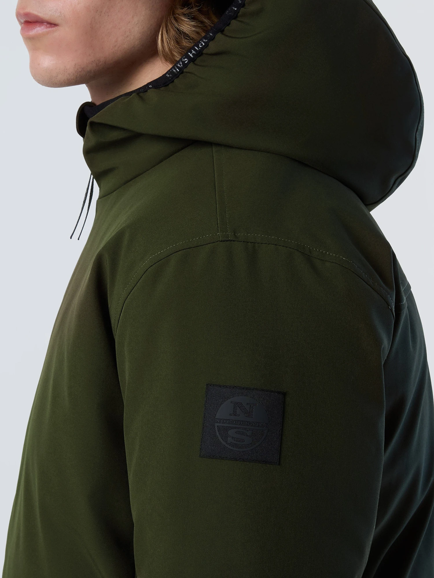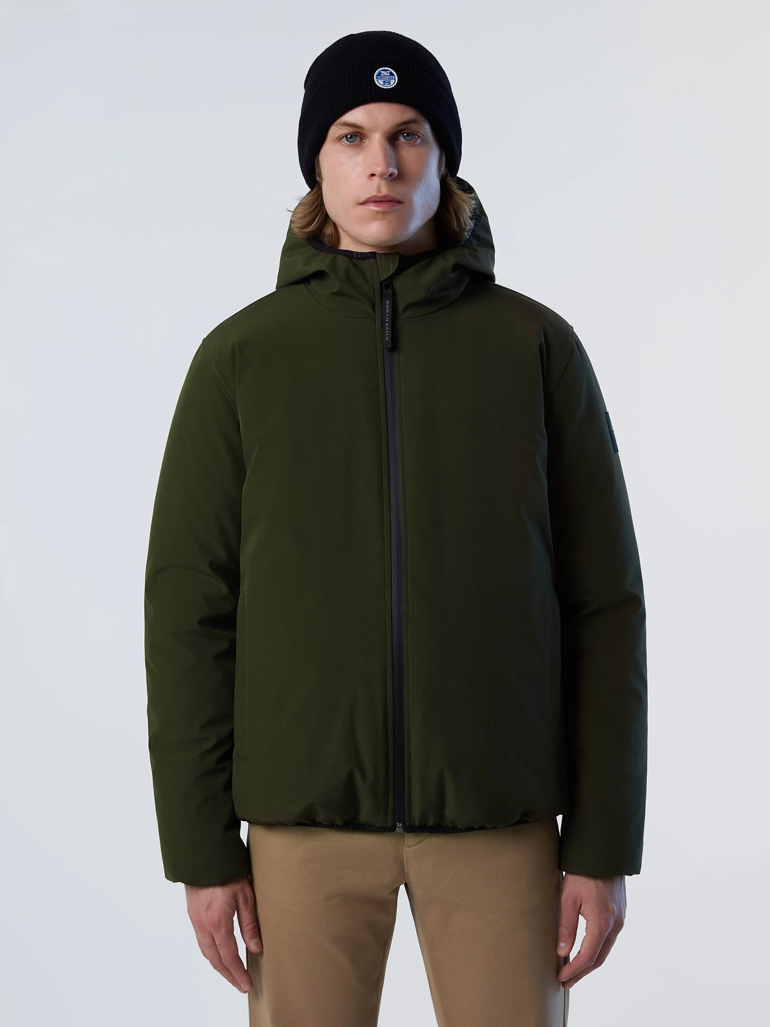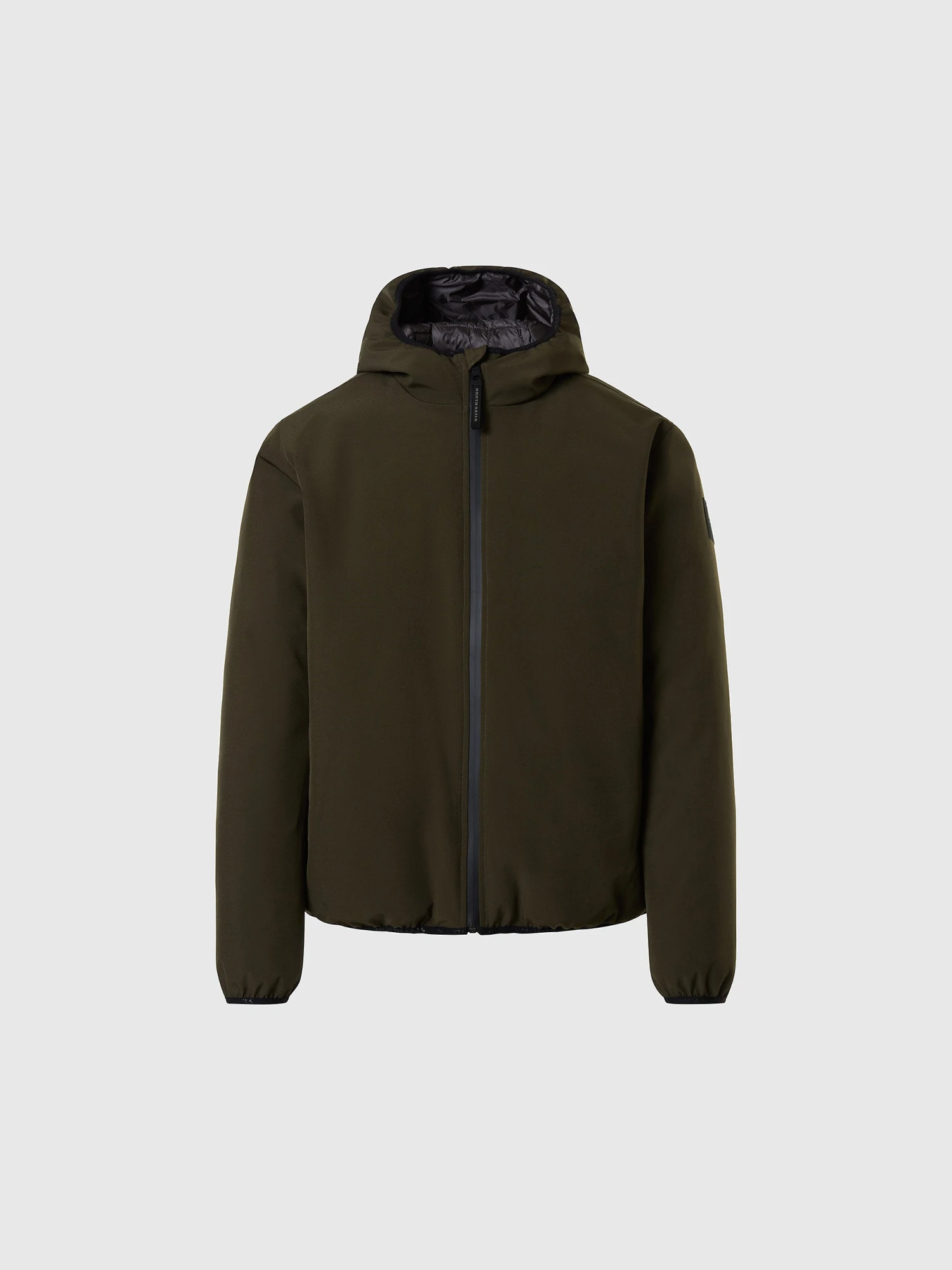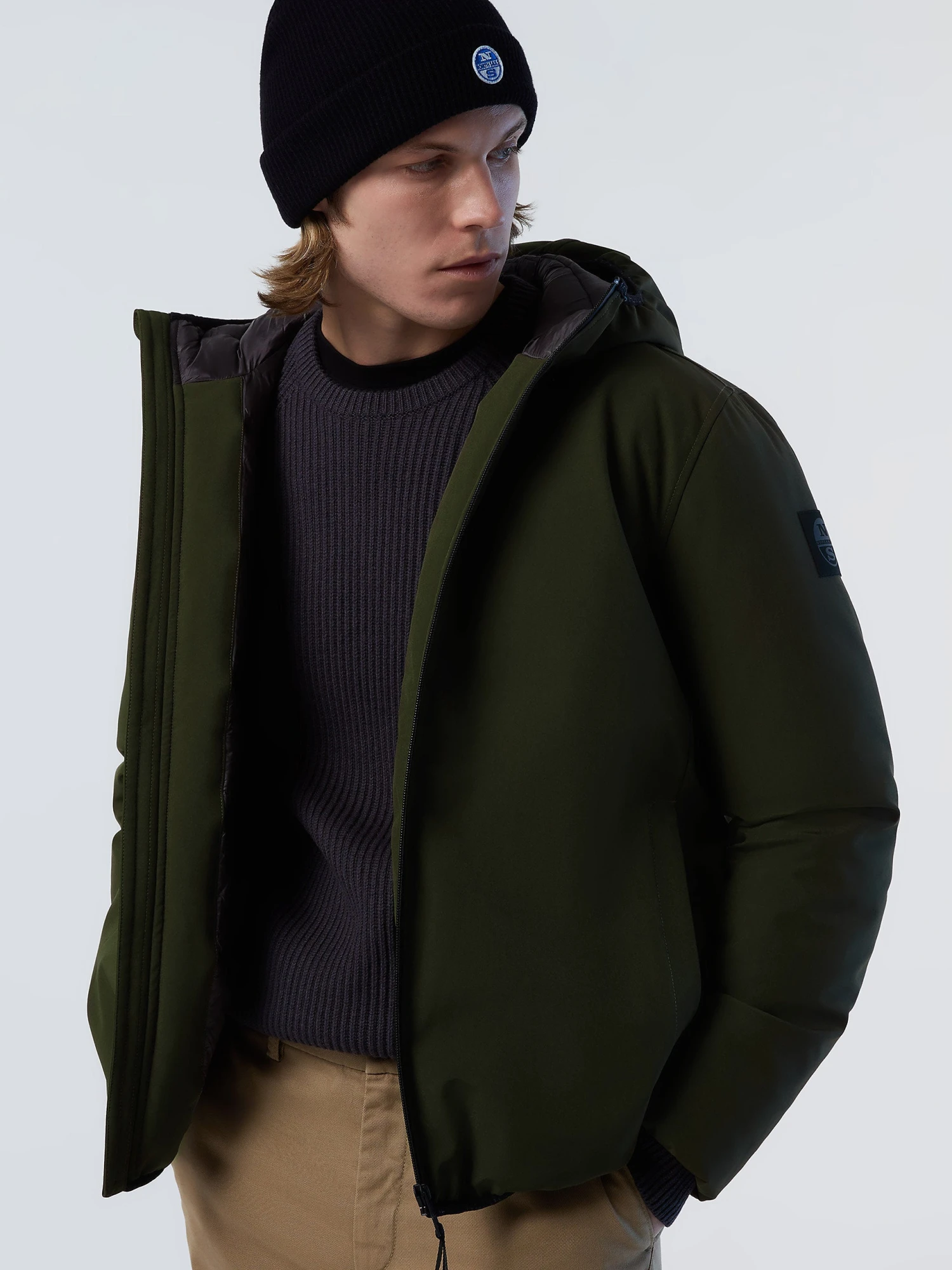 Men’s jacket made from recycled softshell with a water-repellent coating. Padded with Repreve fibers and elevated with zipper pockets.