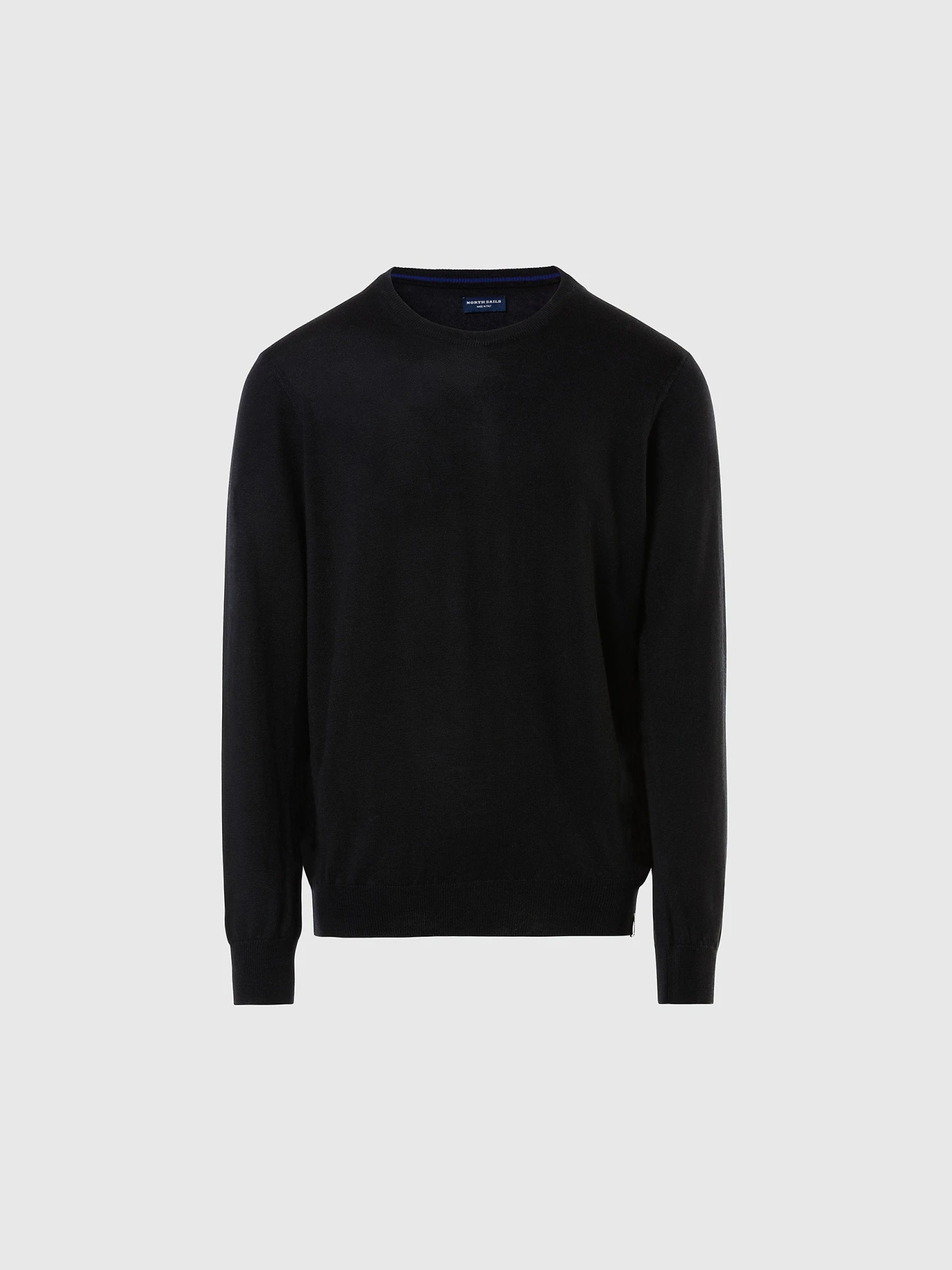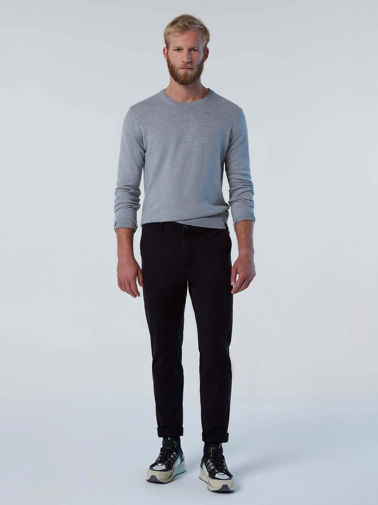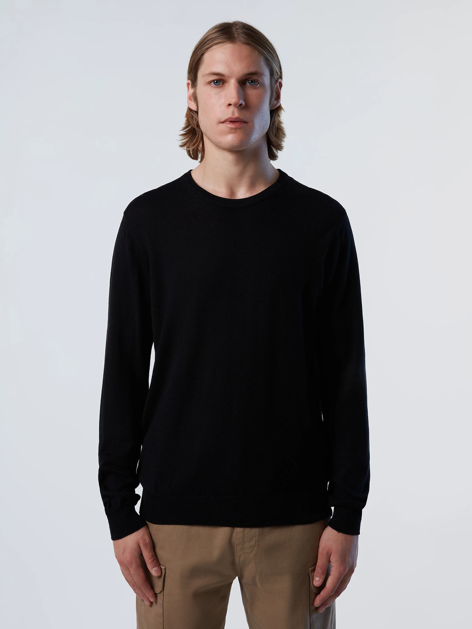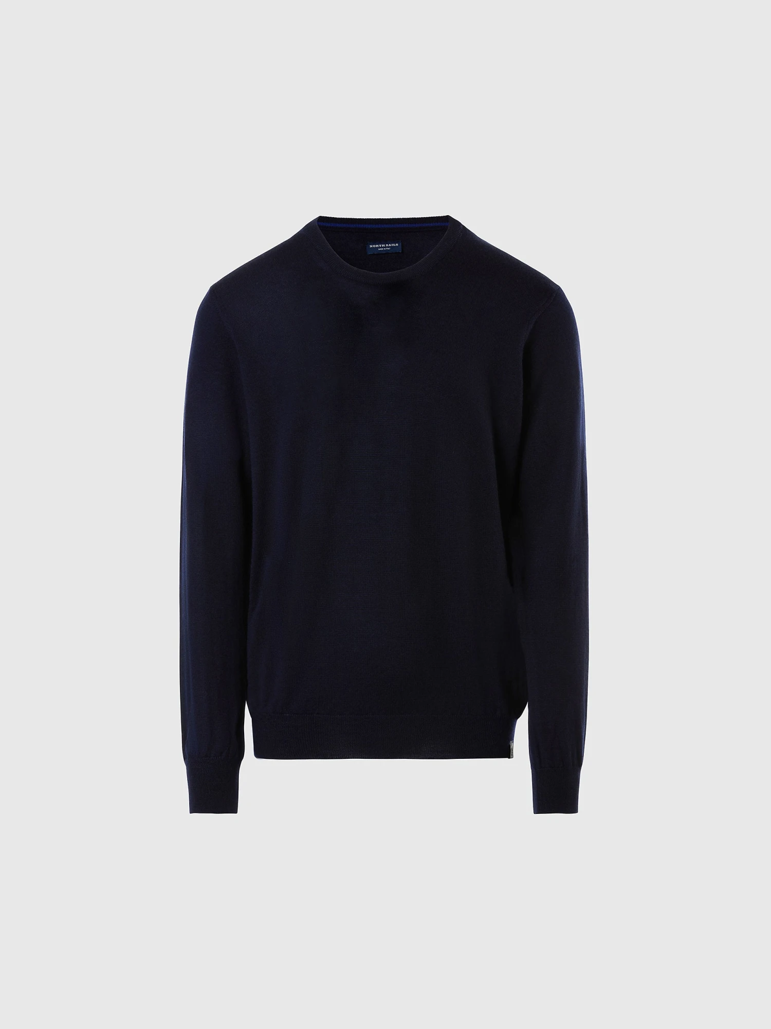 Water-resistant wool crew-neck sweater with ribbed trims. Embellished with a North Sails logo on the hem.