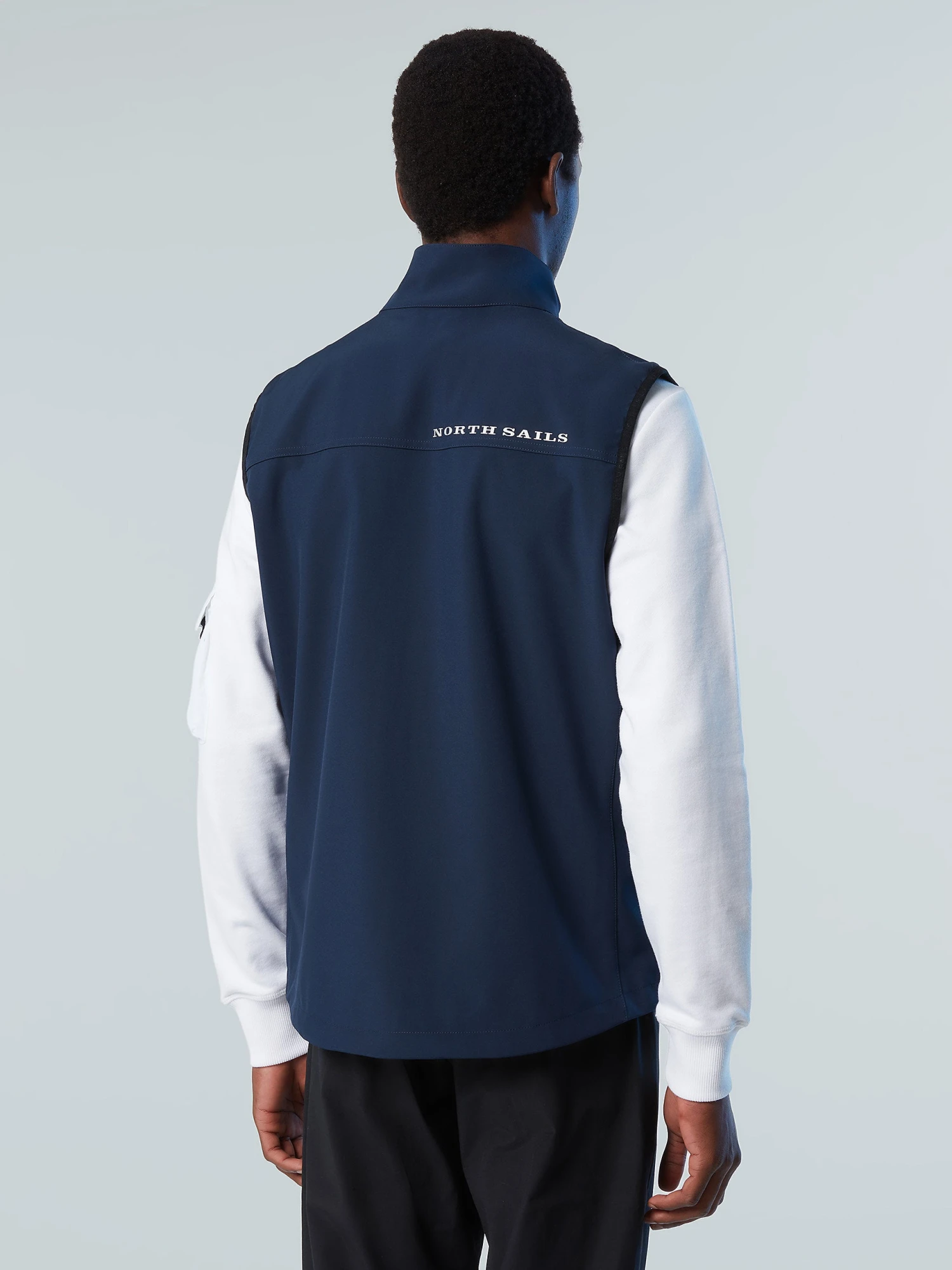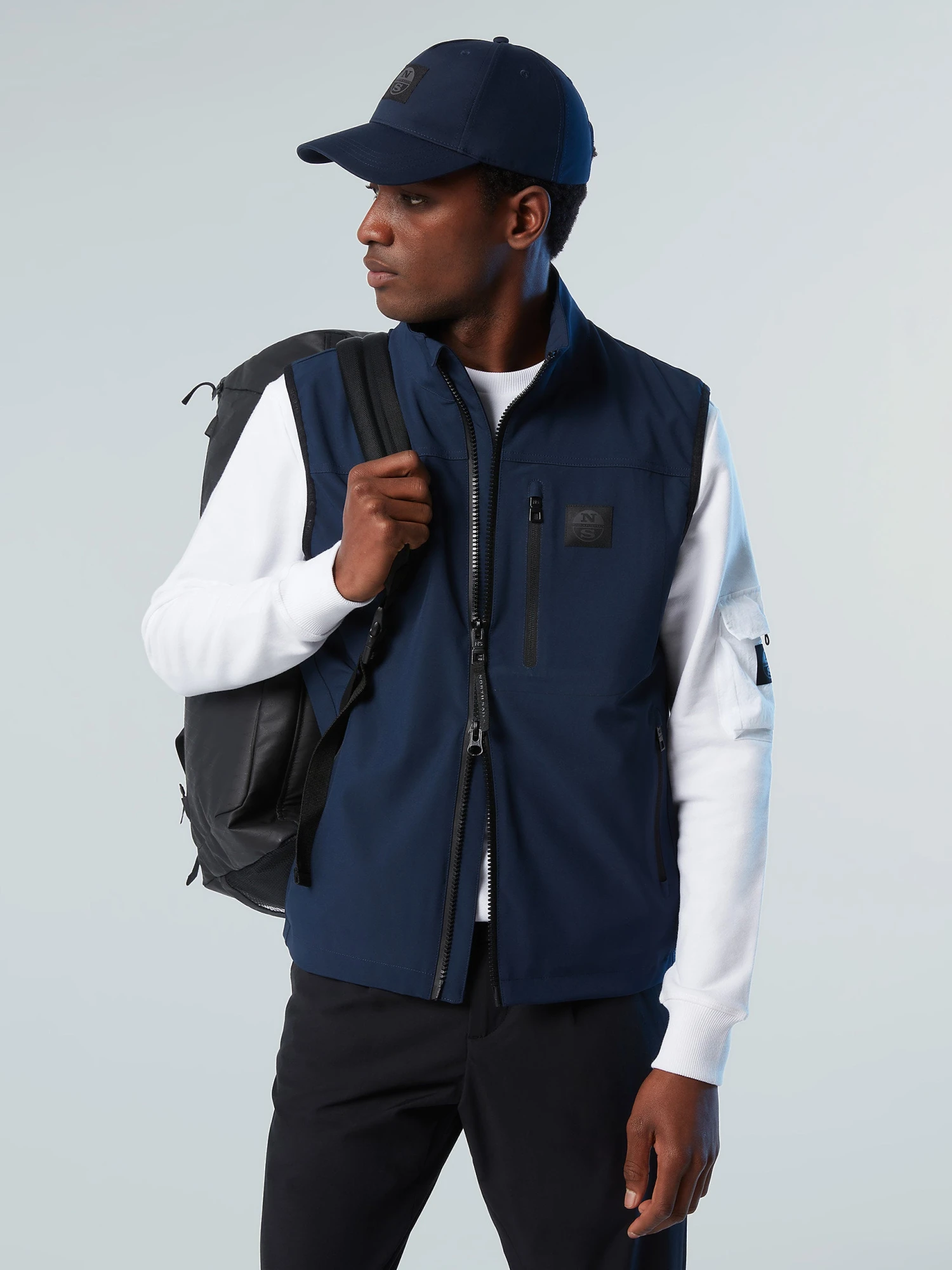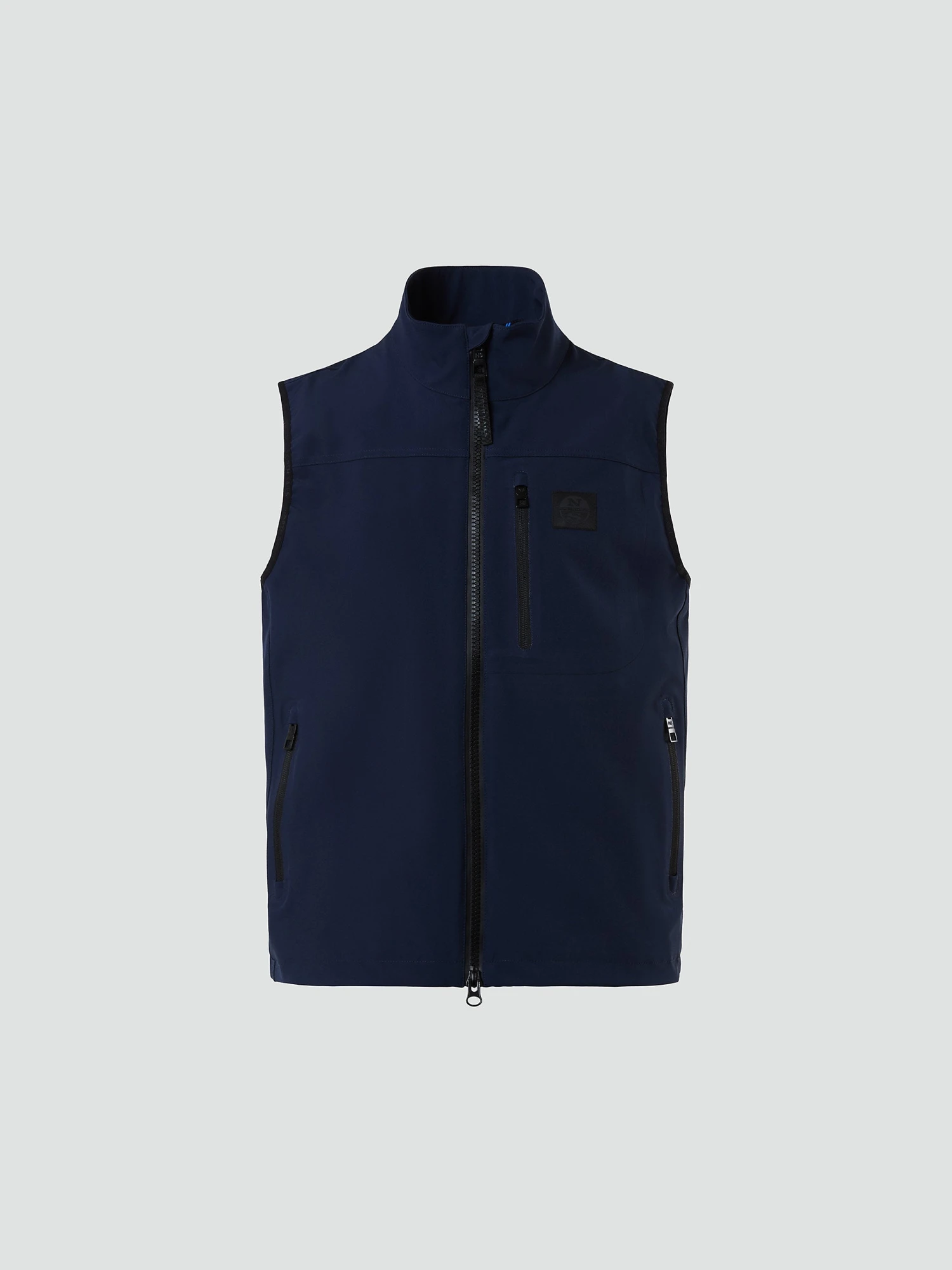 Men’s vest made from recycled softshell with a windproof and water-repellent finish. Lined in soft mesh and finished with a two-way zip closure and North Sails logo patch.