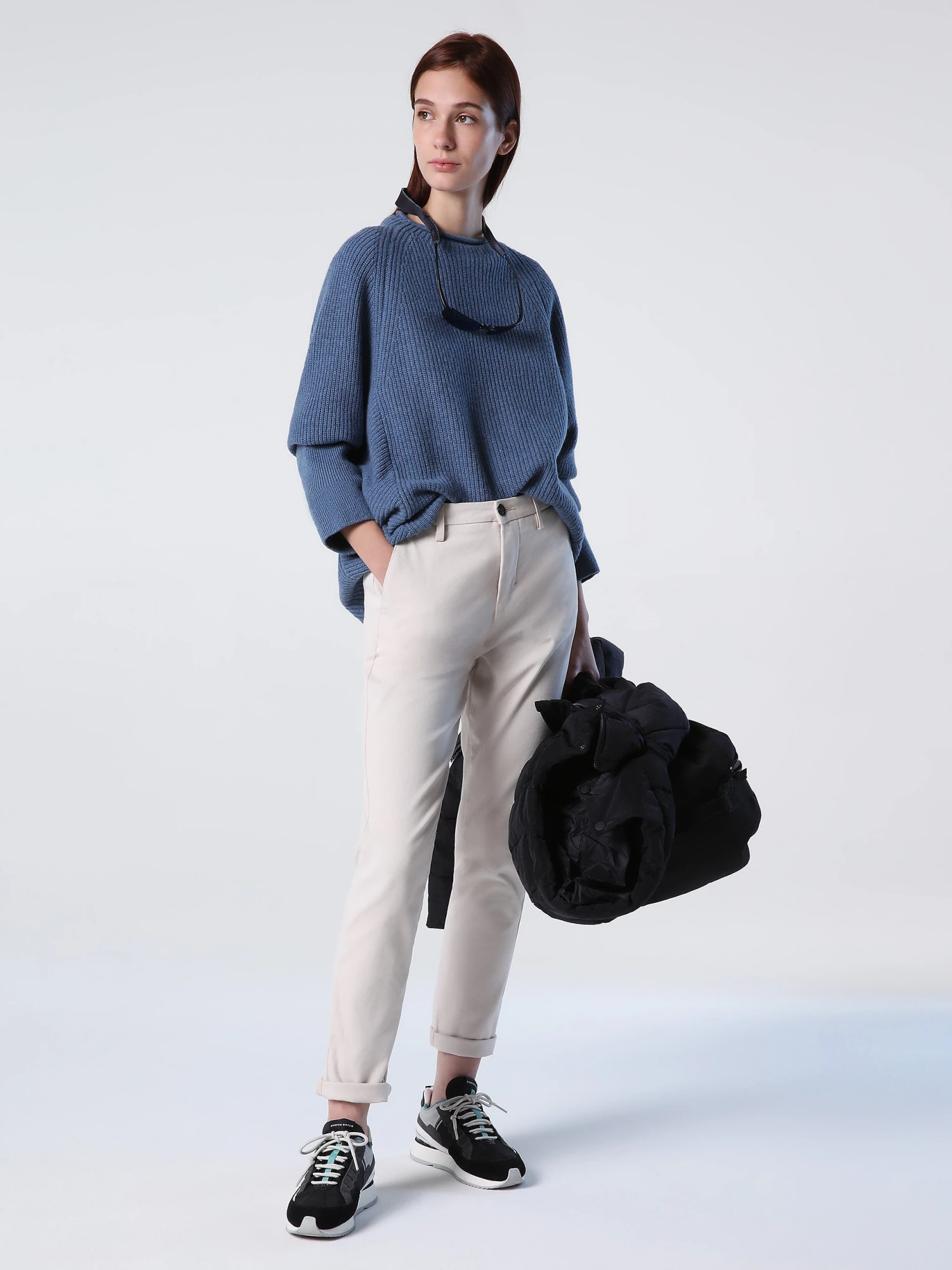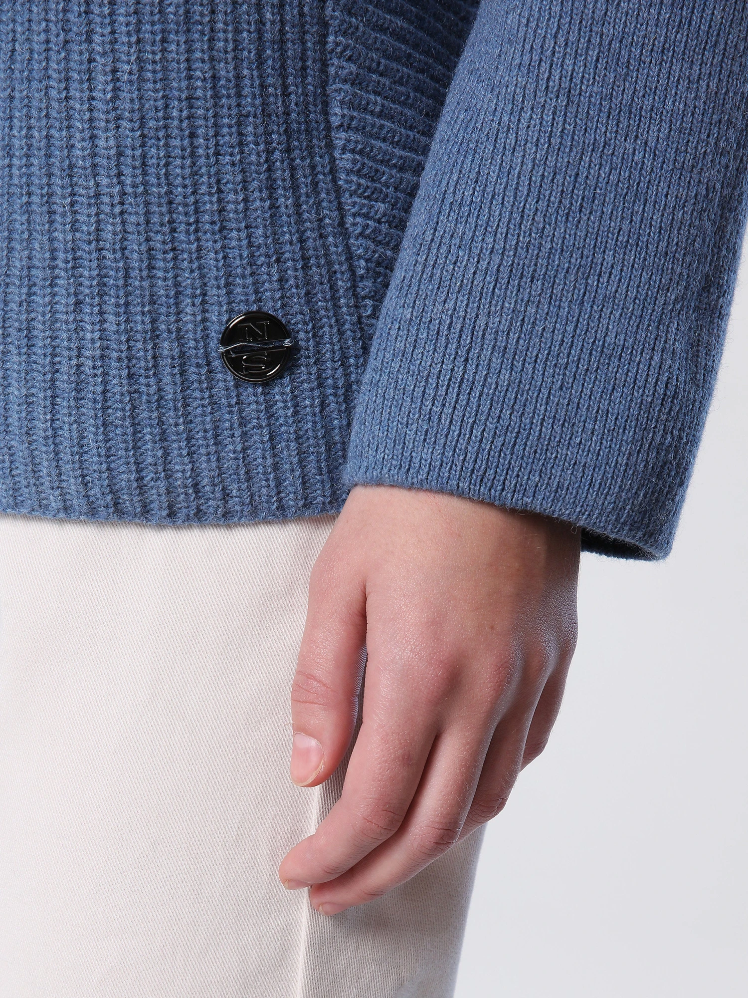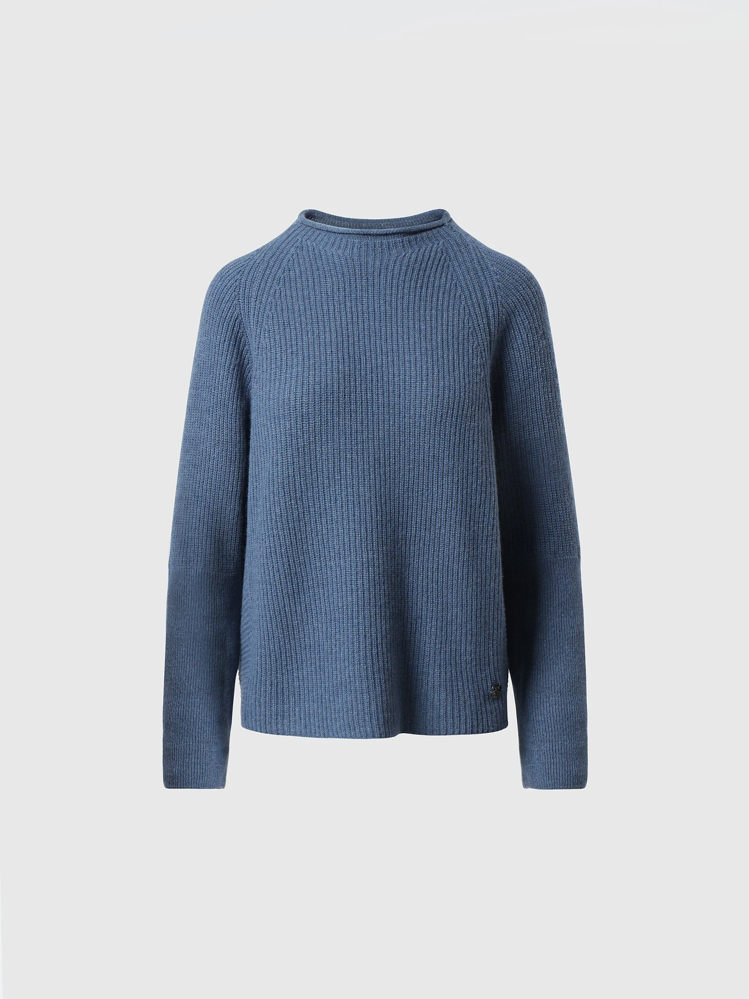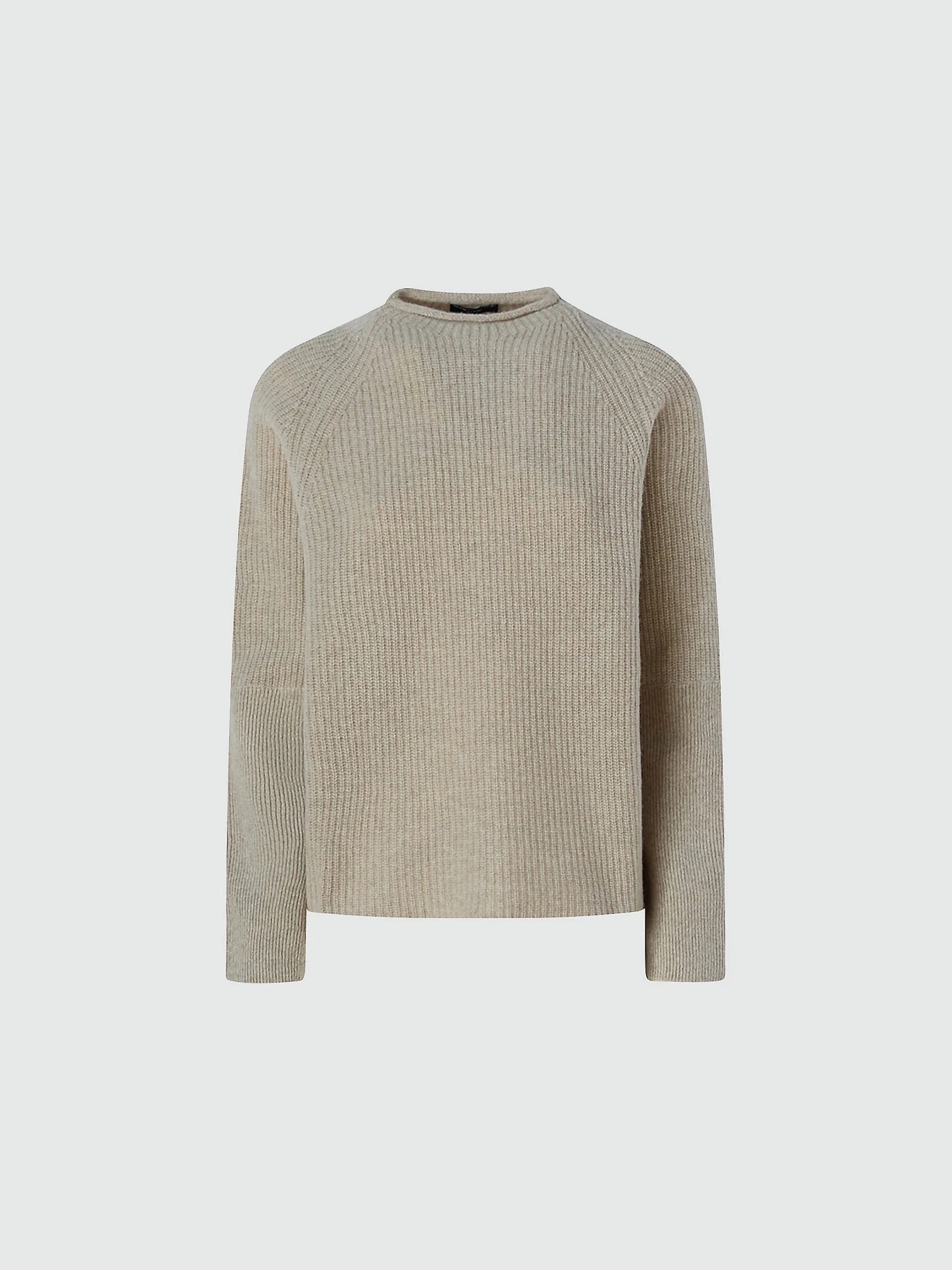 Ribbed recycled wool blend jumper. Oversized fit with rolled neck, raglan sleeves and metal North Sails logo on the hem.