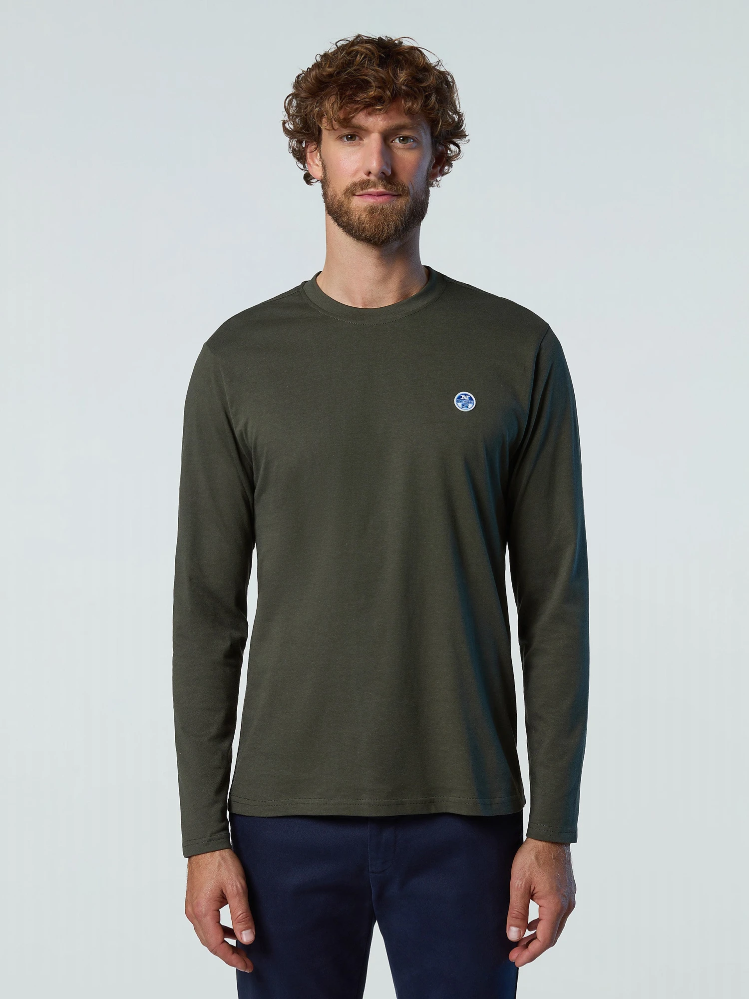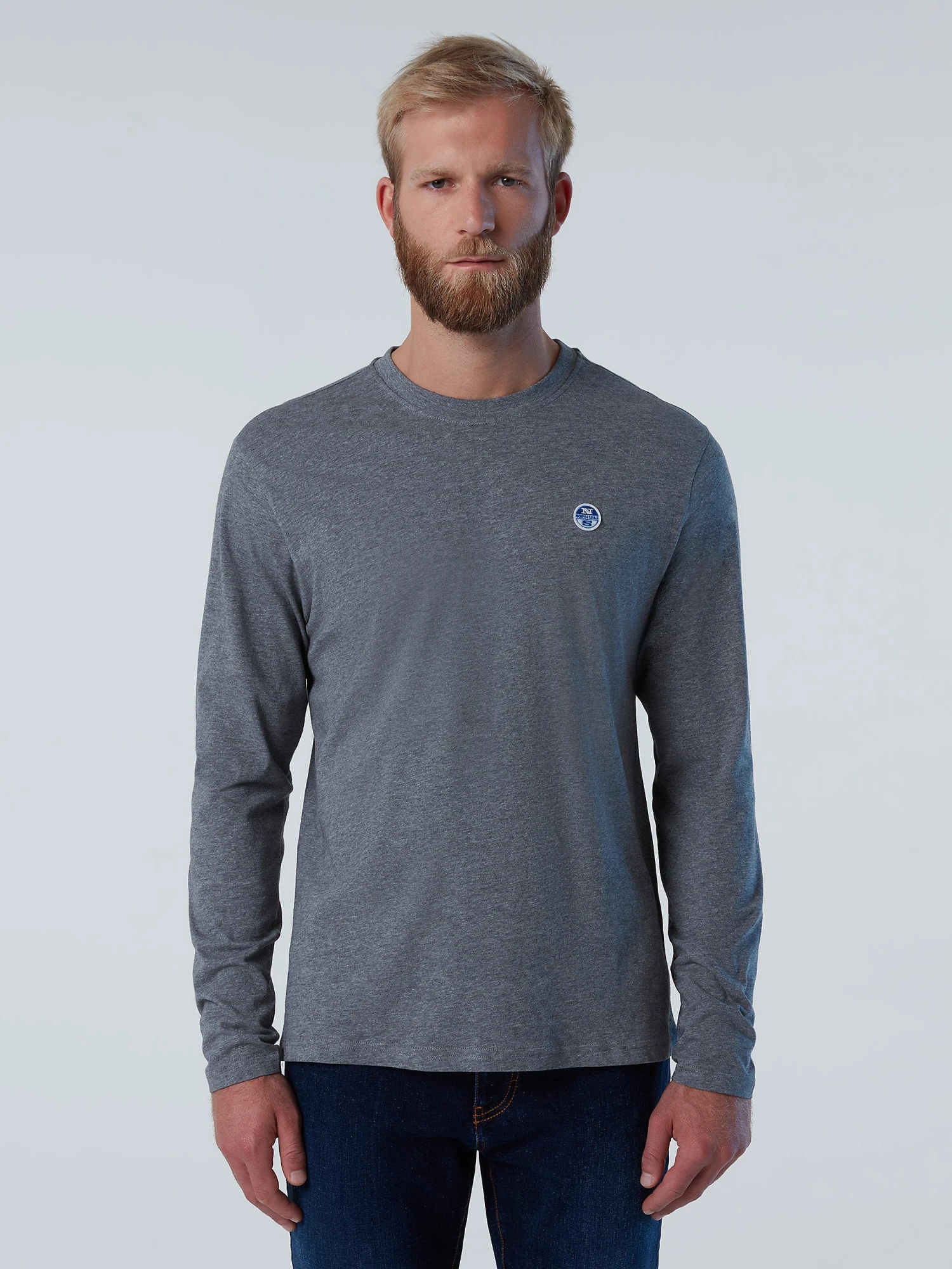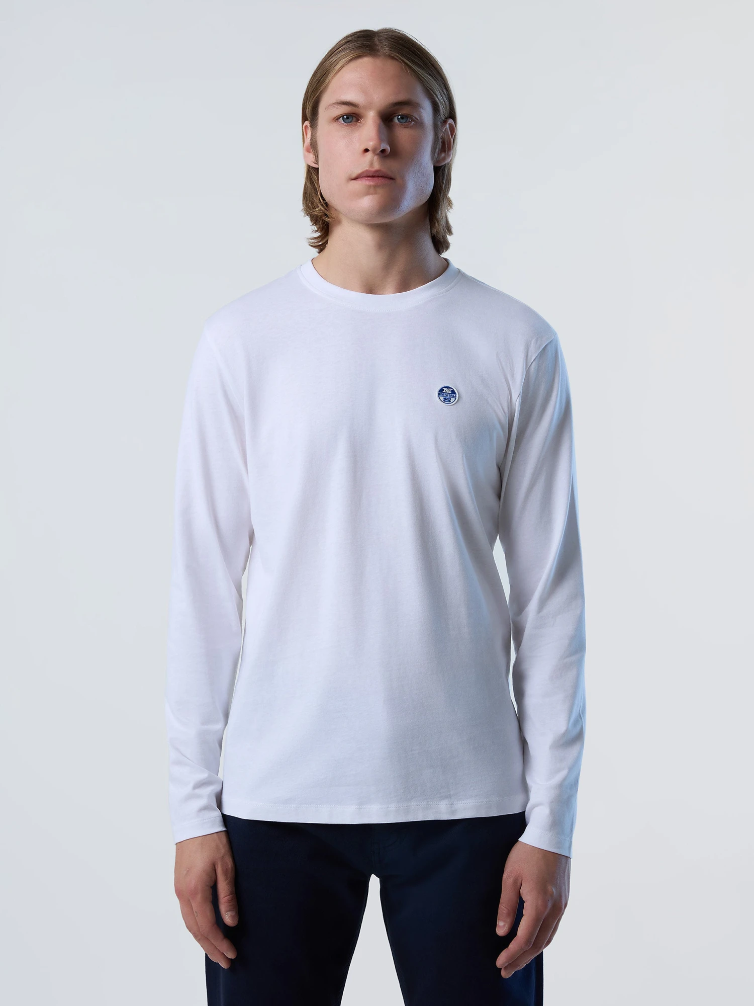 Men’s long-sleeved T-shirt made from organic cotton jersey. Embellished with a felt logo patch on the chest.