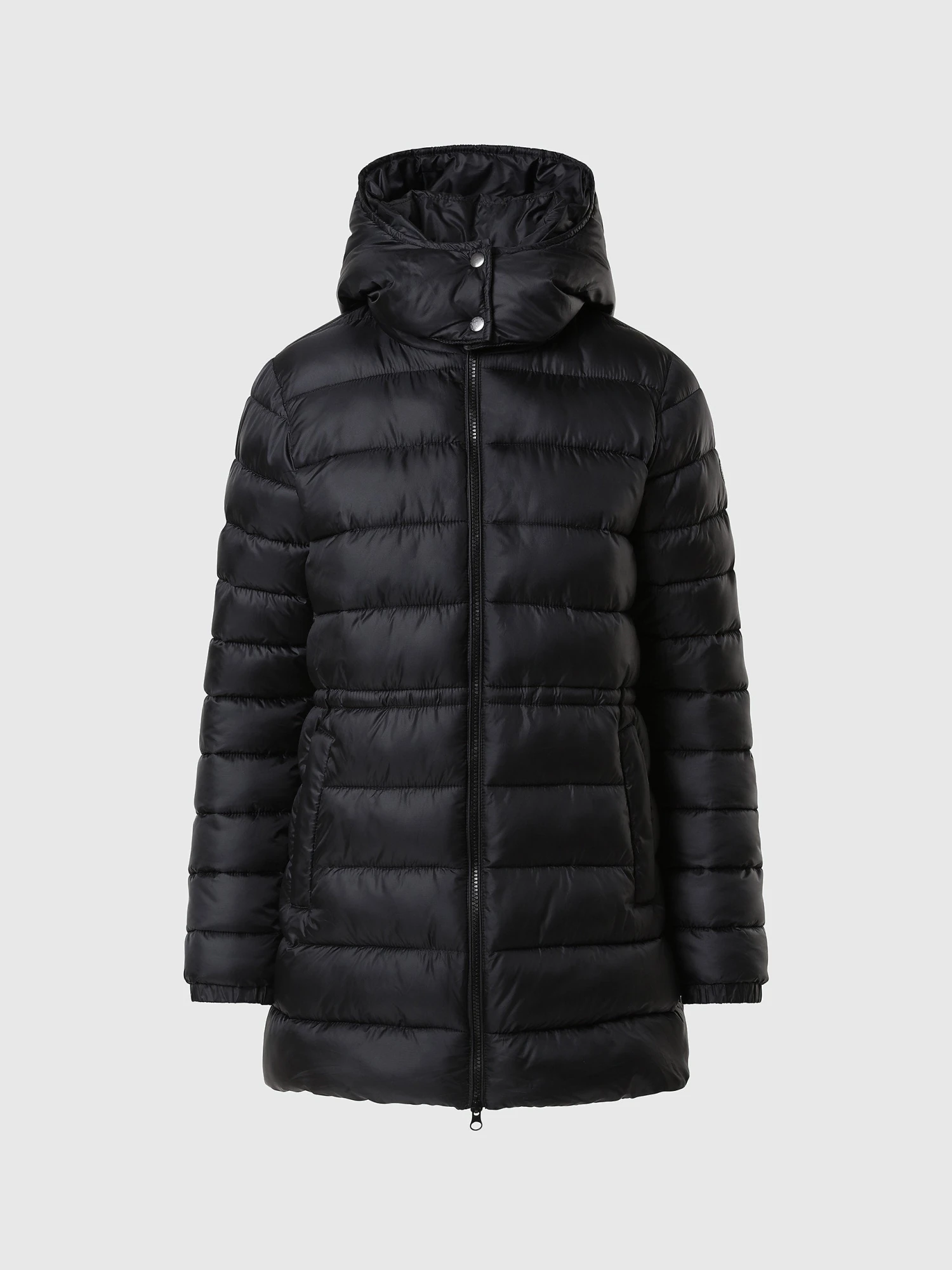 Recycled nylon micro-ripstop puffer jacket with striped quilting. Distinguished by a cosy hood, drawstring waist and reflective North Sails logo on the sleeve.