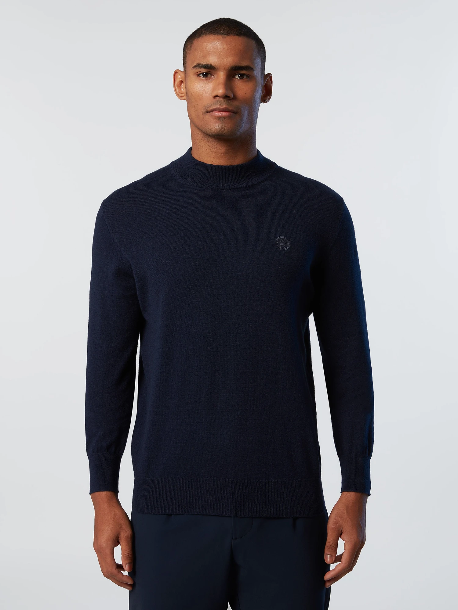 Men’s mock-neck sweater made from a wool and organic cotton blend. Embellished with an embroidered North Sails logo on the chest.