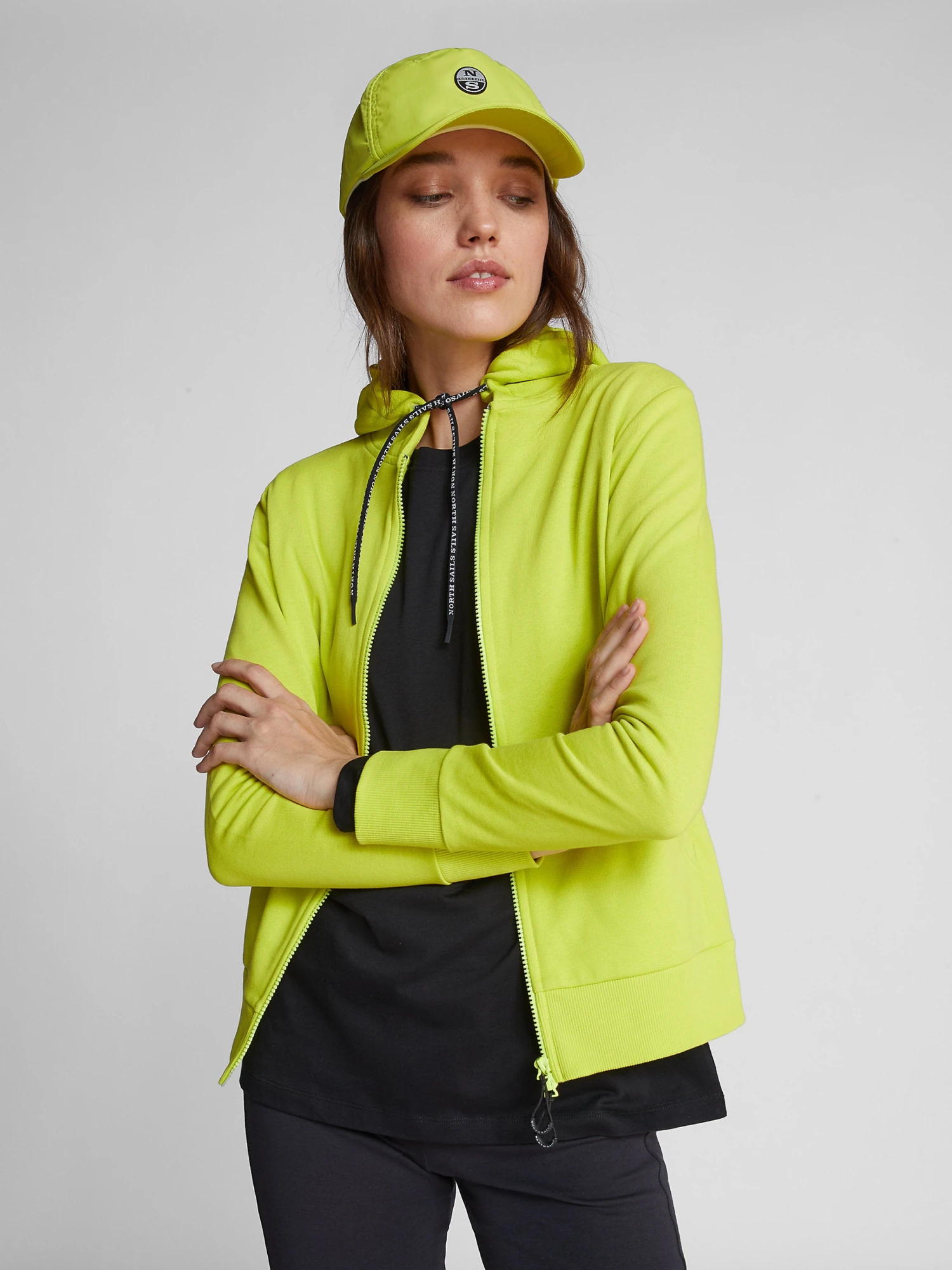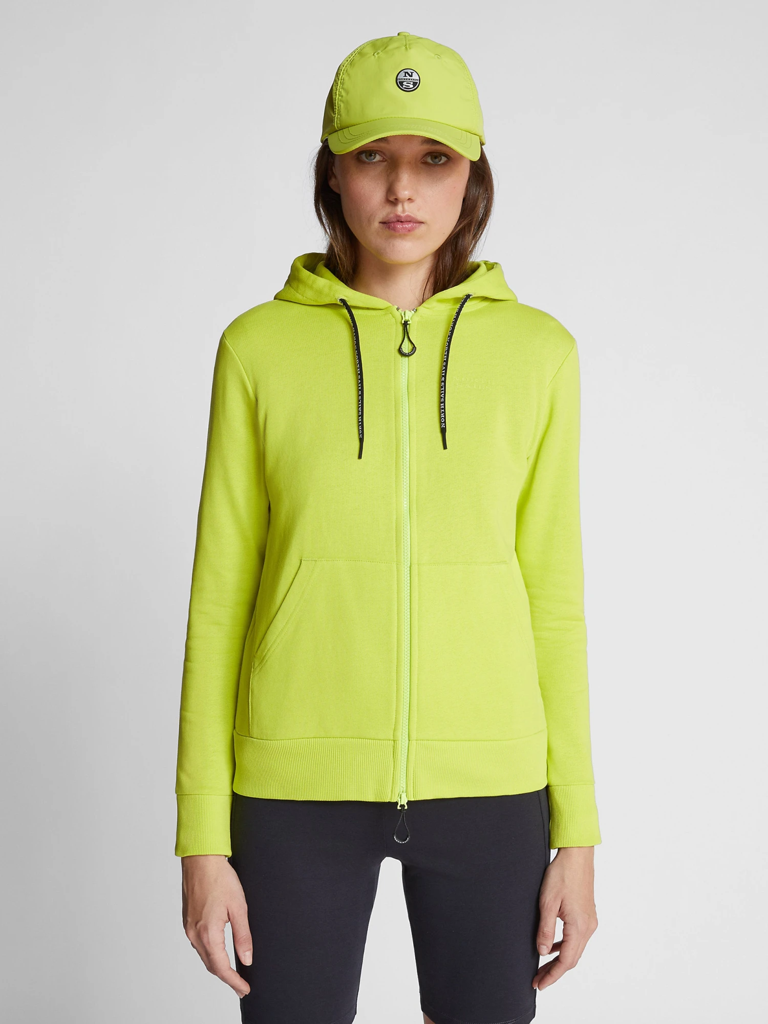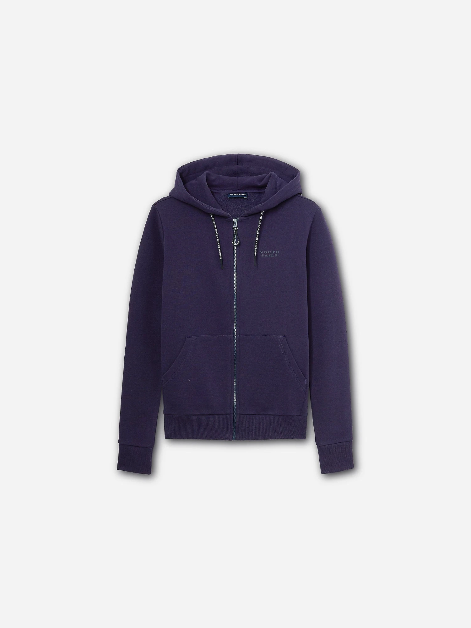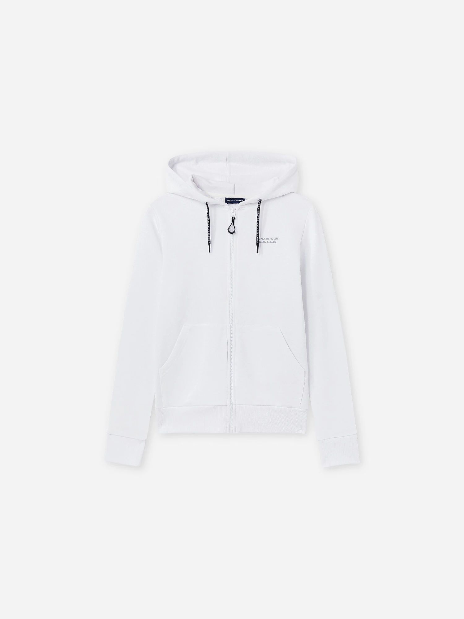 Organic cotton fleece hoodie. Finished with a drawstring hood, kangaroo pockets and zip fastening. Printed North Sails lettering on the chest and back.