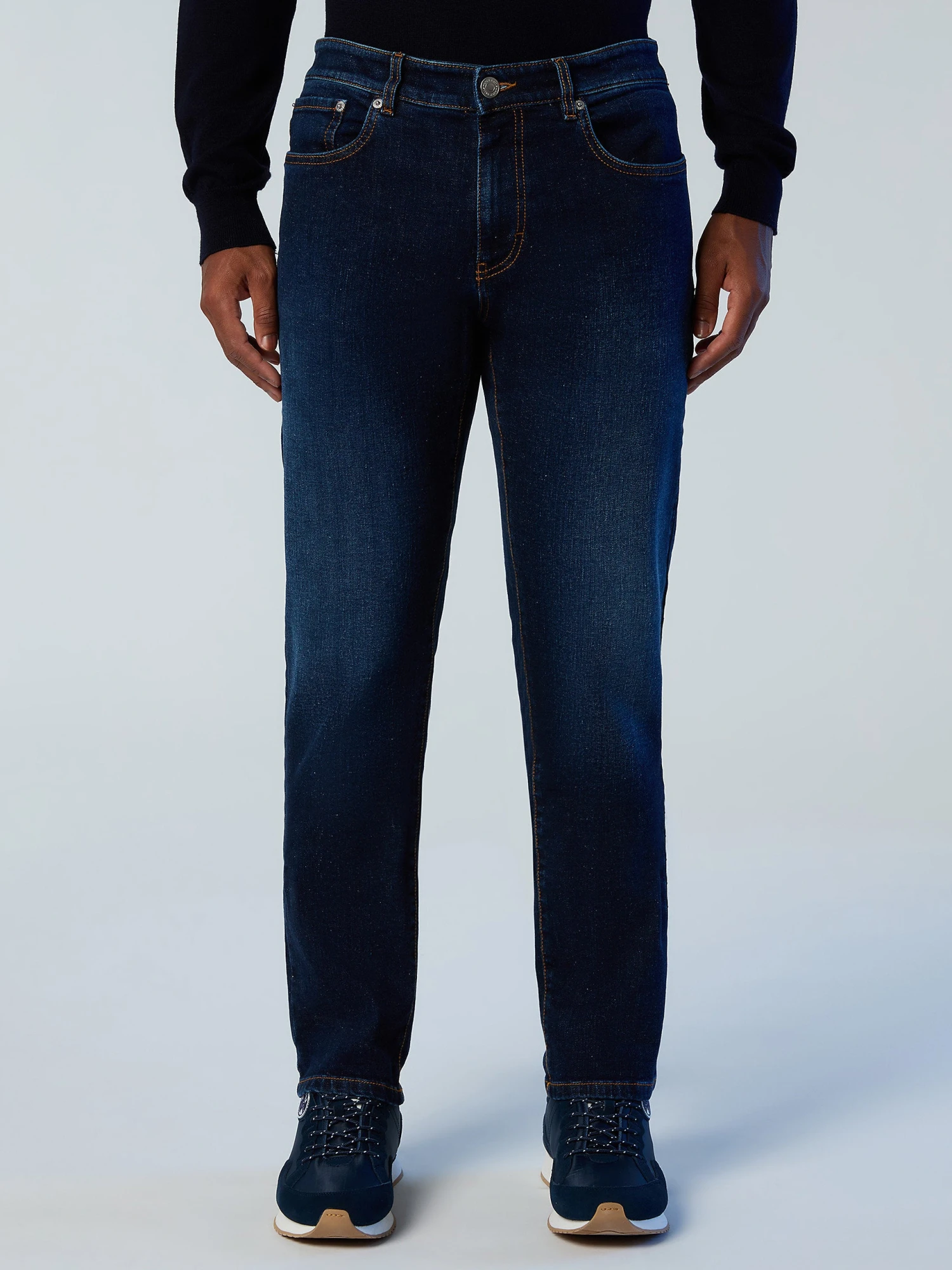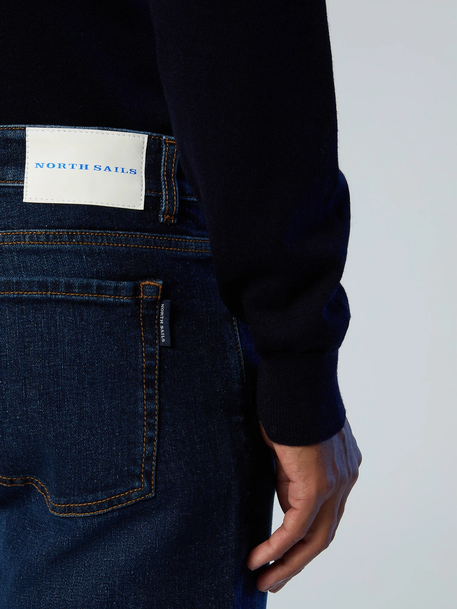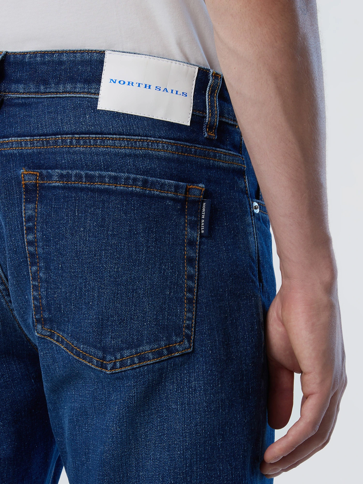 Men’s 5-pocket jeans made from stretch recycled denim. Mid rise and straight leg, embellished with a North Sails patch on the back waist.