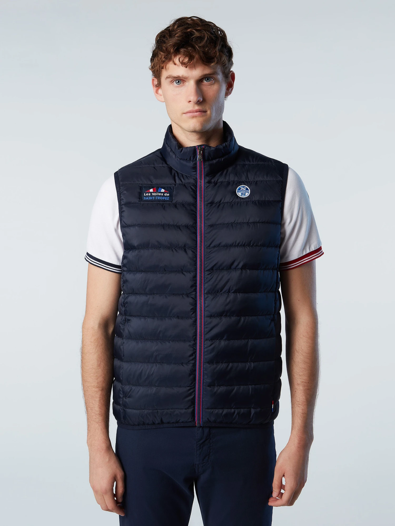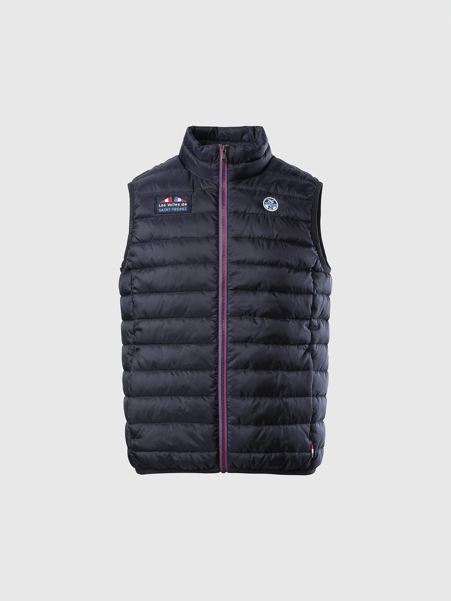 Men’s padded vest crafted from recycled micro-ripstop with a water-resistant coating. Part of the Les Voiles de Saint-Tropez capsule collection.