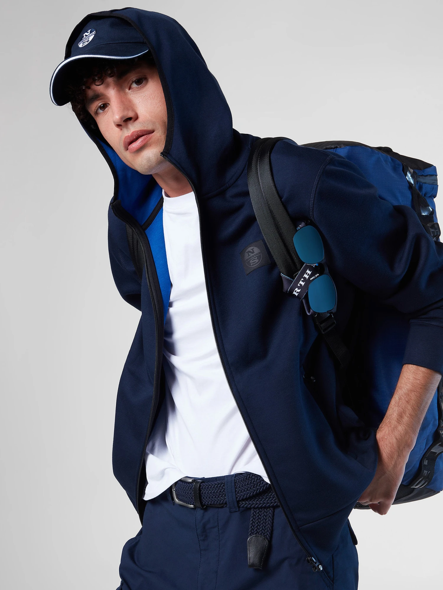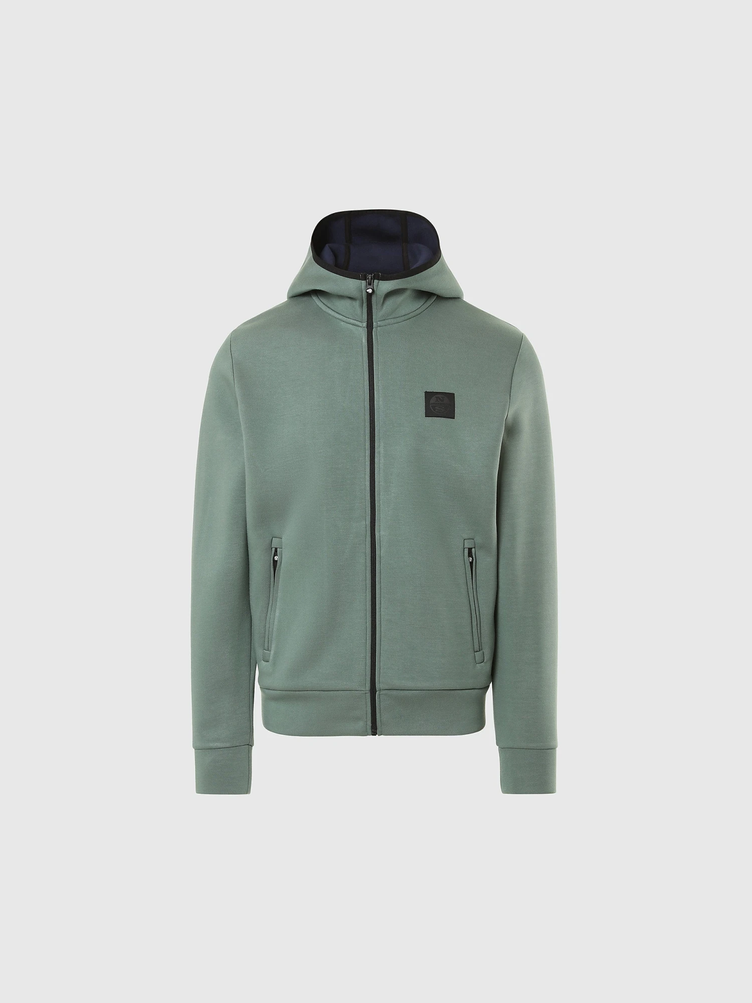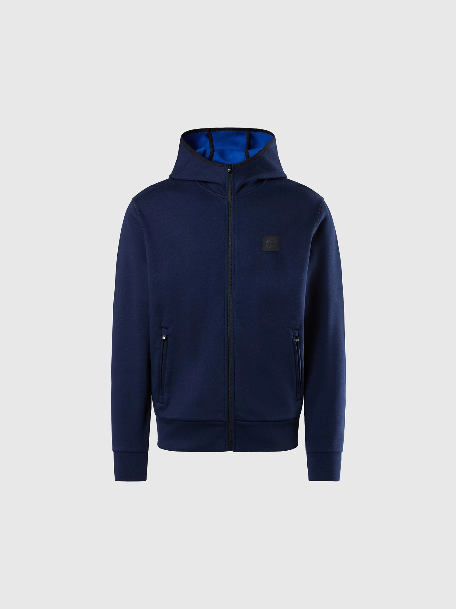 Men’s full-zip hoodie made from scuba fleece with a contrast reverse, featuring a lycra trim on the hood and handy zip pockets. Embellished with a square logo patch.