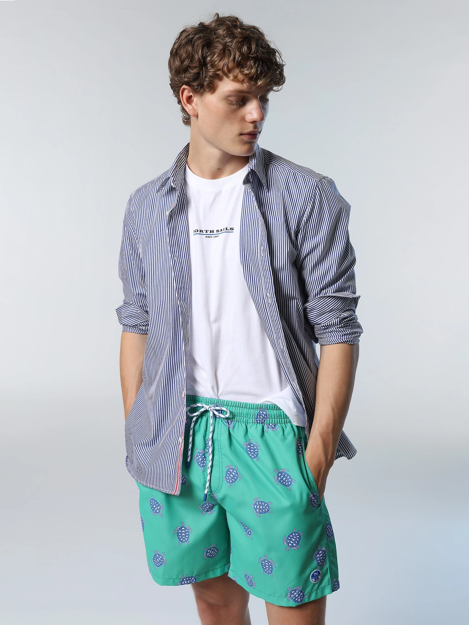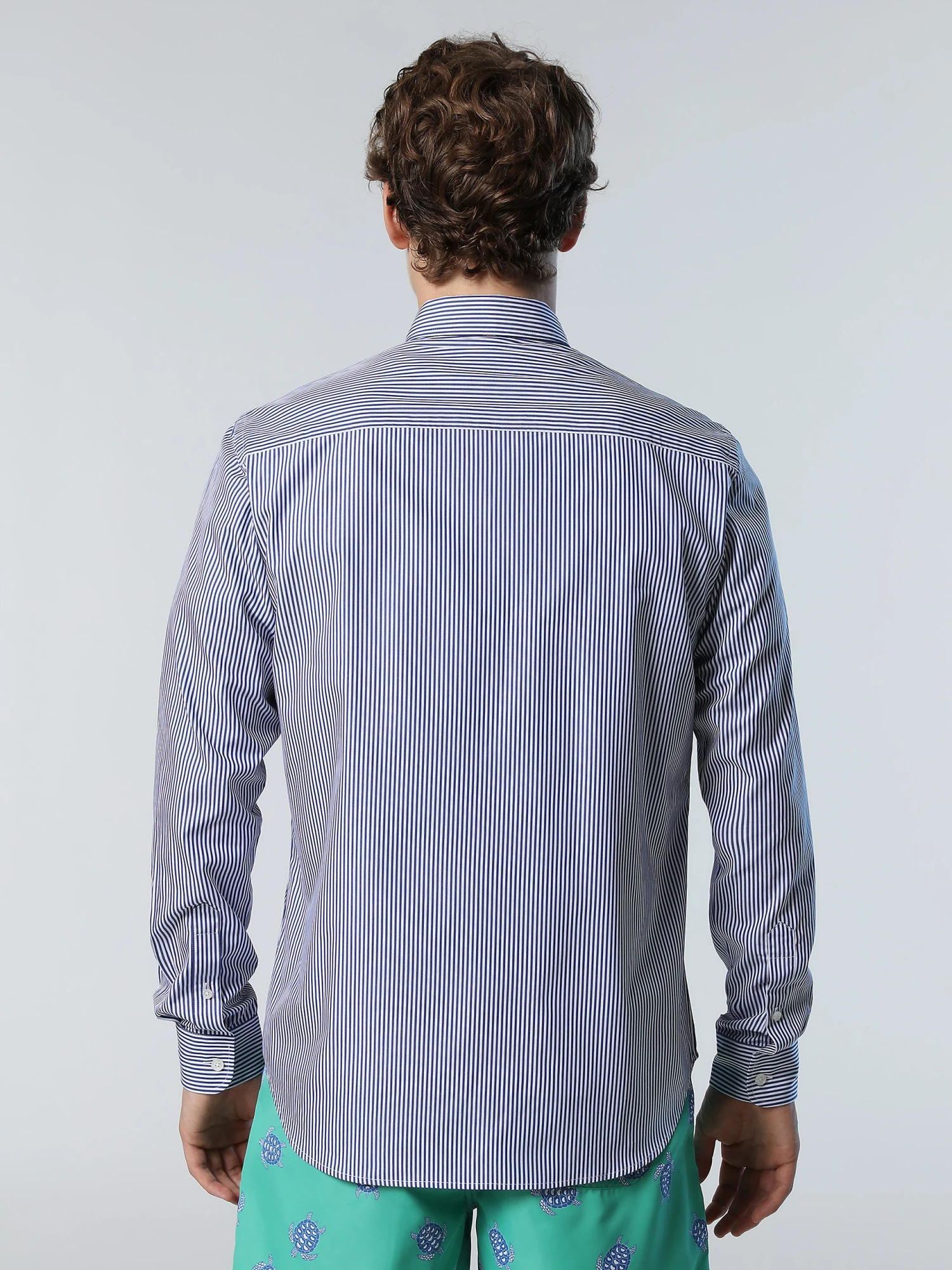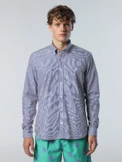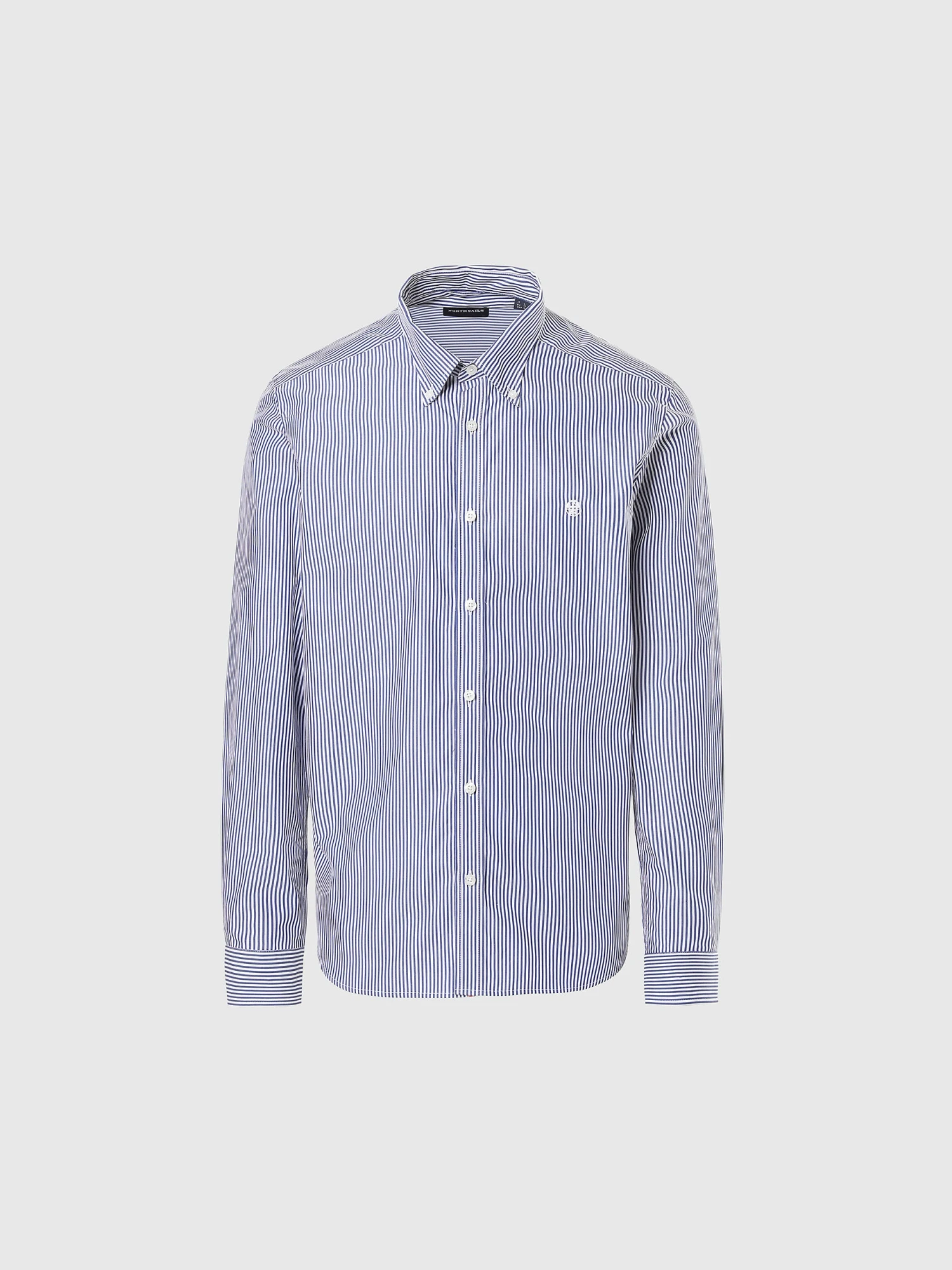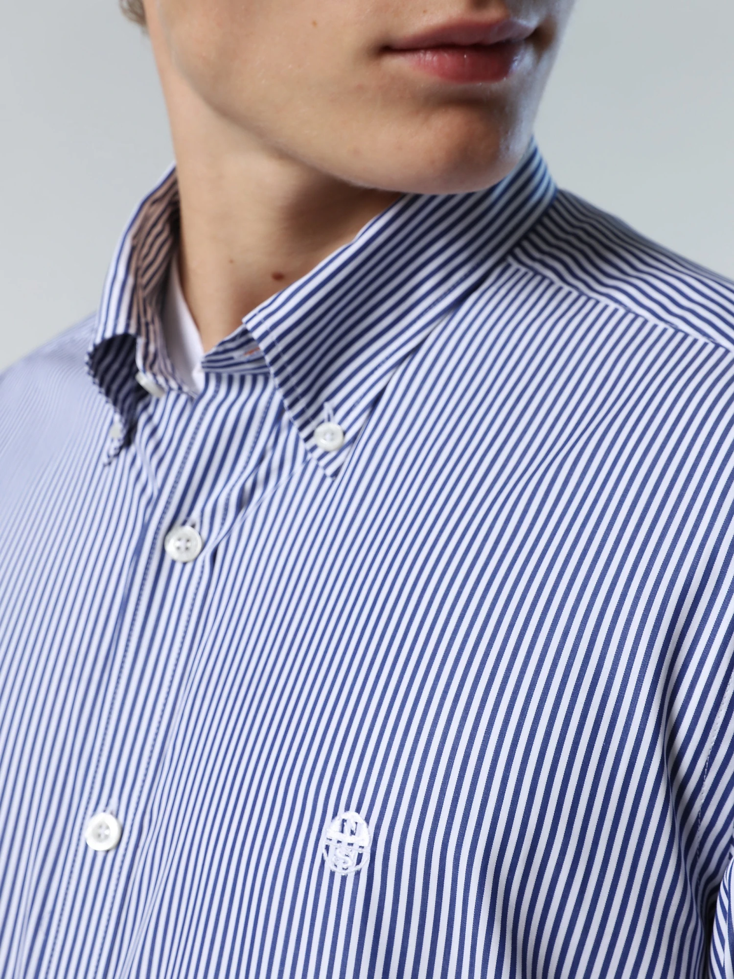 Men’s cotton shirt with rounded hem and button-down collar. Detailed with a contrast stripe on the inner placket and an embroidered logo on the chest.
