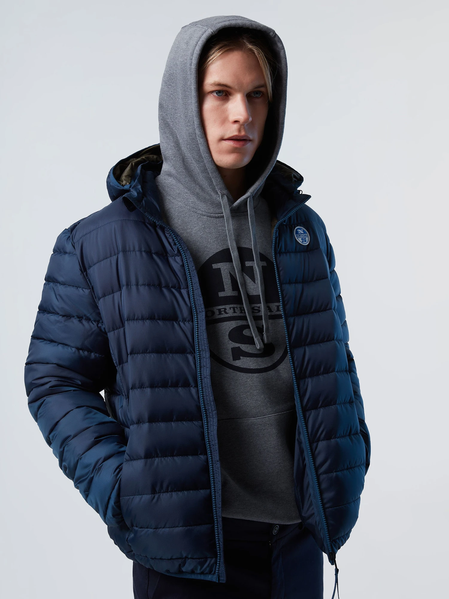 Men’s high-neck vest crafted from recycled micro-ripstop fabric with a water-repellent coating. Filled with Repreve padding: an innovative fiber made from recycled plastic bottles.