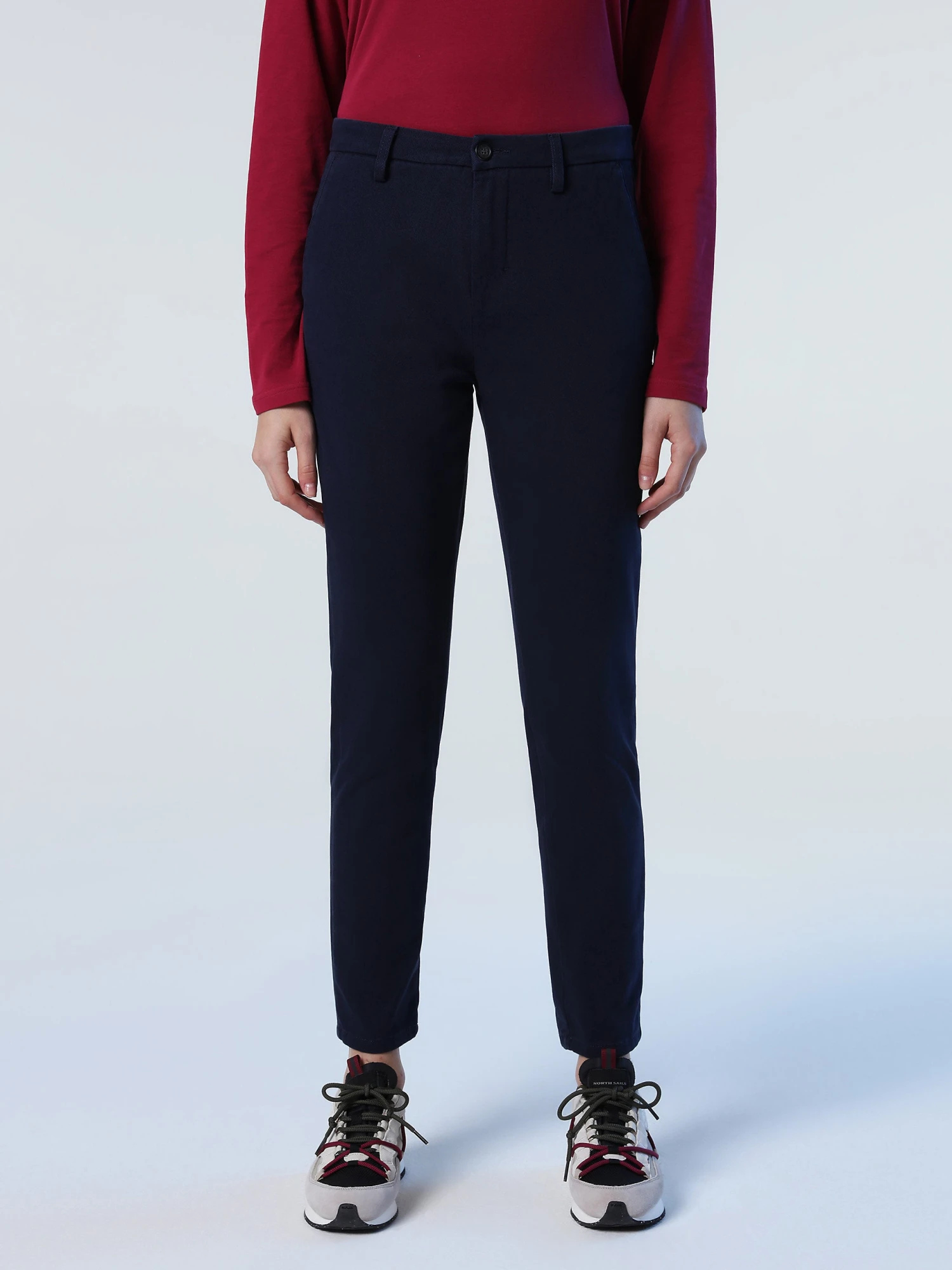 Slim-fit chinos made from organic cotton gabardine. Cigarette cut with handy pockets and a reflective tag on the side.
