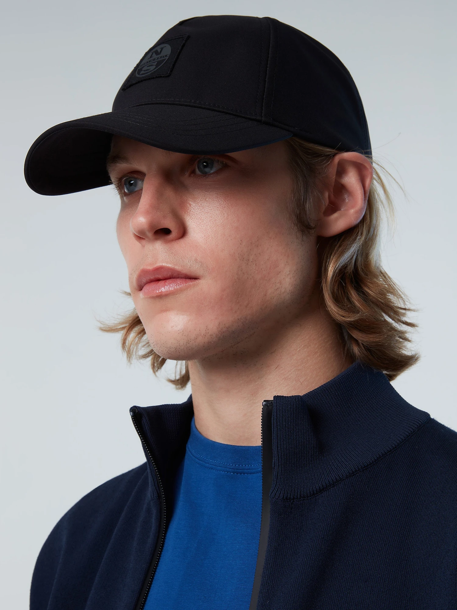 Men’s baseball cap made from recycled softshell. Embellished with a North Tech patch on the front.