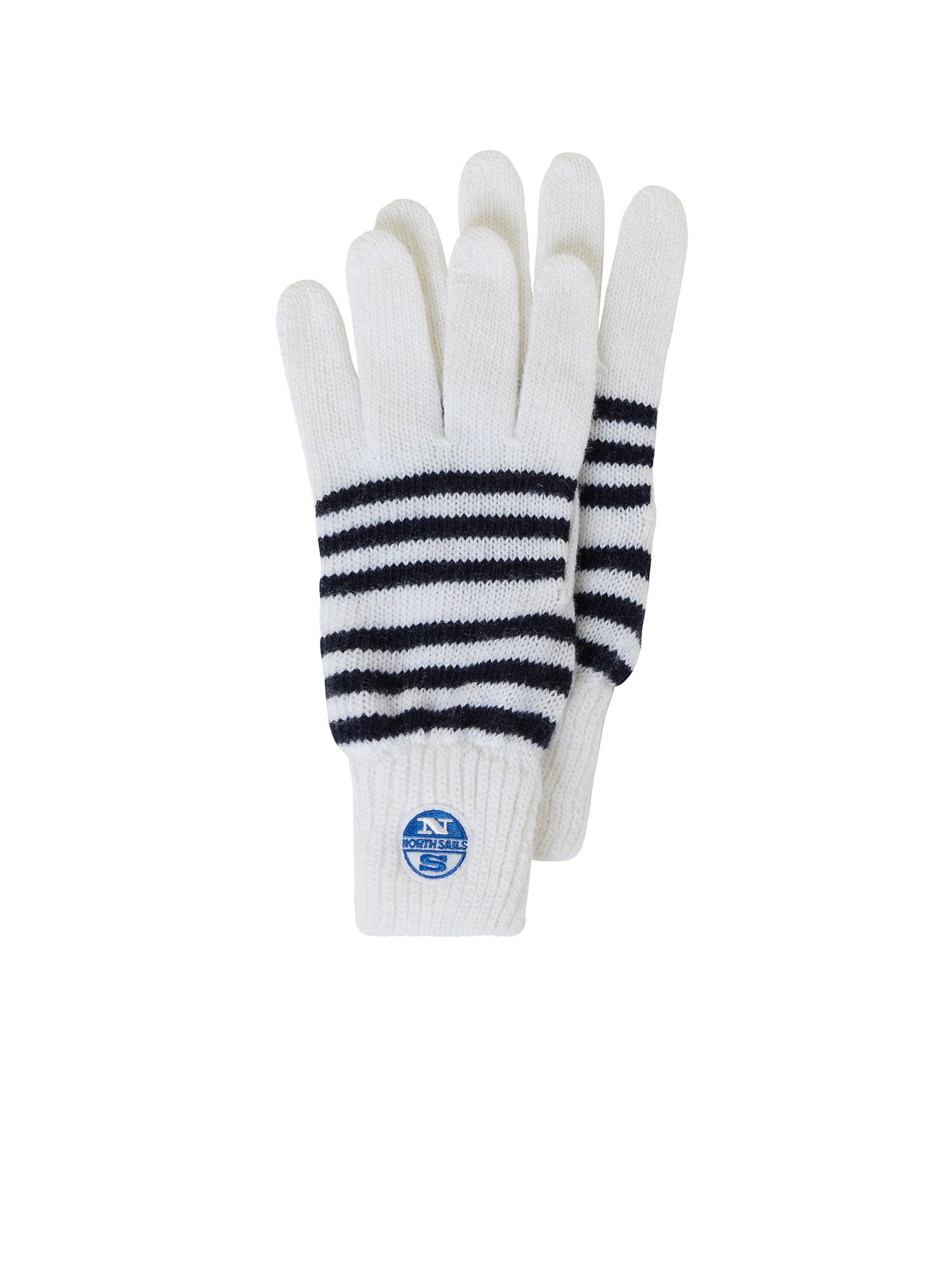 Women’s striped gloves knitted from a recycled cashmere blend. Detailed with a logo patch on the cuff.