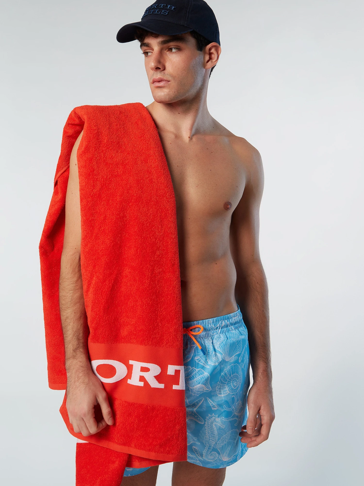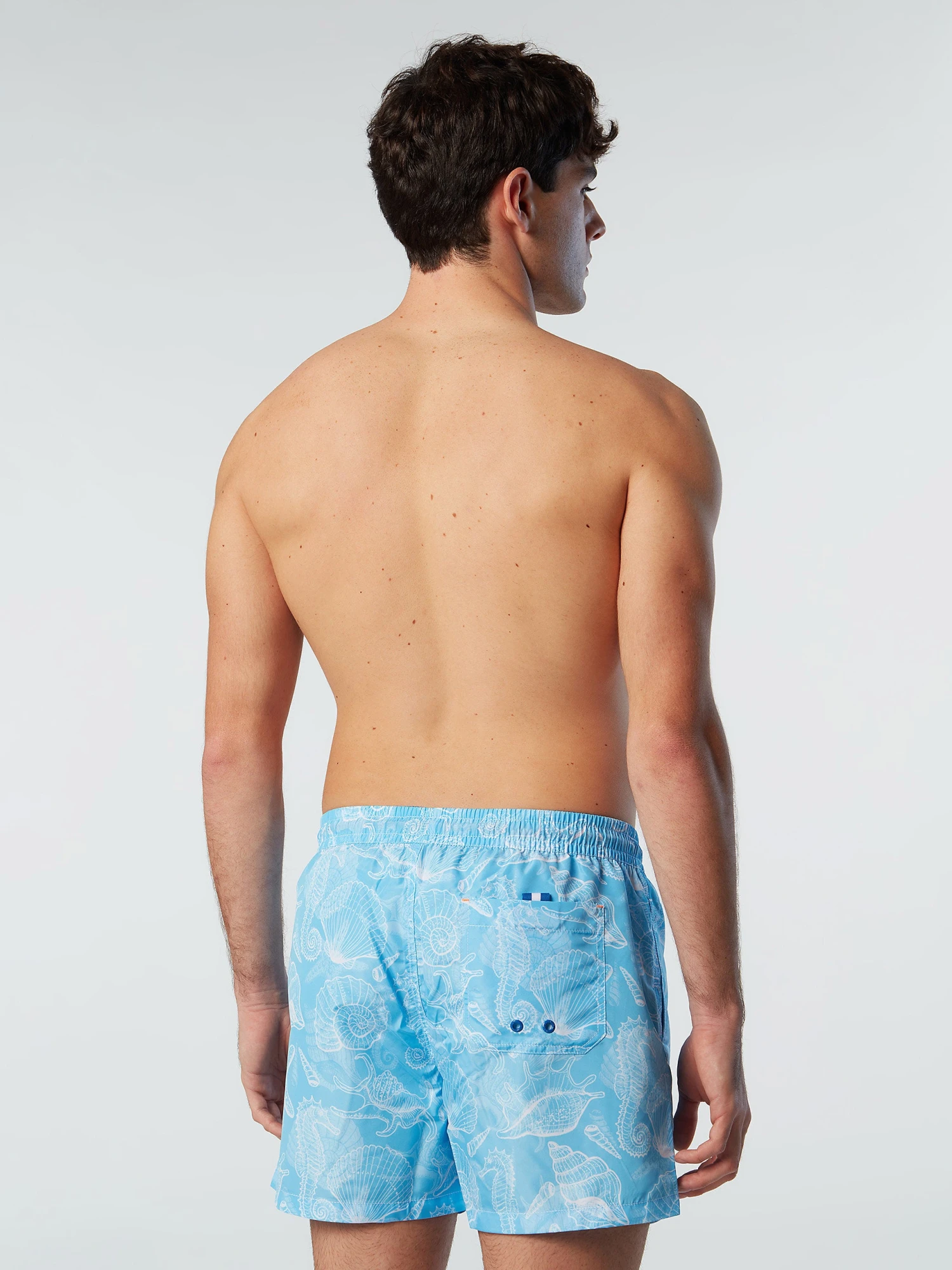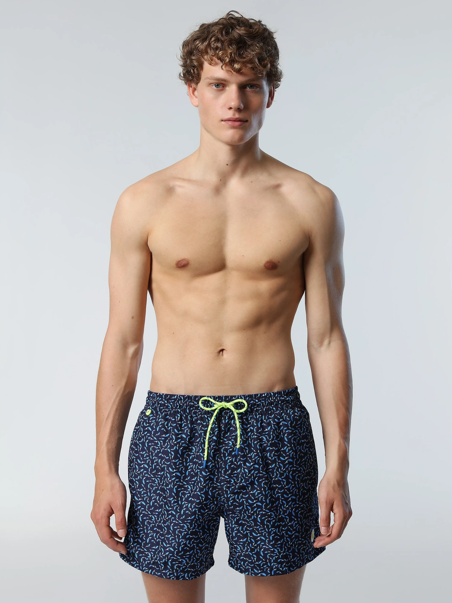 Swim shorts made from Repreve with an all-over ocean-inspired print. Embellished with a neon drawstring and logo patch.