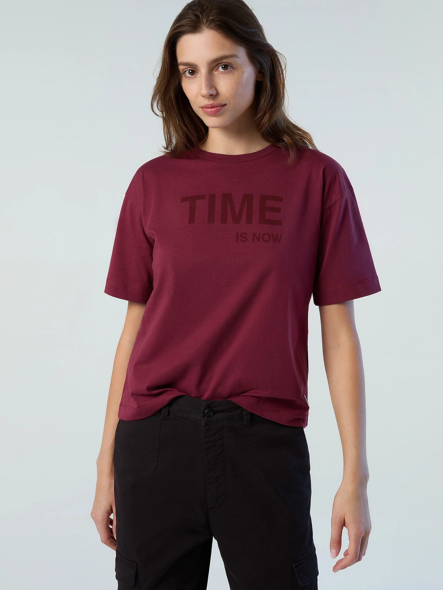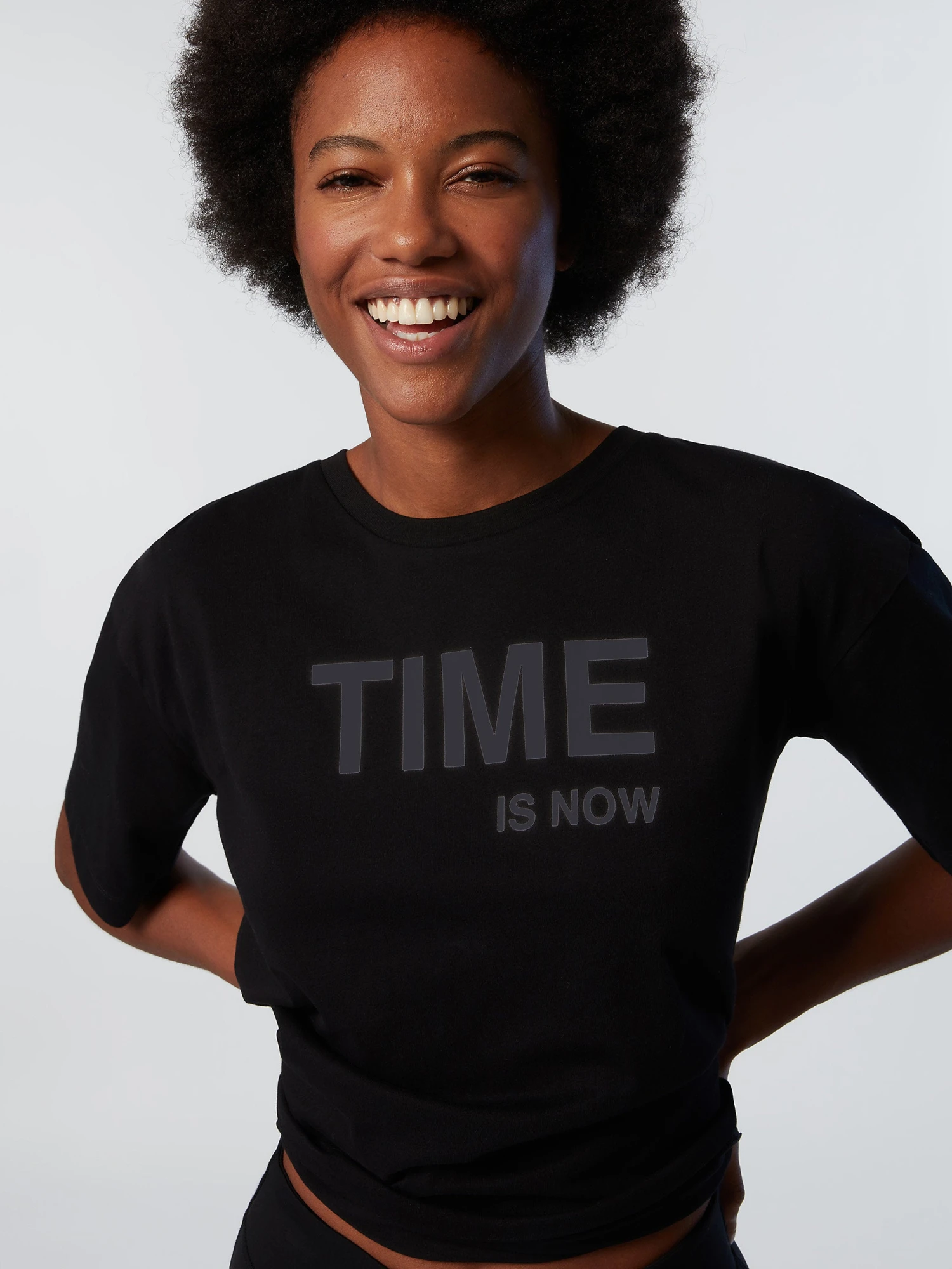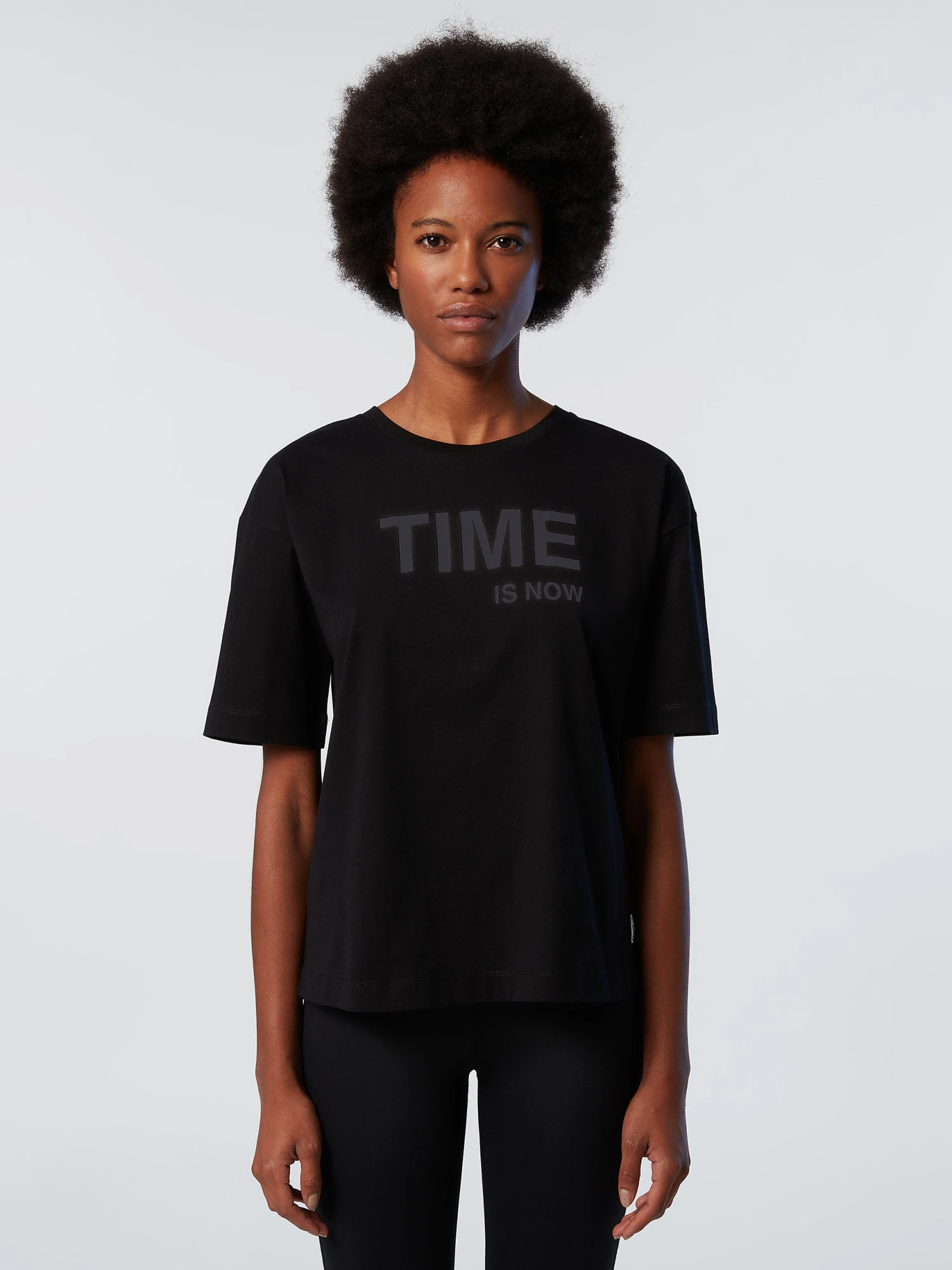 Women’s T-shirt made from organic cotton jersey. Styled with a boxy fit and embellished with slogan prints on the chest and sleeve.