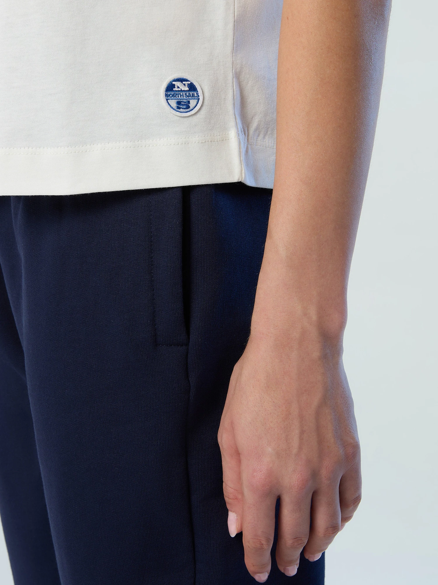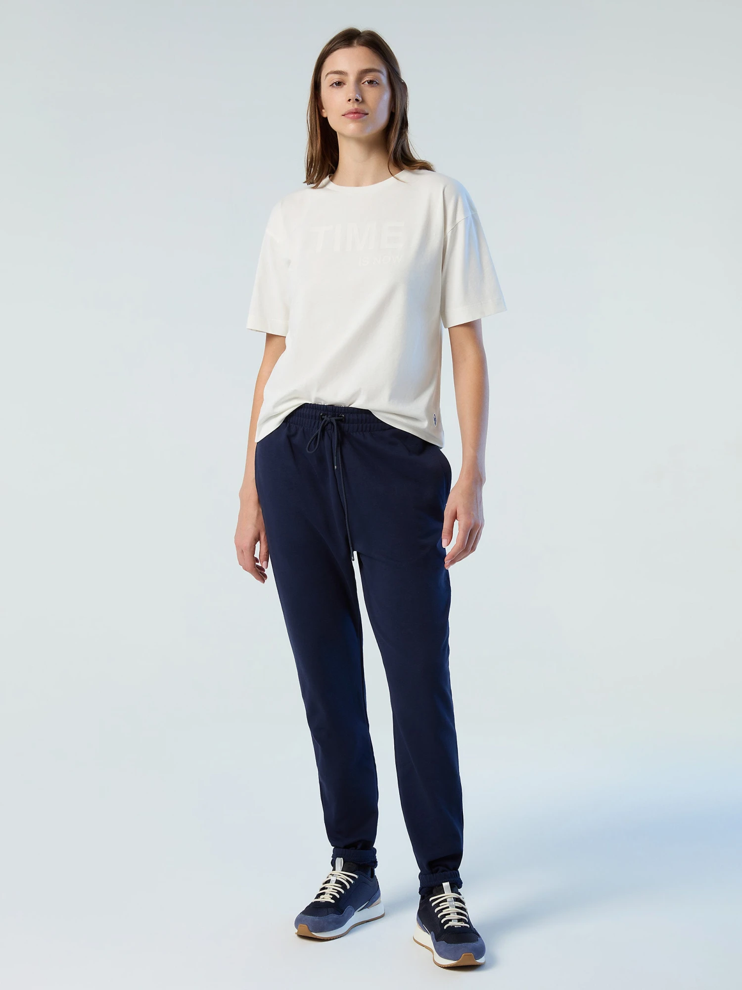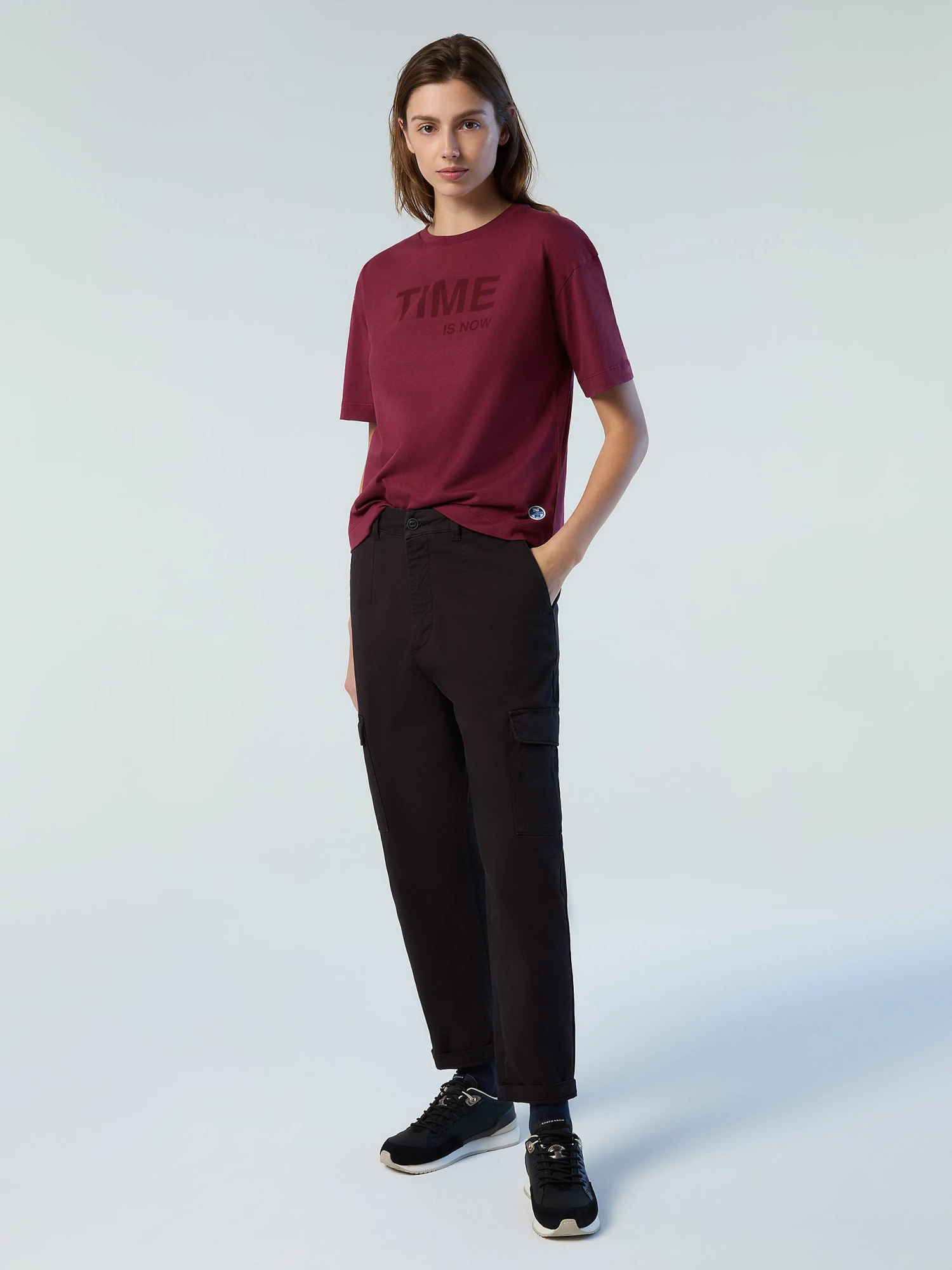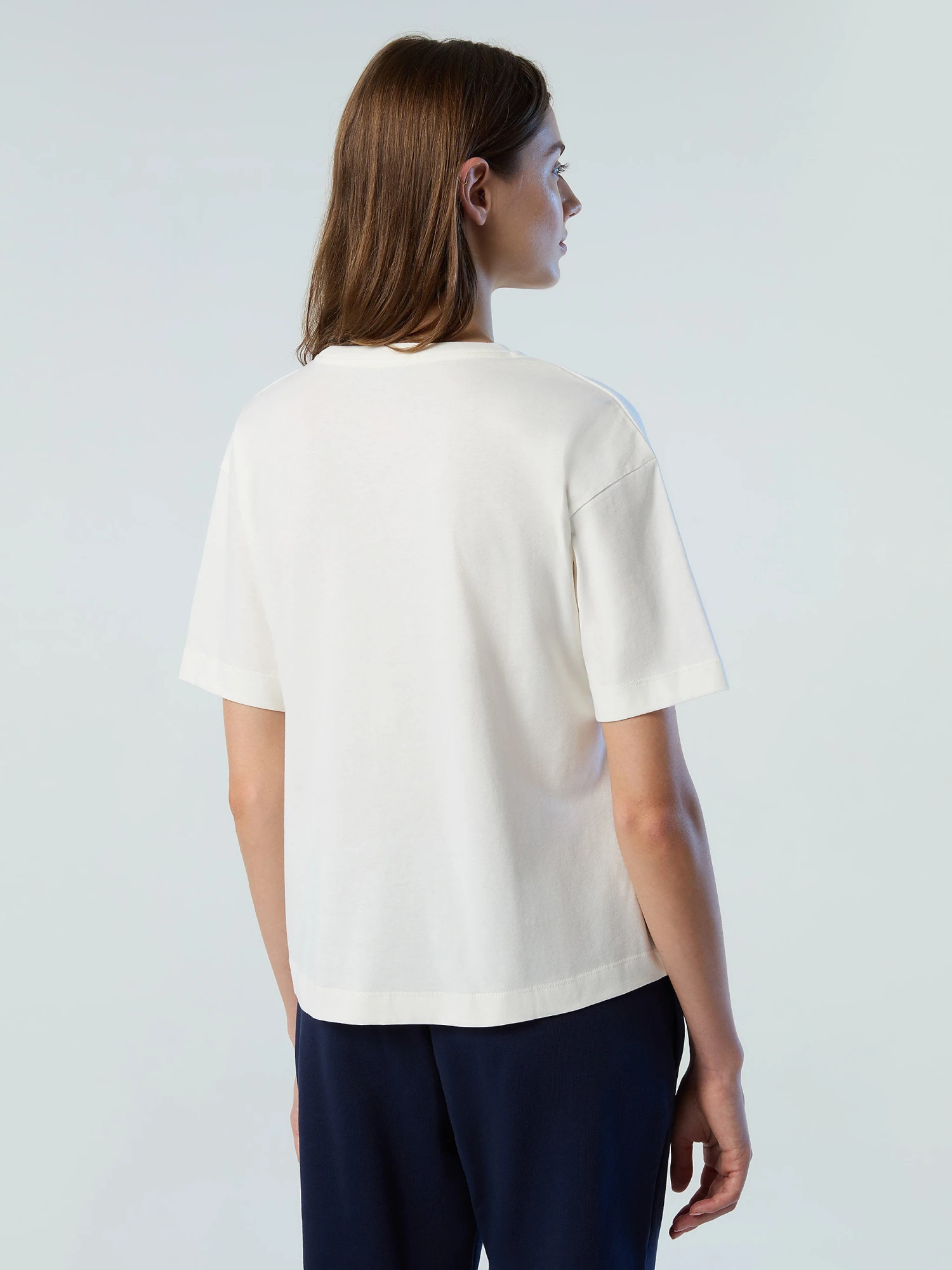 Women’s T-shirt made from organic cotton jersey. Styled with a boxy fit and embellished with slogan prints on the chest and sleeve.
