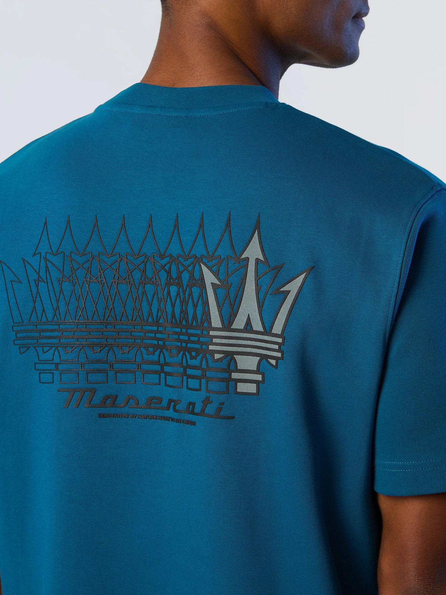 Men’s crew-neck T-shirt from the Maserati x North Sails collection, crafted from organic cotton jersey. Embellished with a speeding trident graphic on the back.