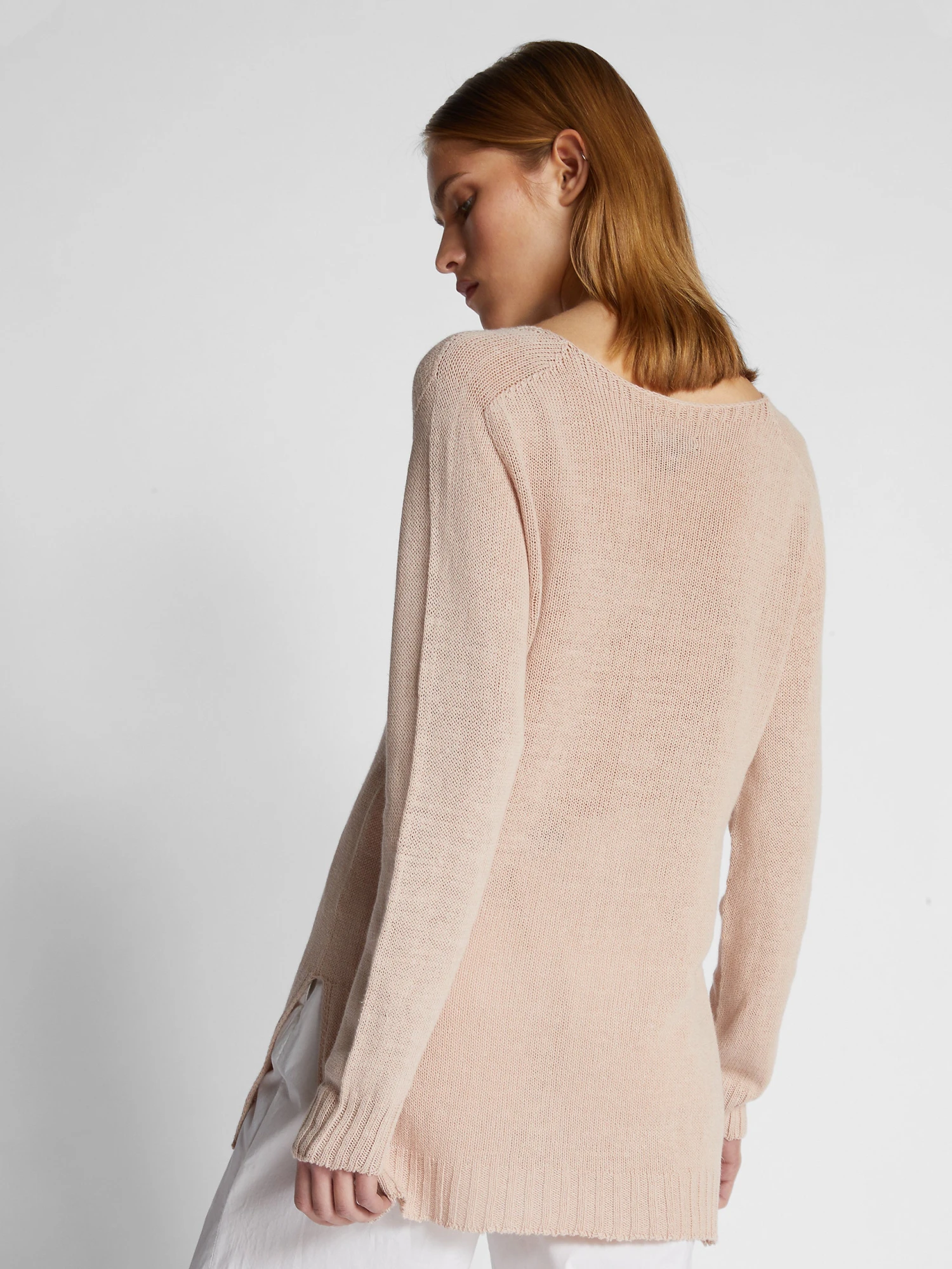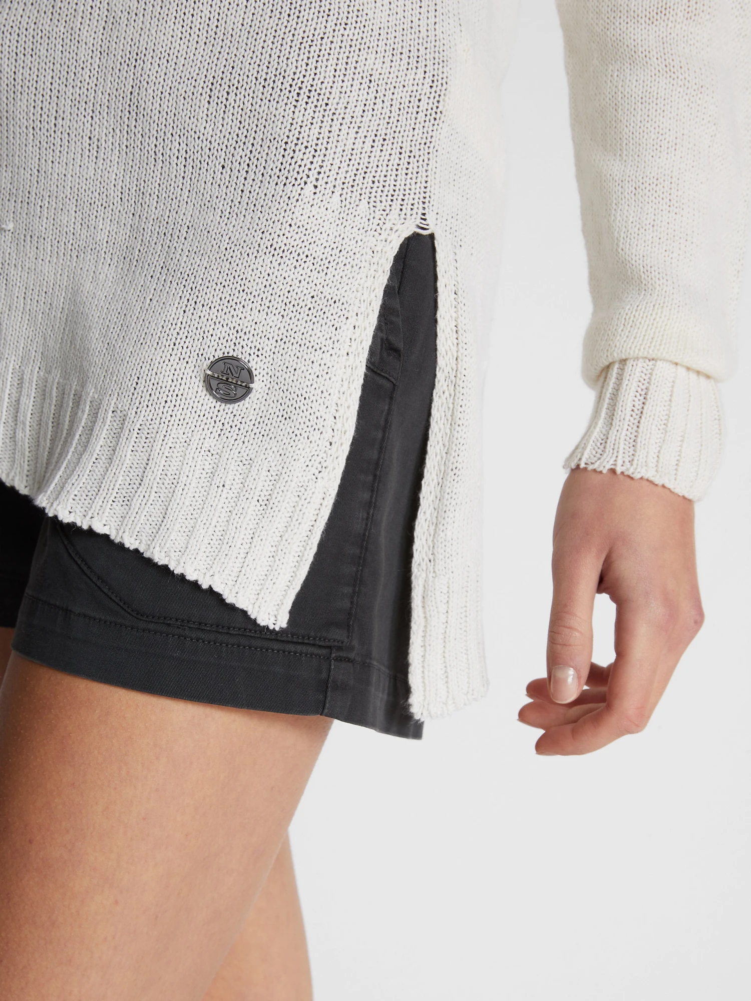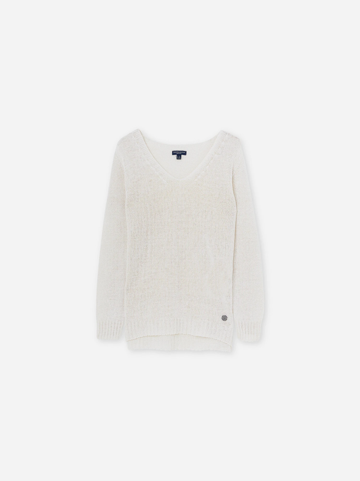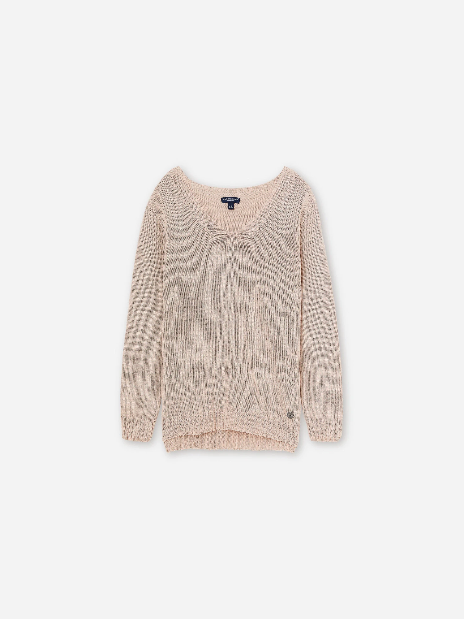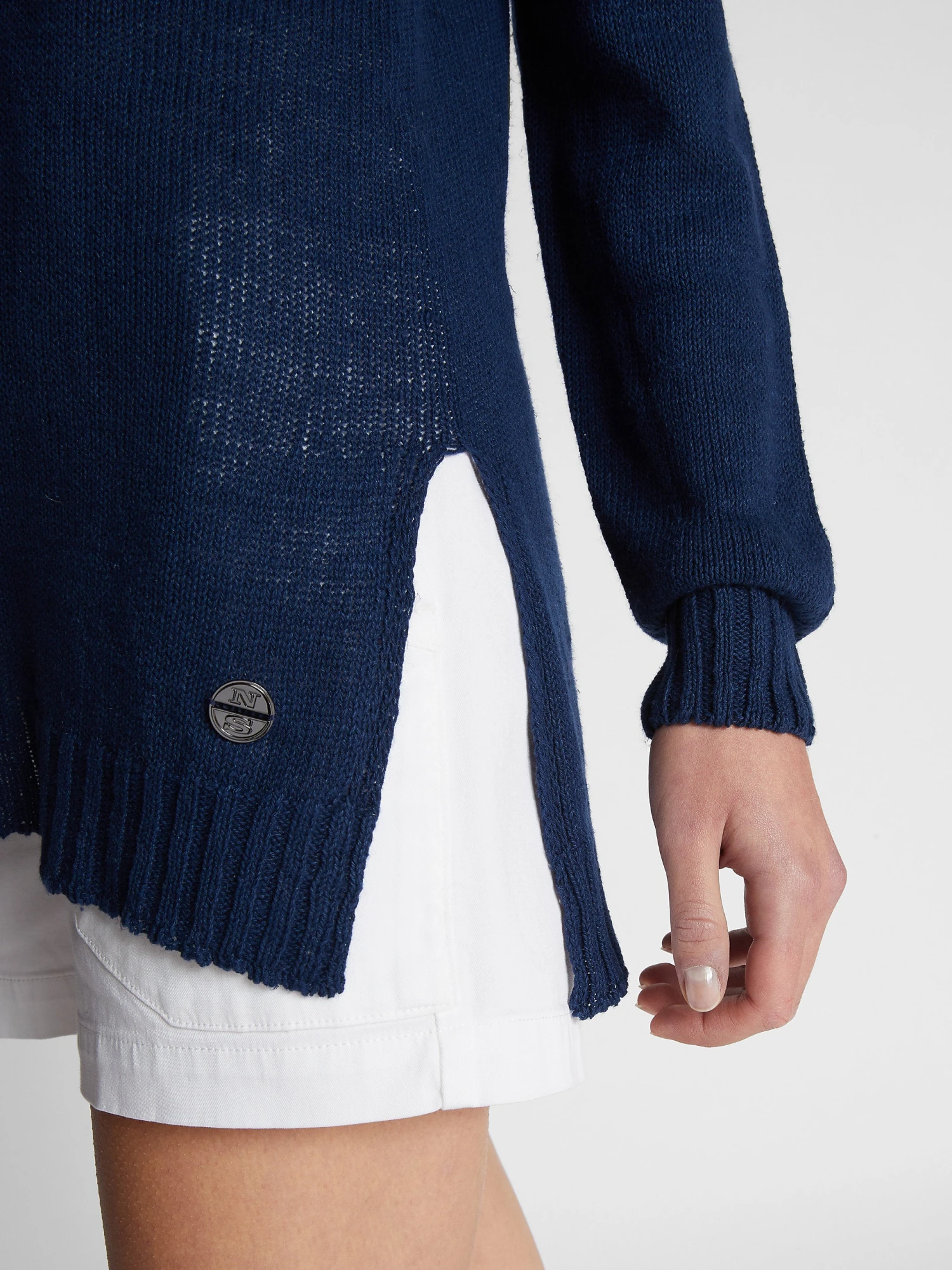 Recycled linen jumper with V-neck, long sleeves, ribbed trims and a North Sails logo on the hem.