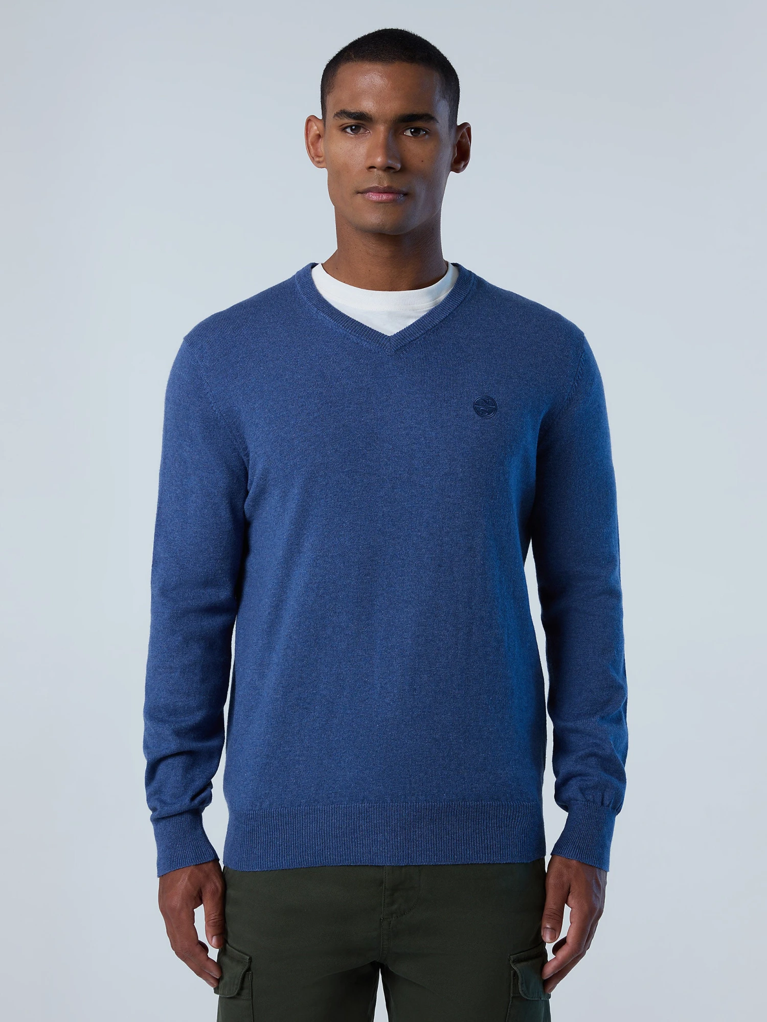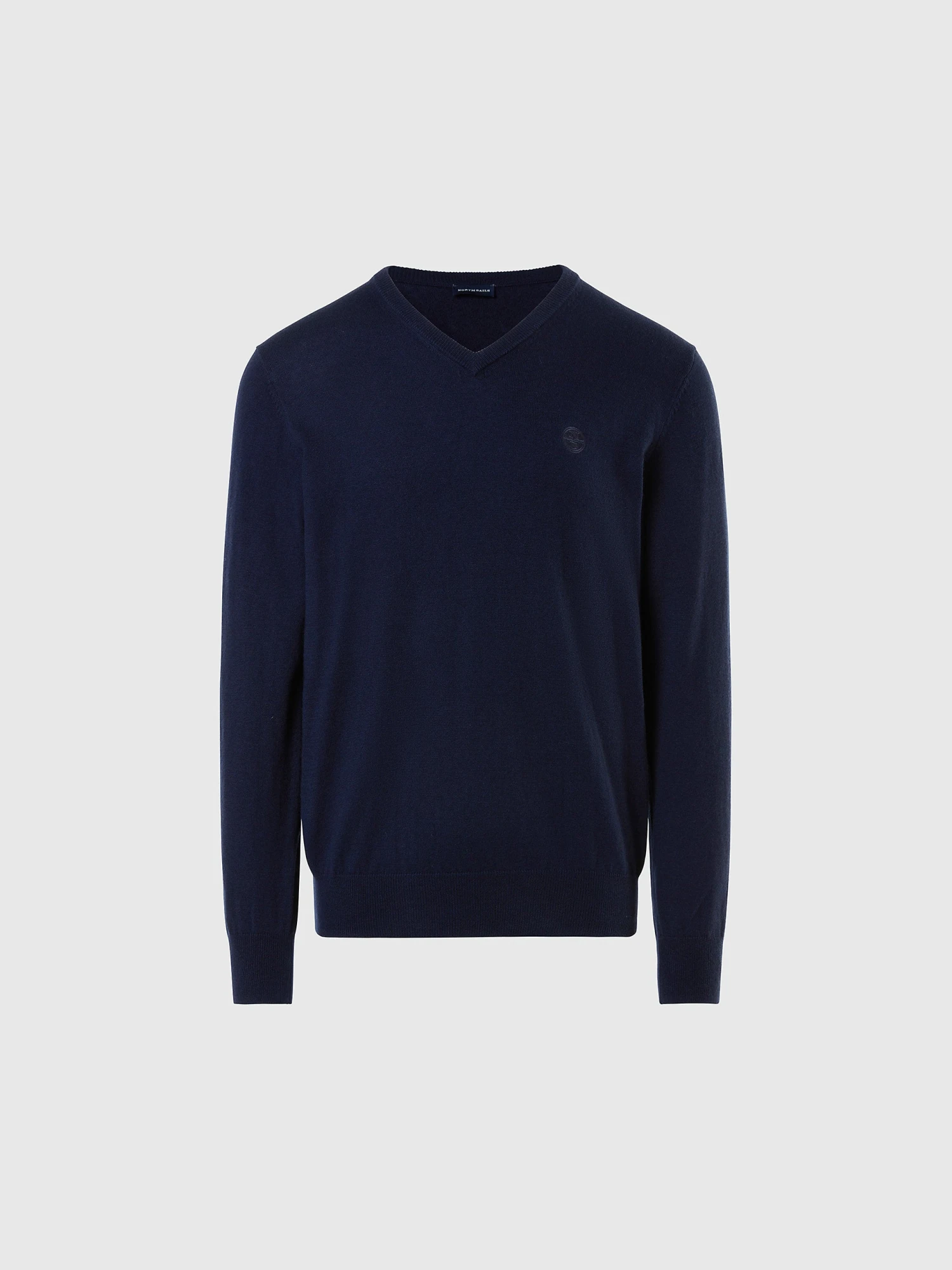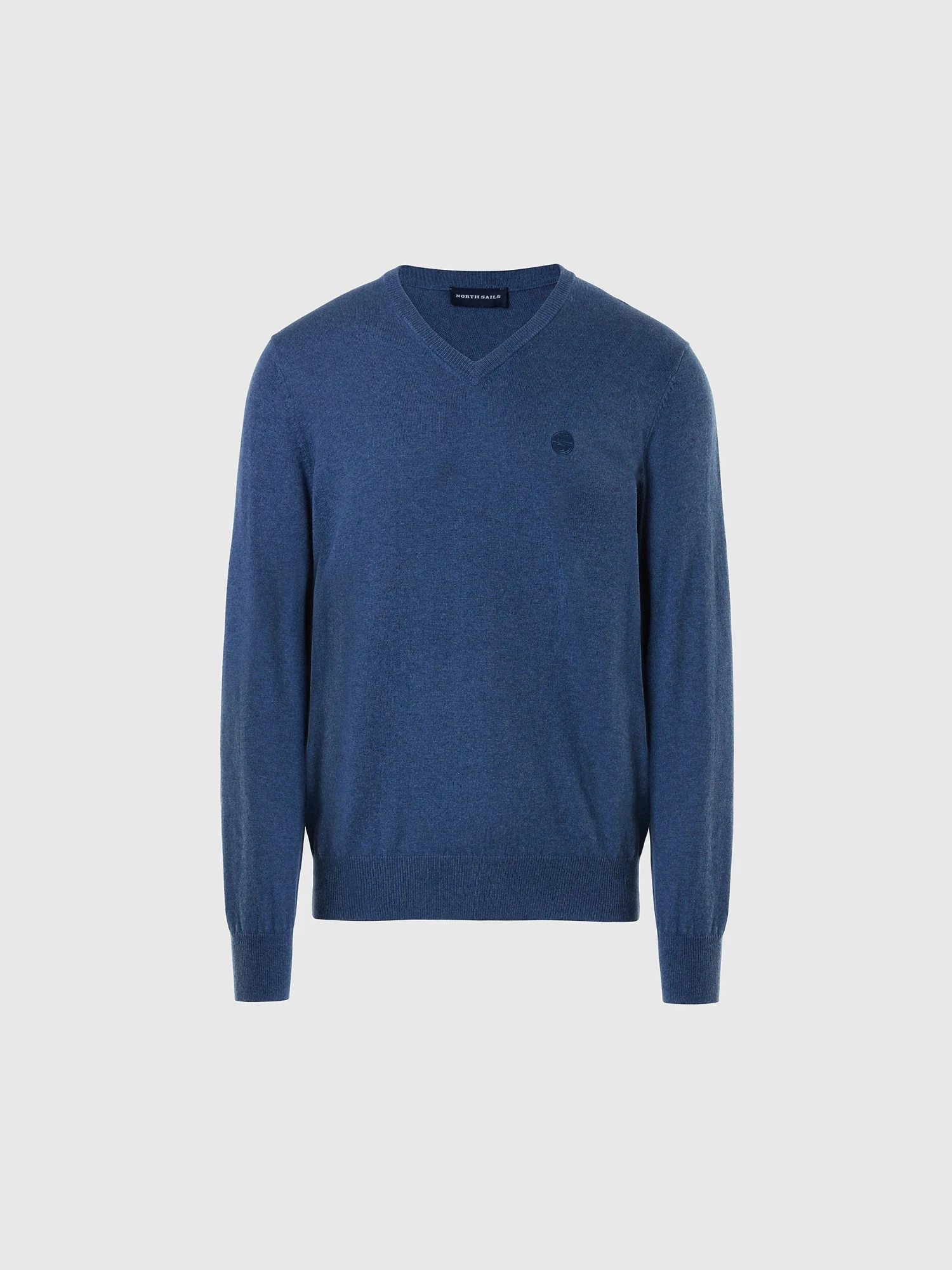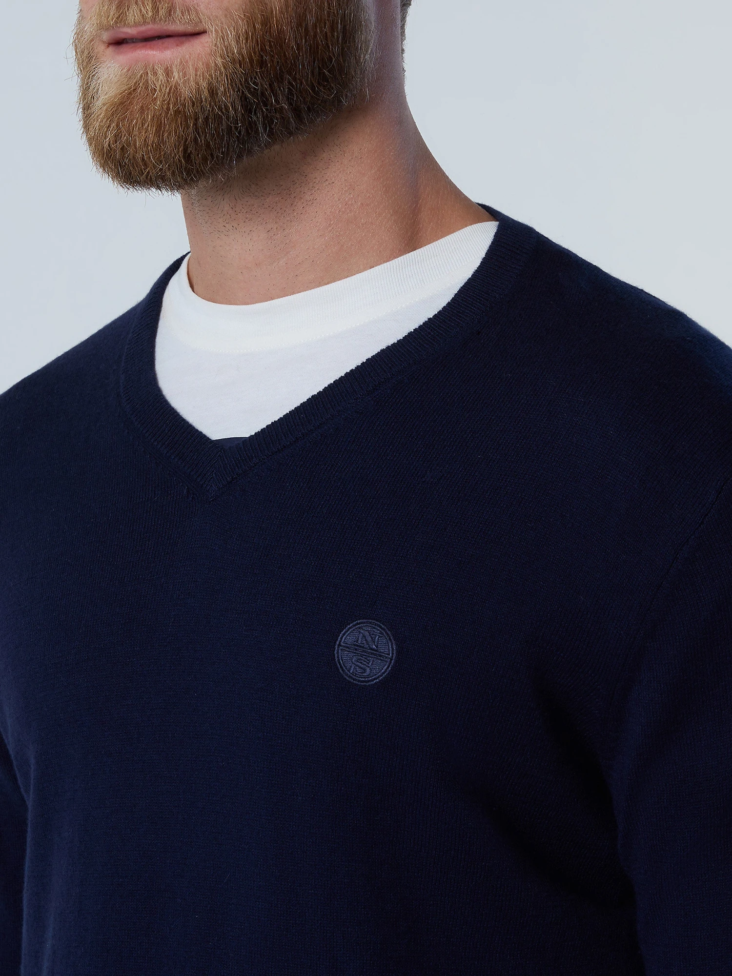 Men’s V-neck sweater made from a wool and organic cotton blend. Embellished with an embroidered North Sails logo on the chest.