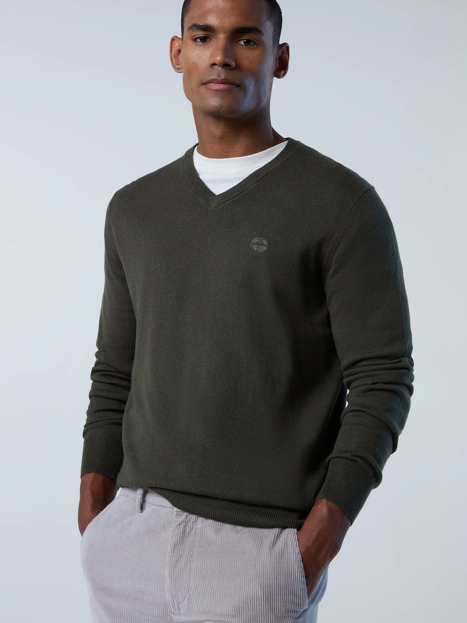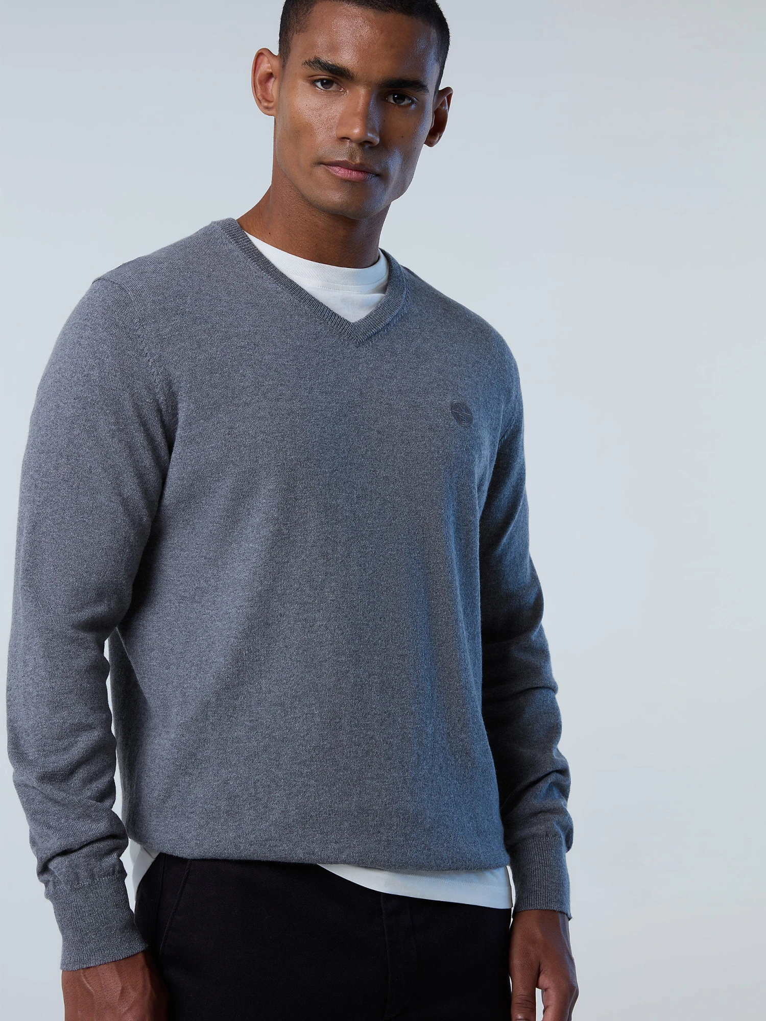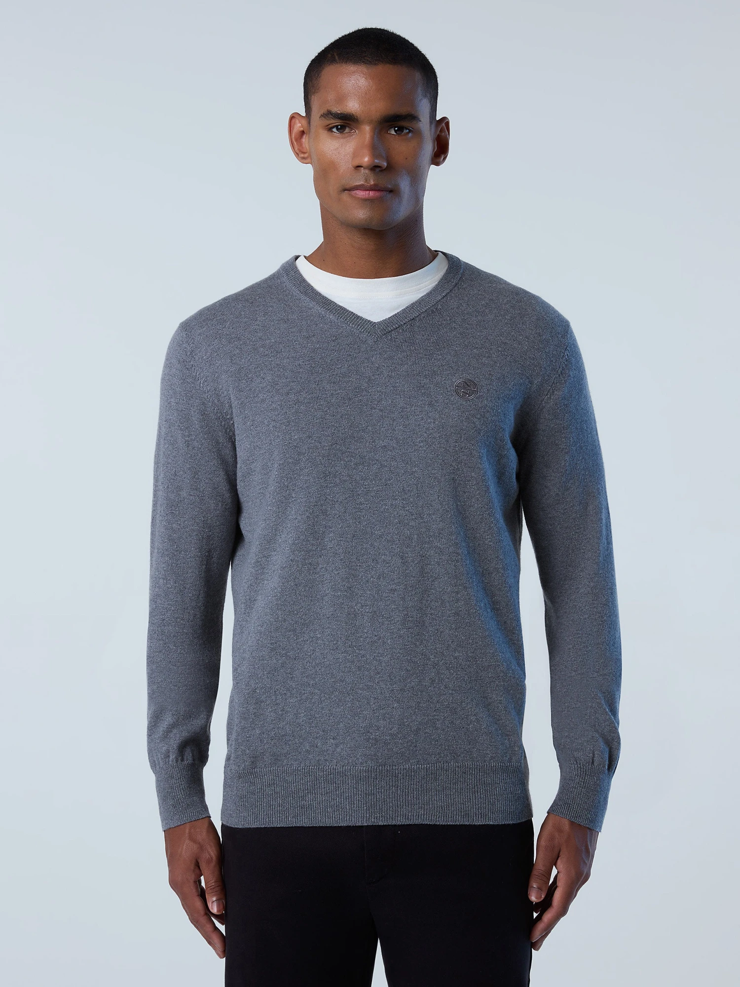 Men’s V-neck sweater made from a wool and organic cotton blend. Embellished with an embroidered North Sails logo on the chest.