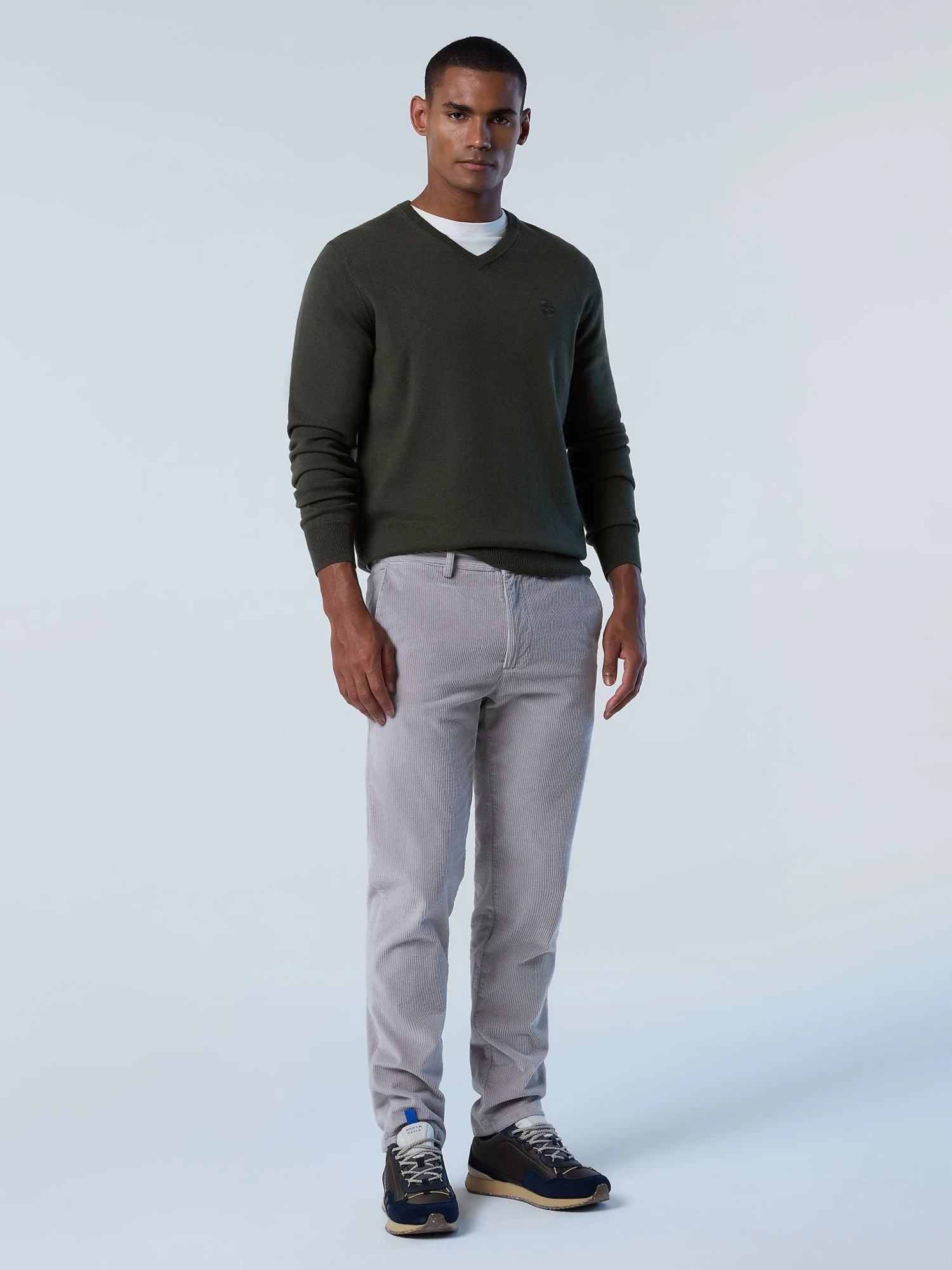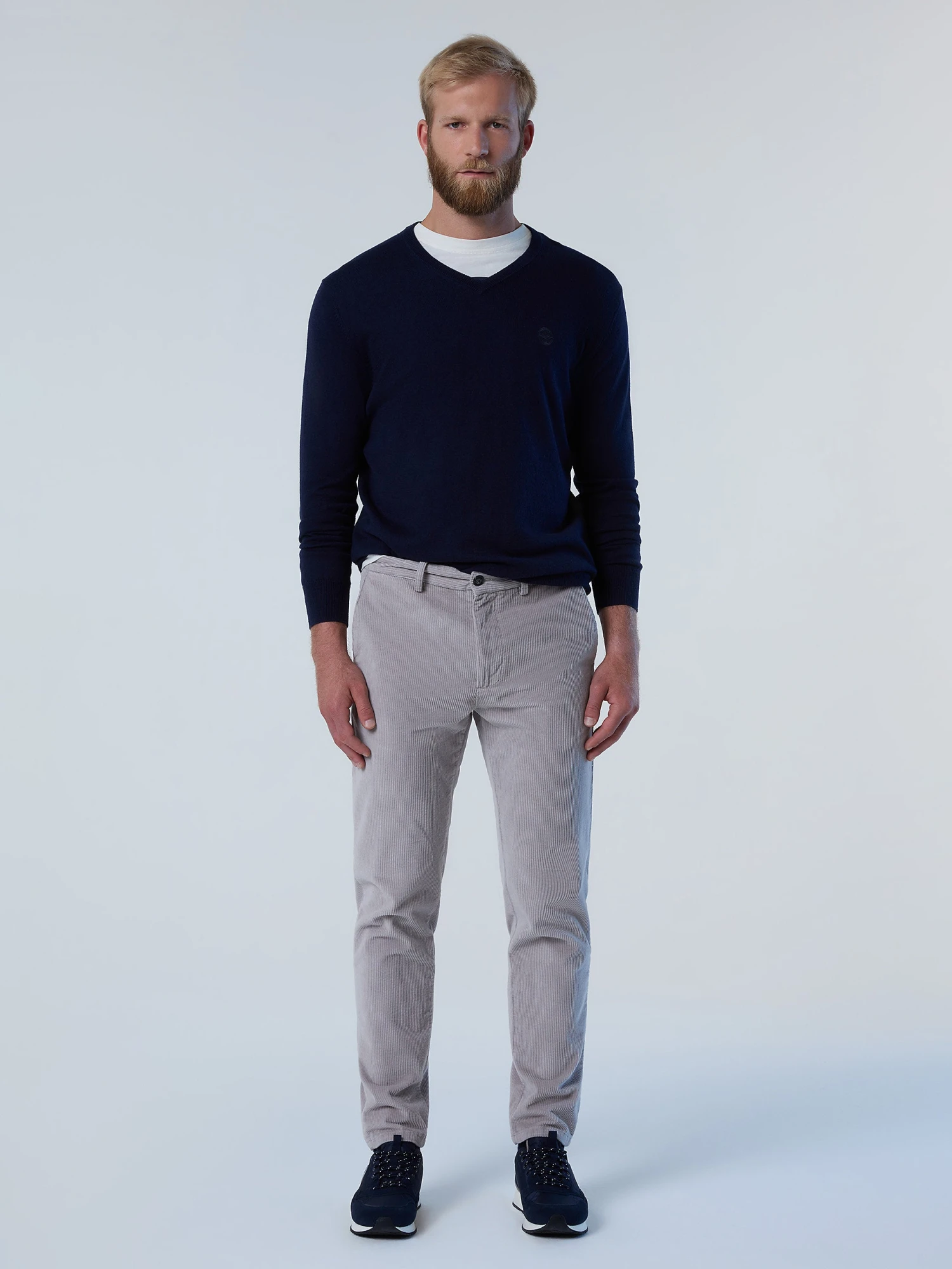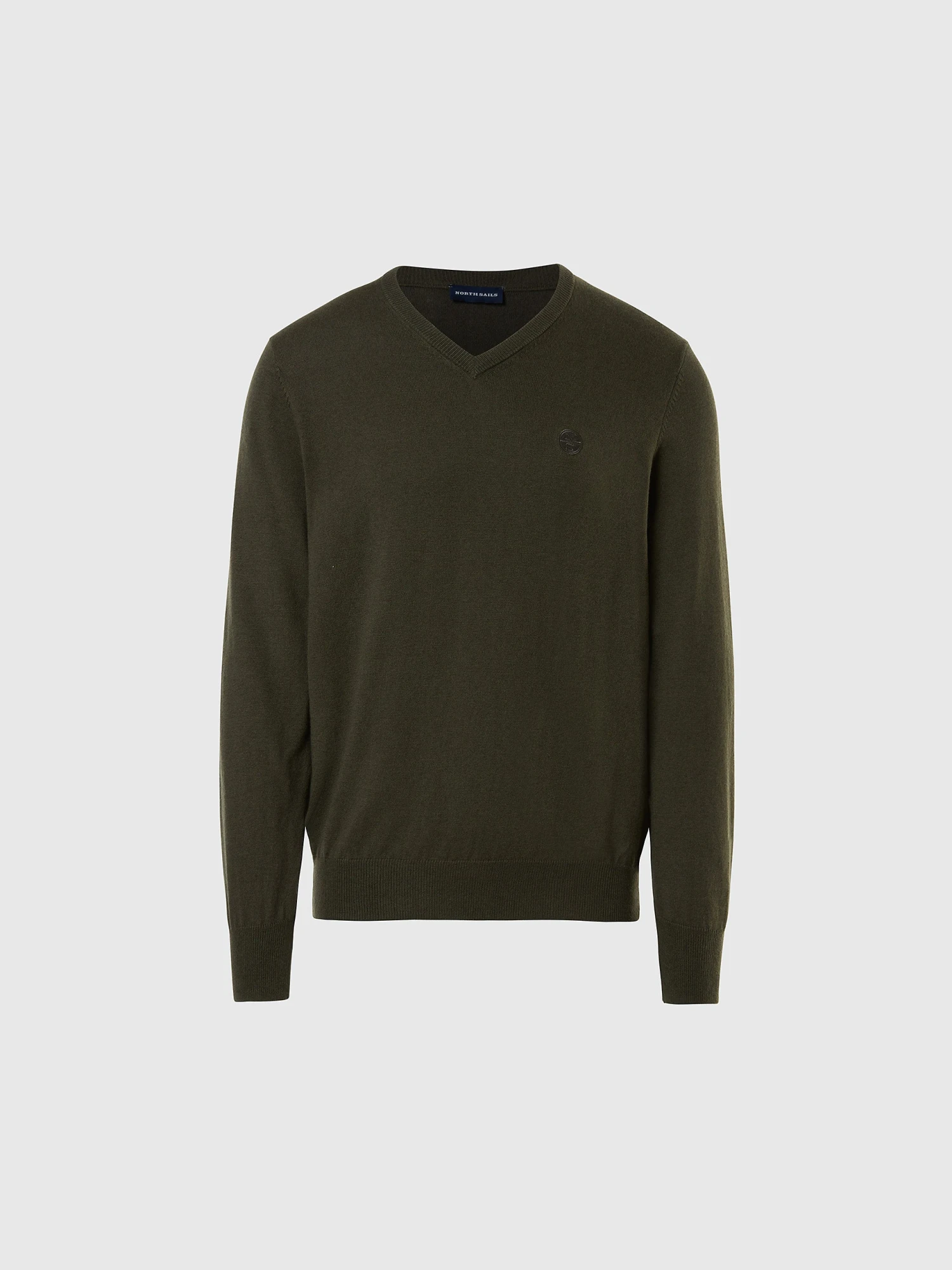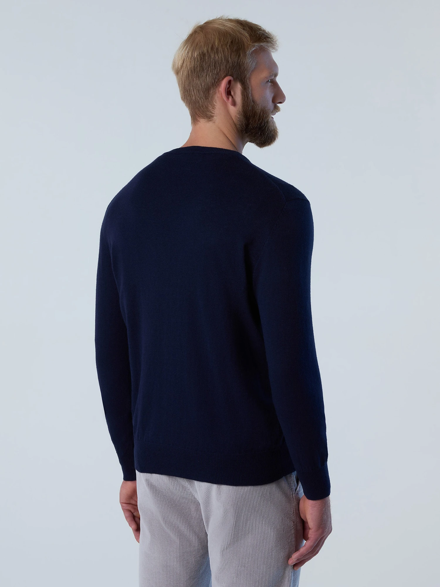 Men’s V-neck sweater made from a wool and organic cotton blend. Embellished with an embroidered North Sails logo on the chest.