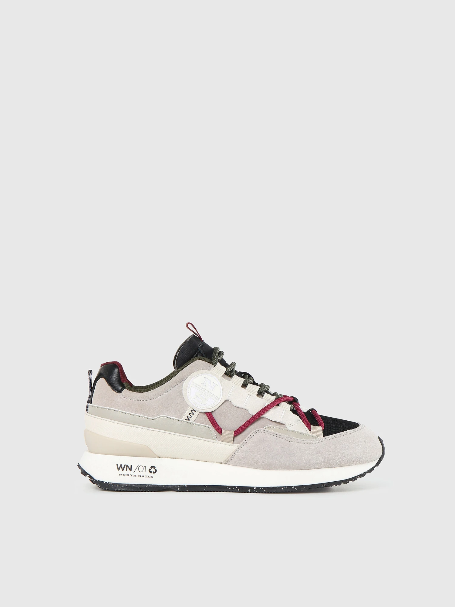 Women’s sneakers made from recycled nylon with suede details in a sophisticated combination of contrasting tones.